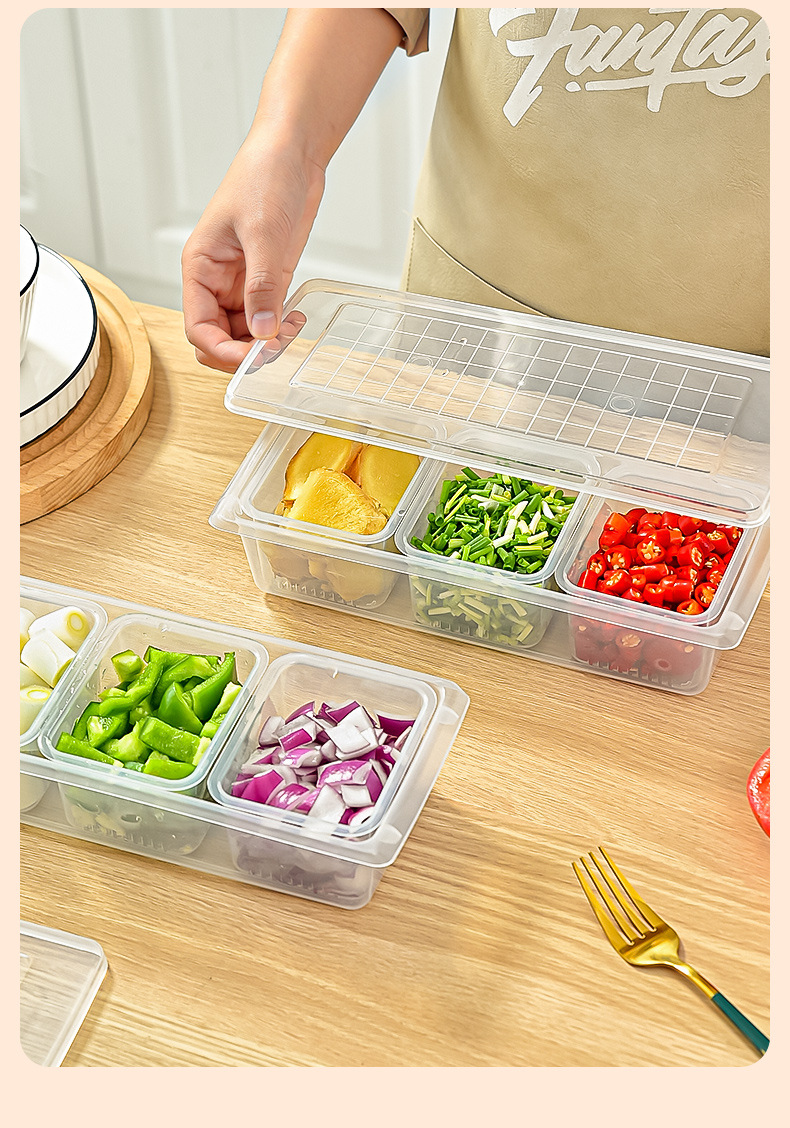 厨房三格葱姜蒜收纳盒冰箱葱花保鲜盒沥水备菜盒食物水果食品专用
