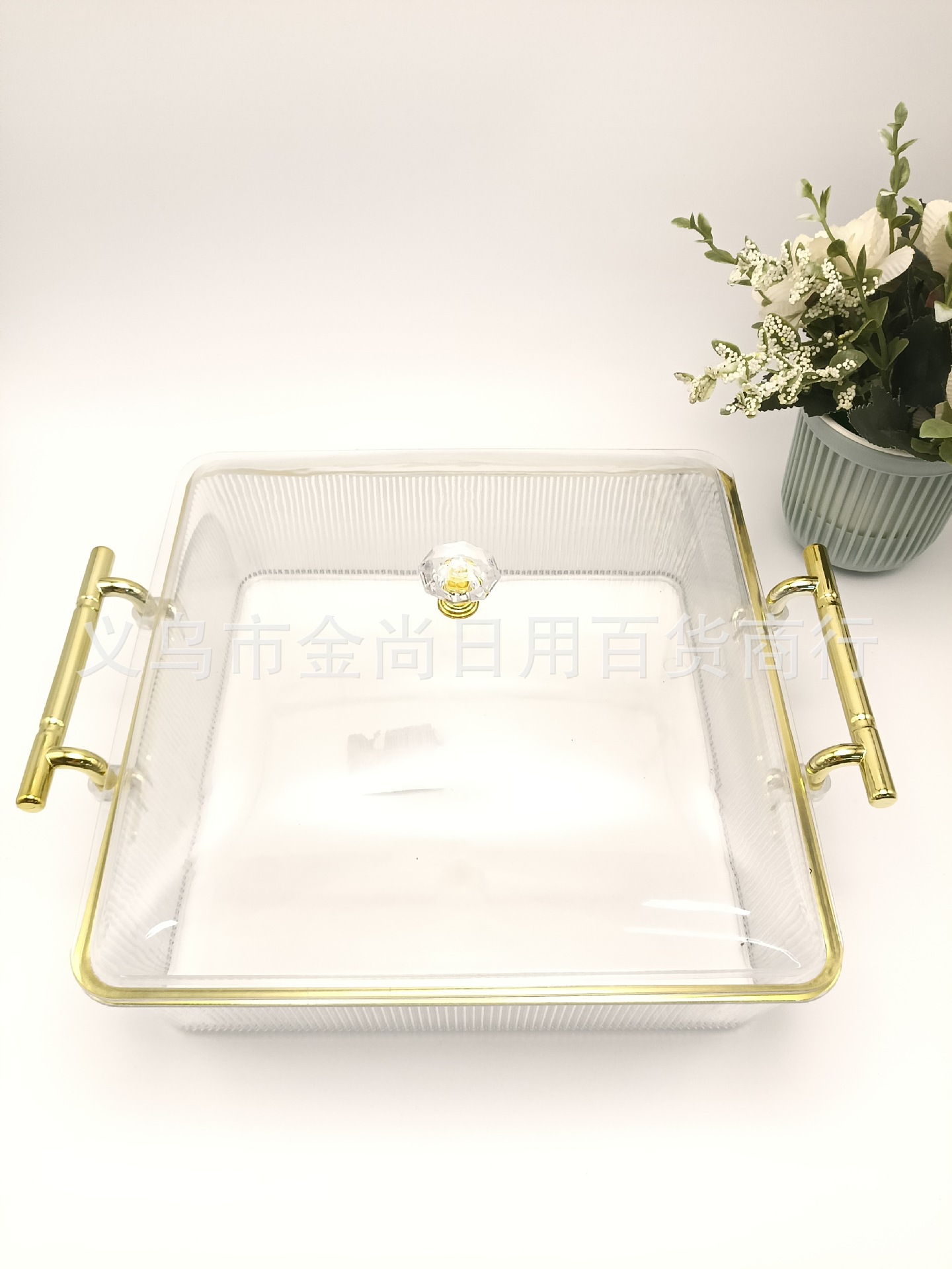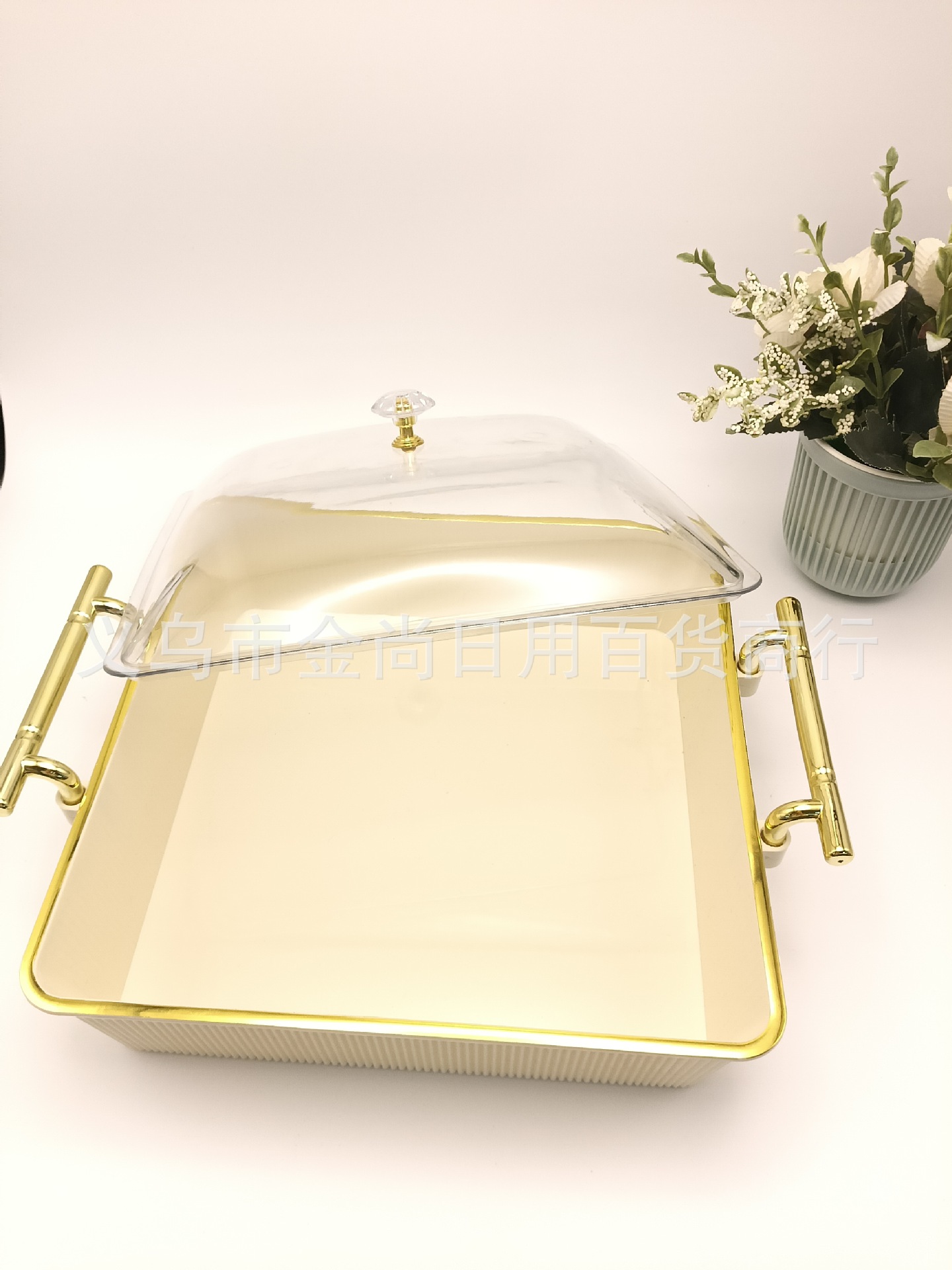 简约大方正方形金色欧式水果托盘甜品酒店托盘咖啡厅西餐厅水果糕