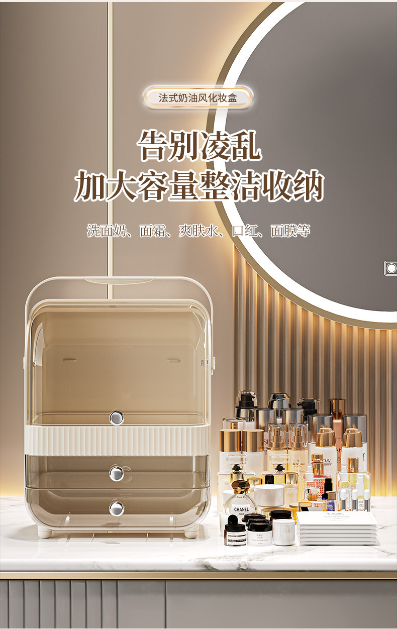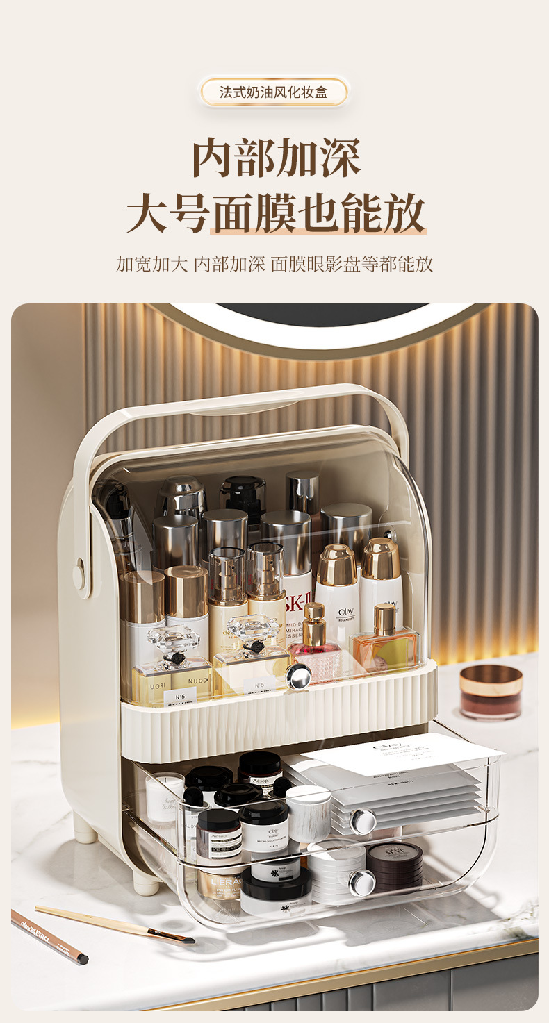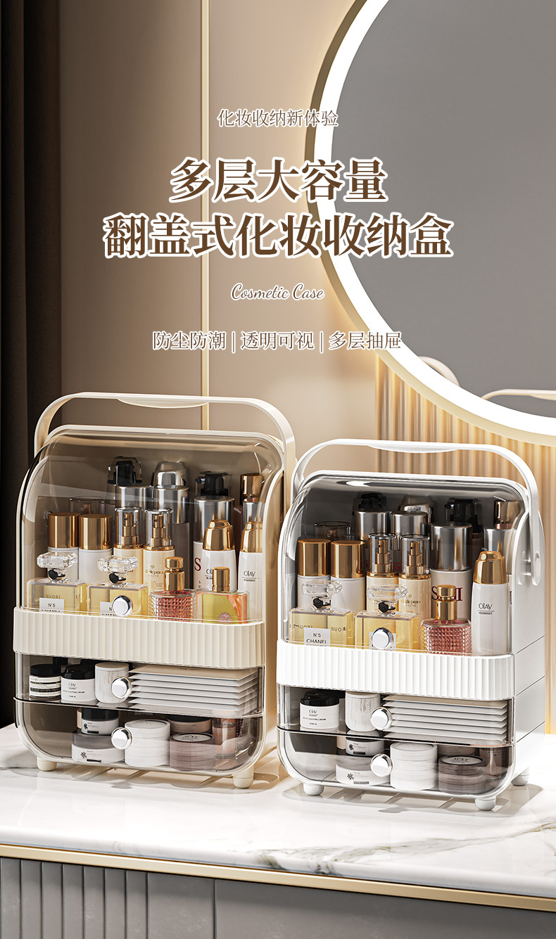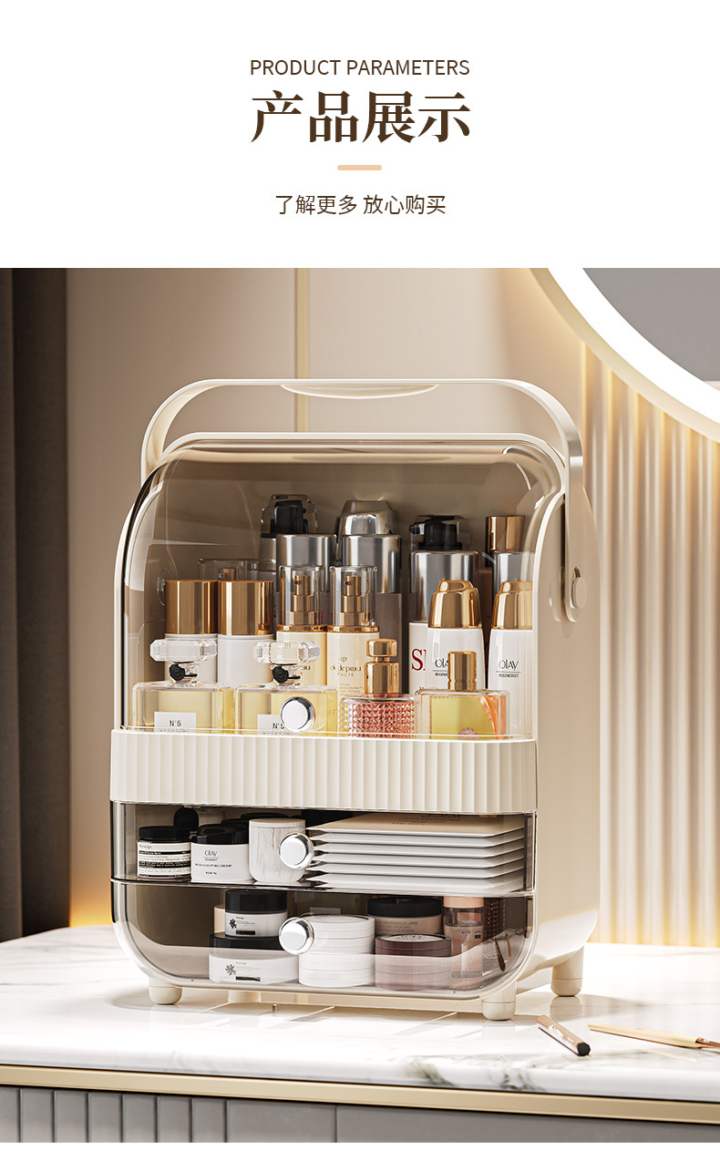 化妆品化妆收纳盒防尘口红梳妆台桌面大容量旋转护肤品收纳置物架