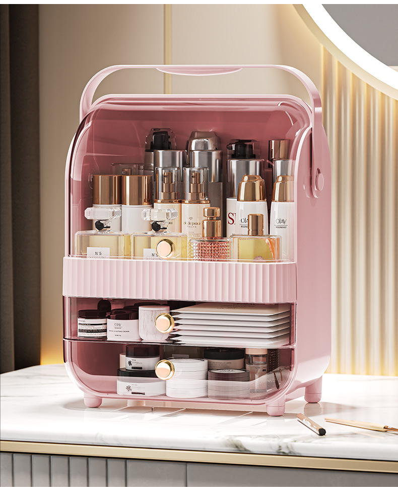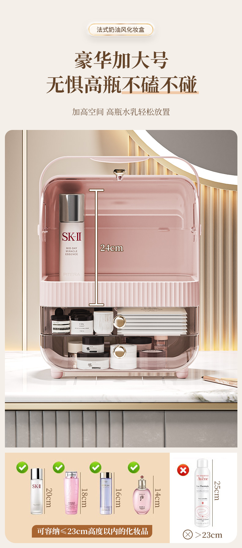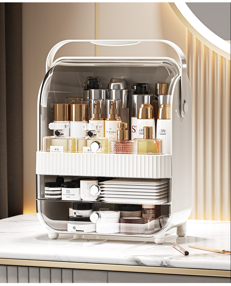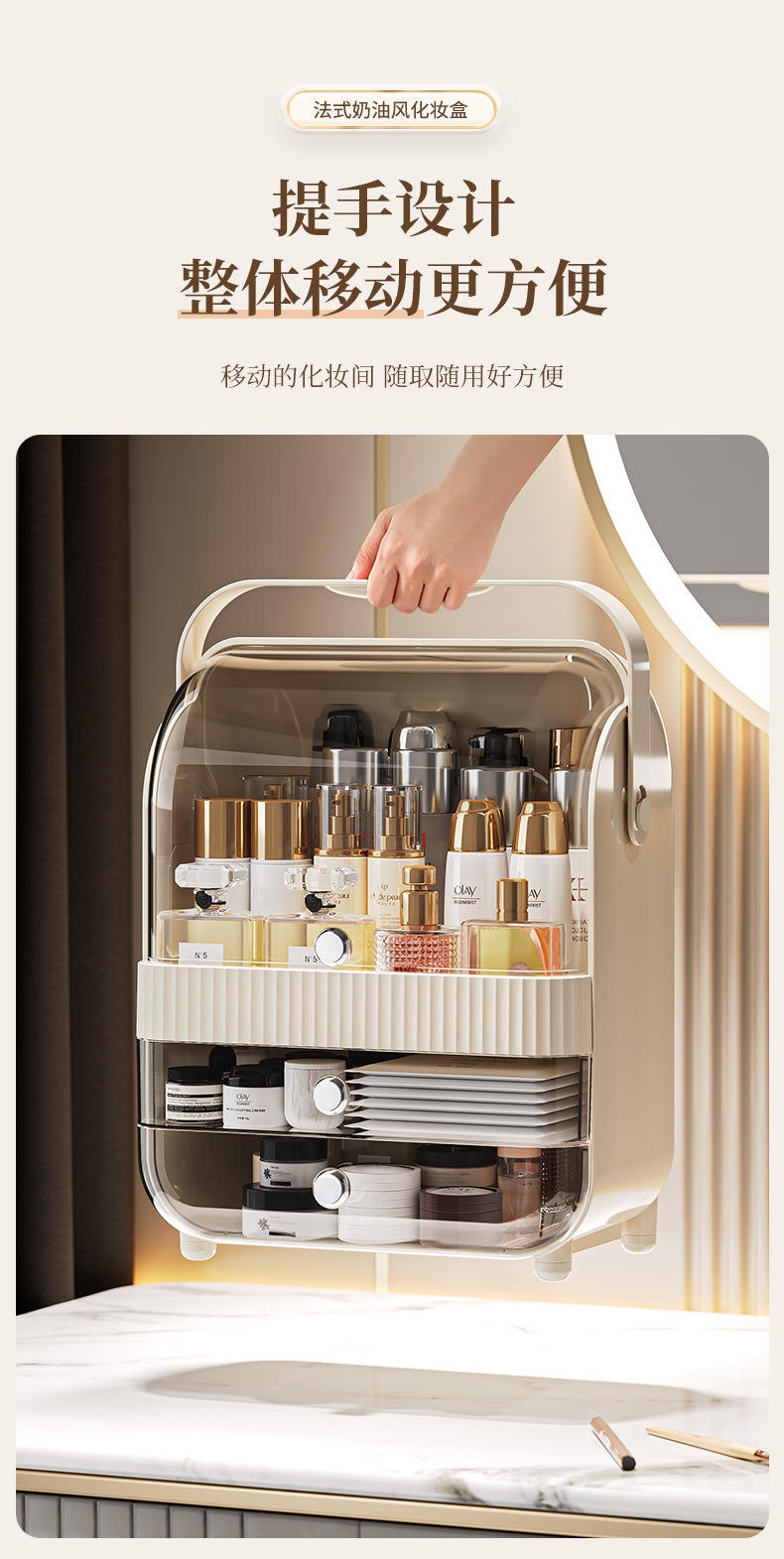 化妆品化妆收纳盒防尘口红梳妆台桌面大容量旋转护肤品收纳置物架