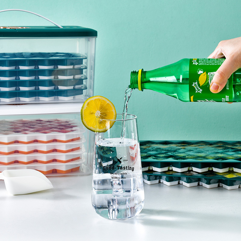 冻冰块模具家用食品级硅胶冰格多层制冰神器冰箱带盖大容量储冰盒