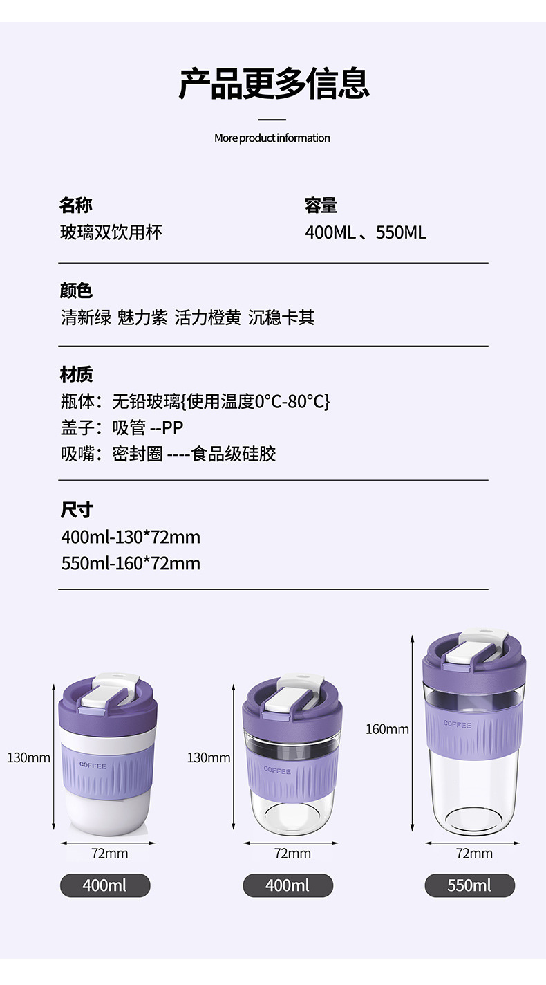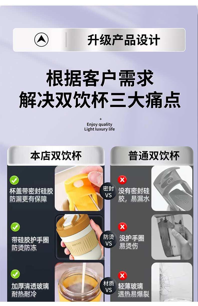 厂发双饮玻璃杯女学生防烫吸管咖啡高颜值ins大容量办公室水杯子