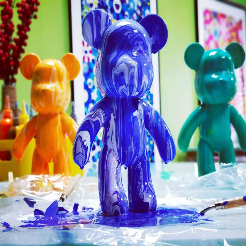 贴钻暴力熊耐摔石膏搪胶娃娃流体熊 涂鸦白胚熊涂鸦 彩绘手工制