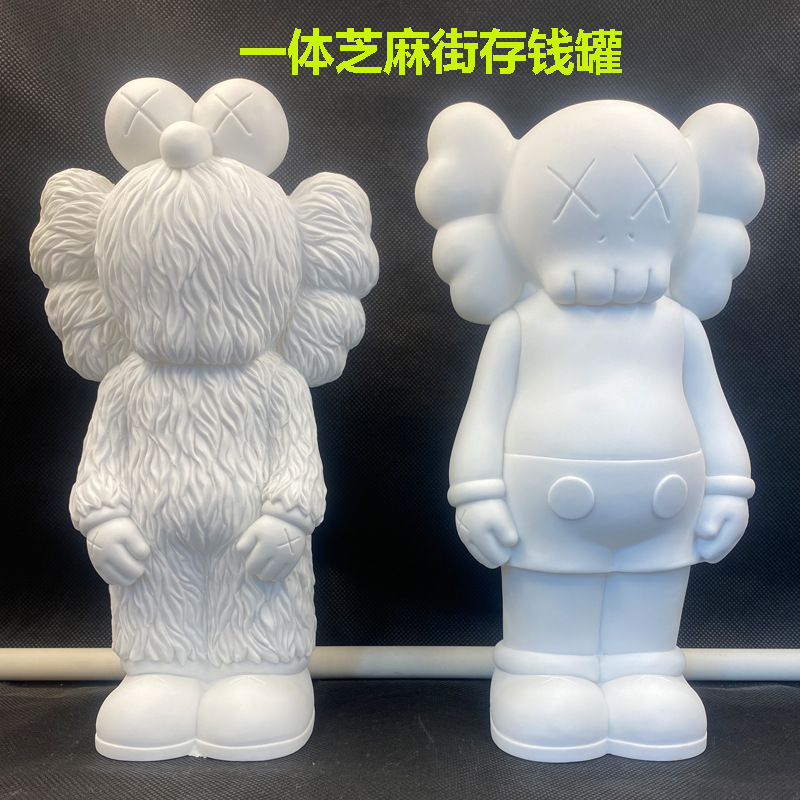 爆款芝麻街KAWS搪胶娃娃白坯彩绘娃娃涂鸦DIY摆件流体手工 存钱罐