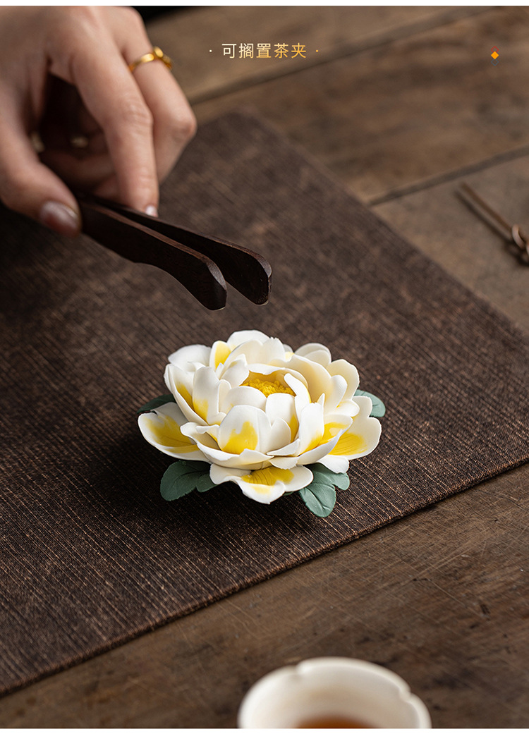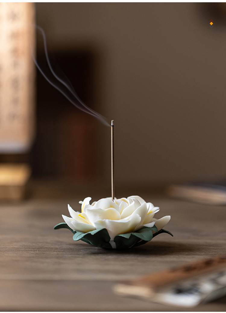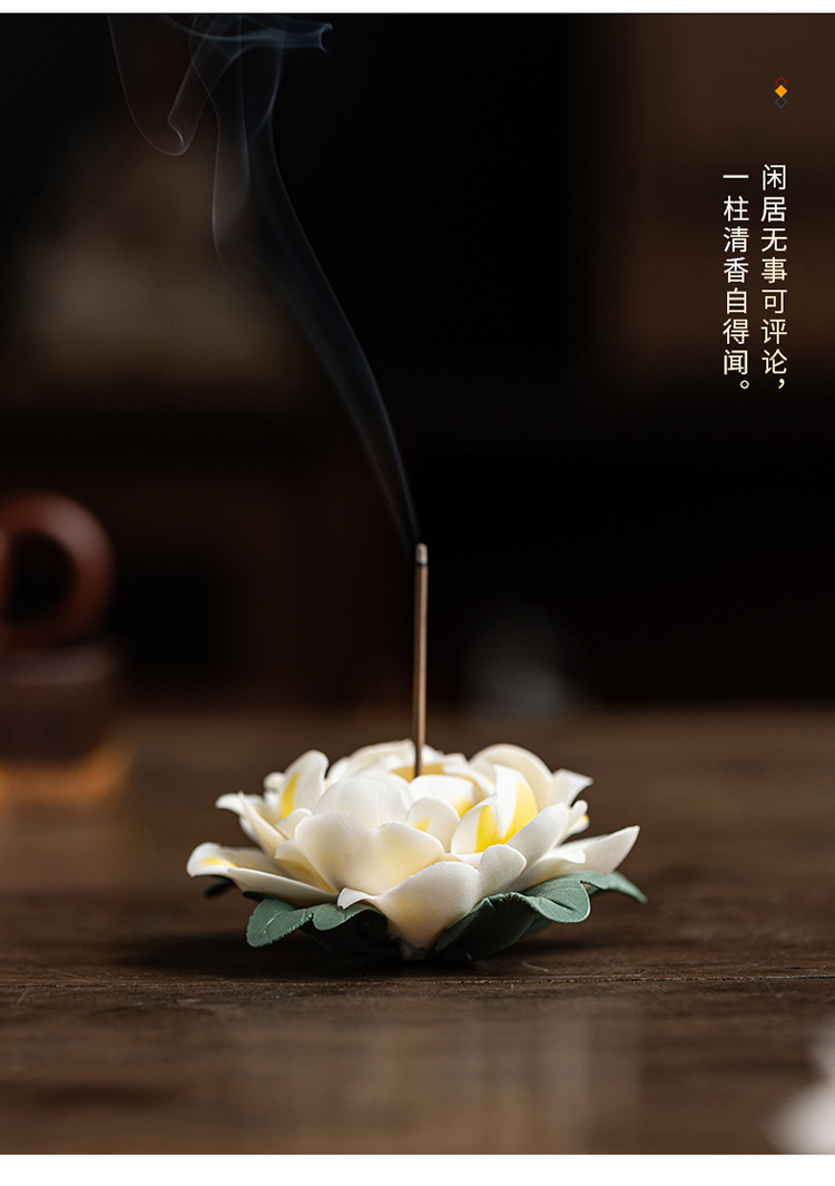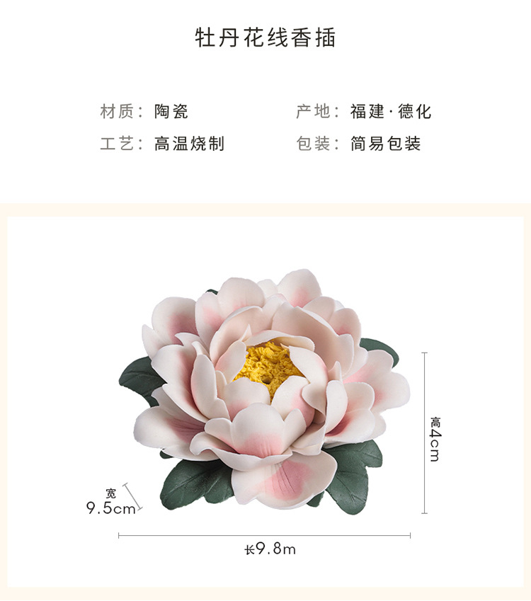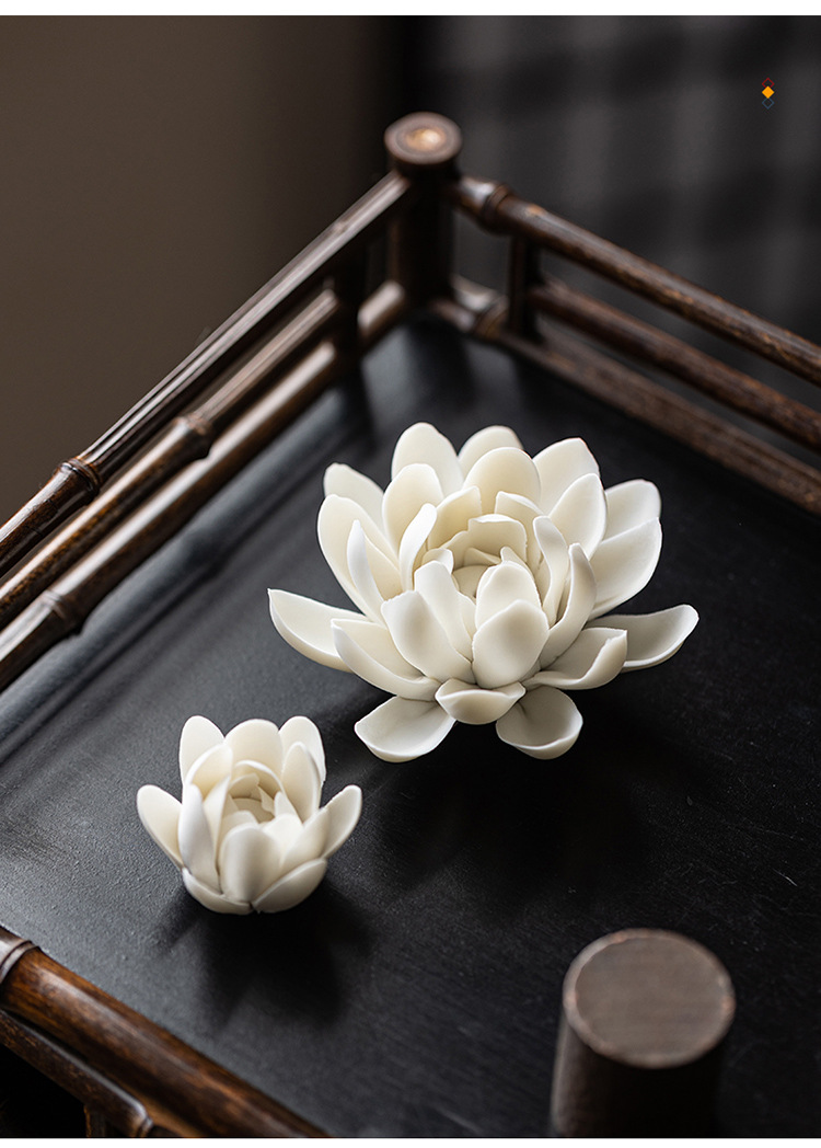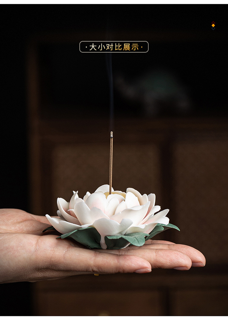 陶瓷莲花摆件禅意家居饰品纯手工莲花牡丹花线香炉客厅装饰工艺品