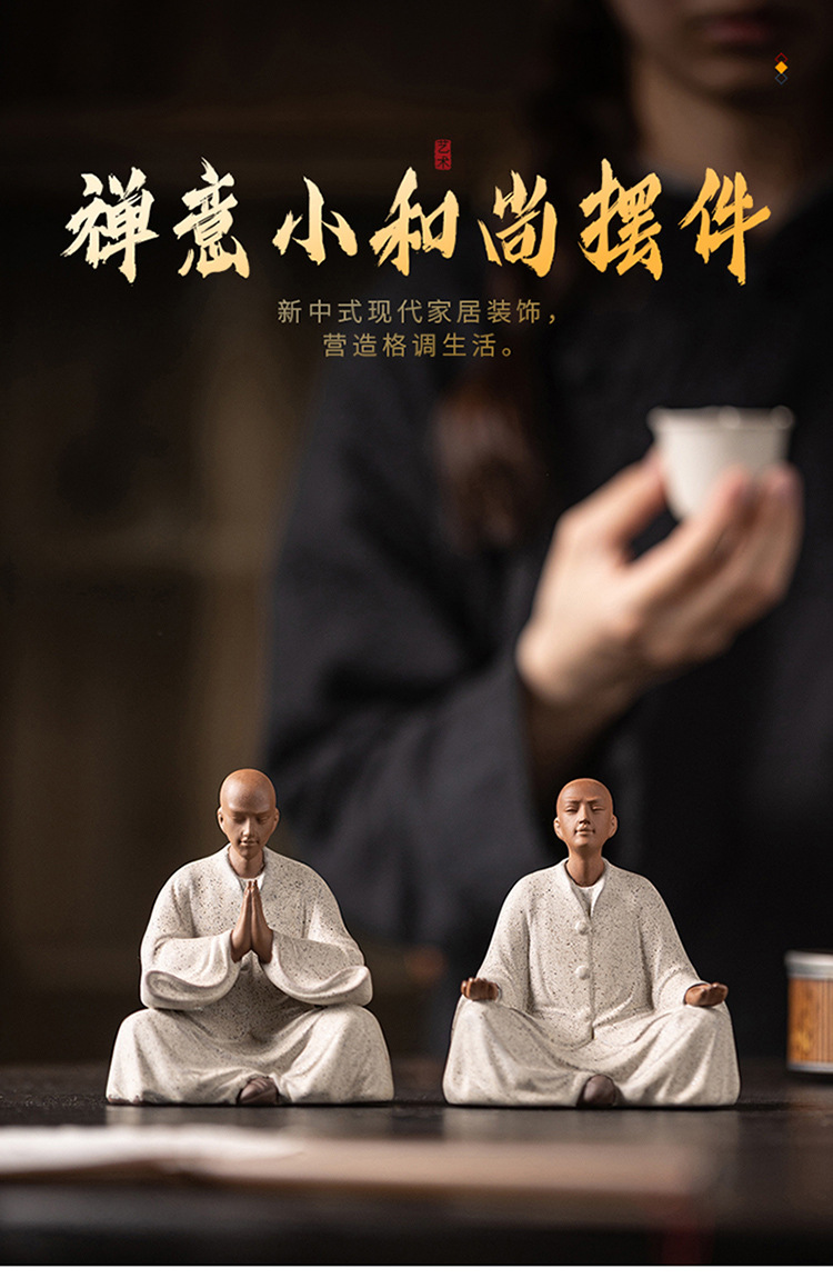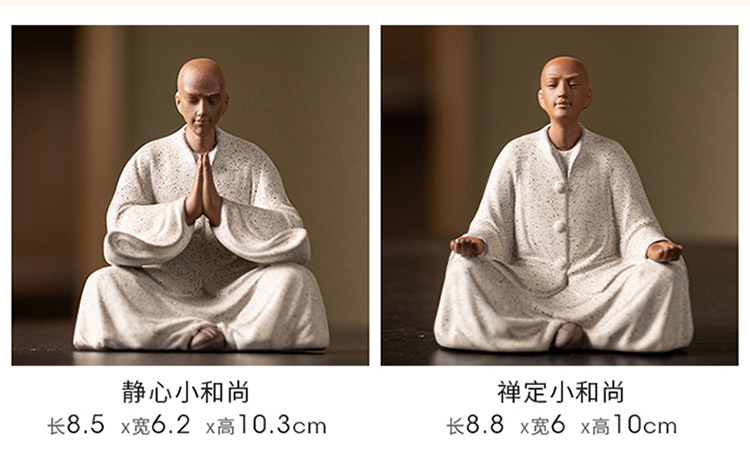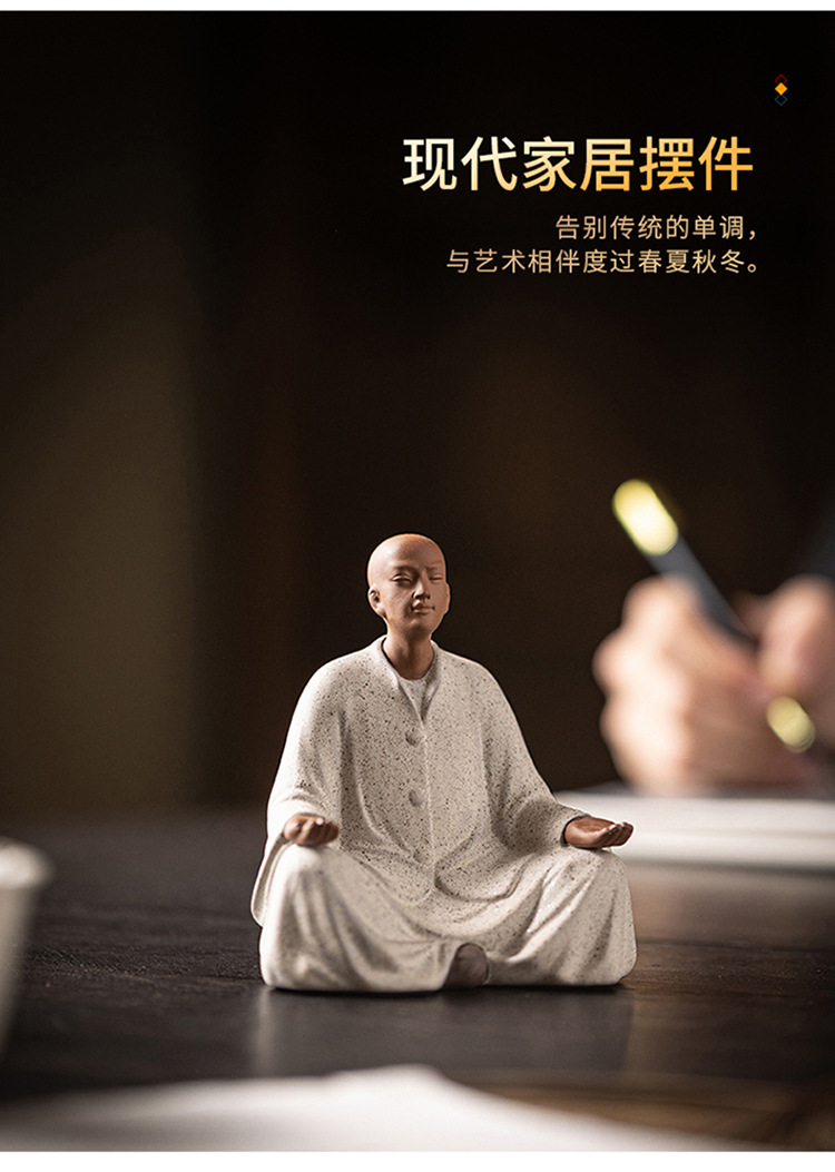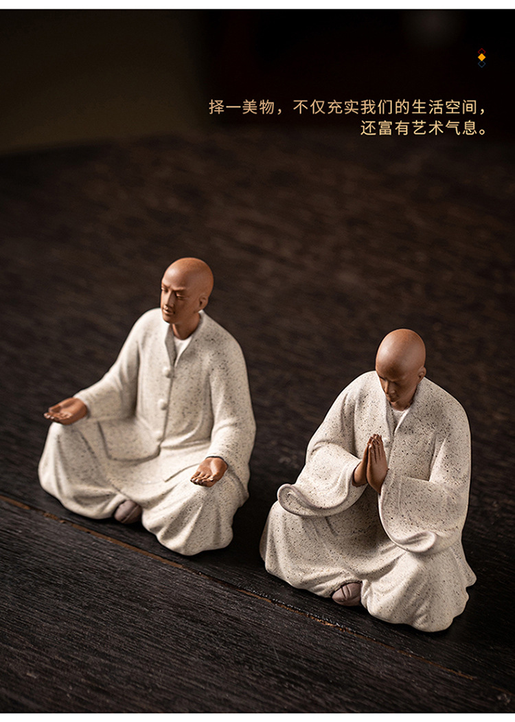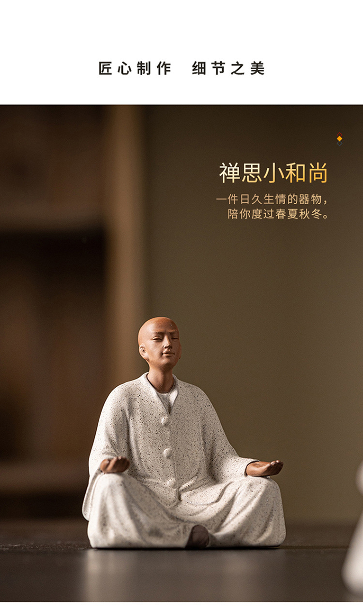 创意紫砂小和尚茶宠摆件人物禅意茶道茶室茶空间桌面茶台茶桌装饰