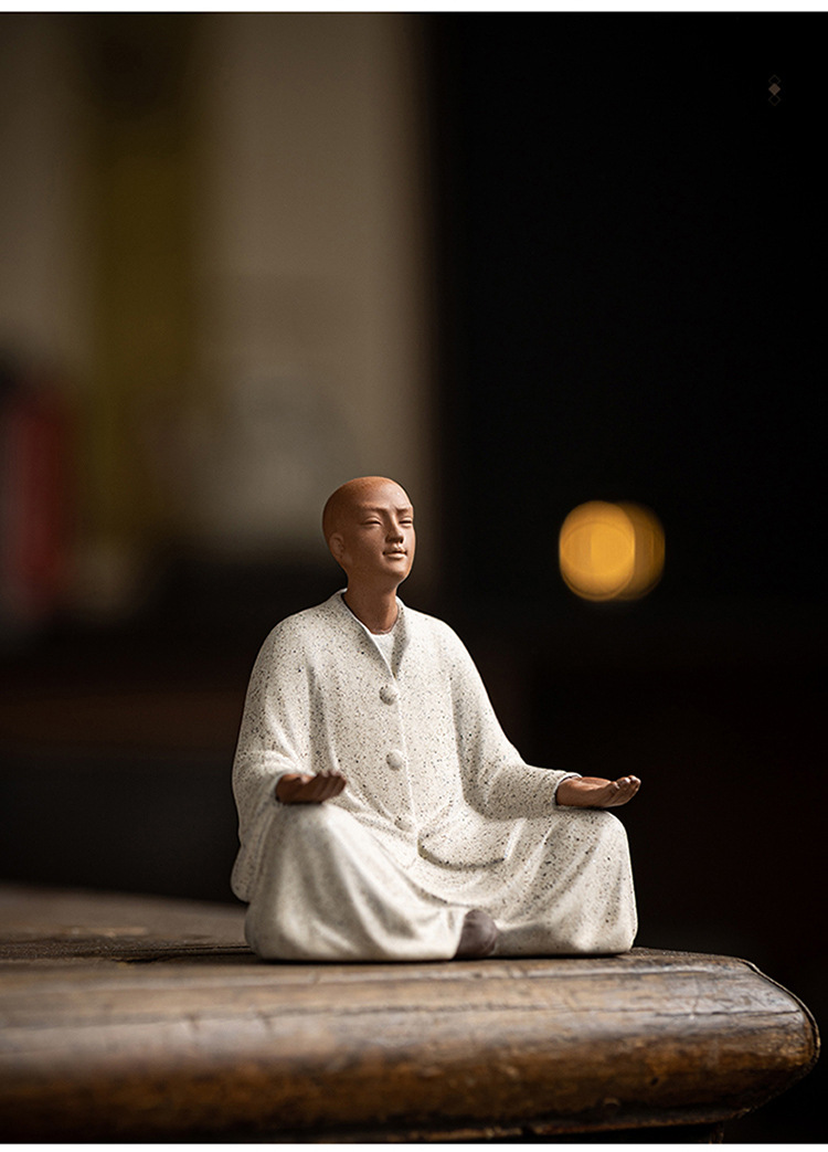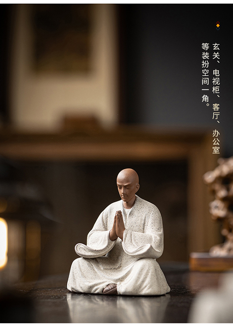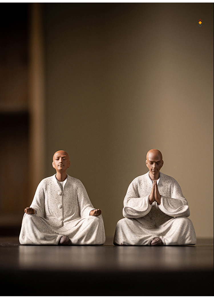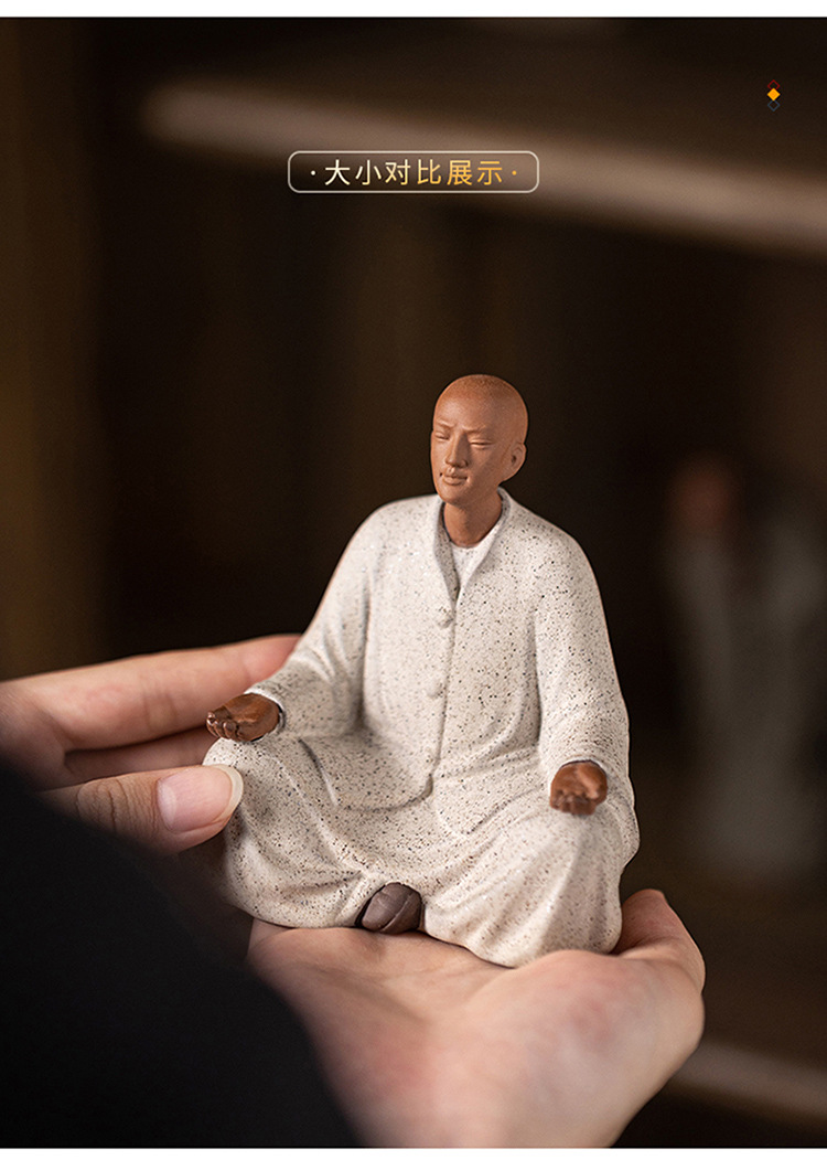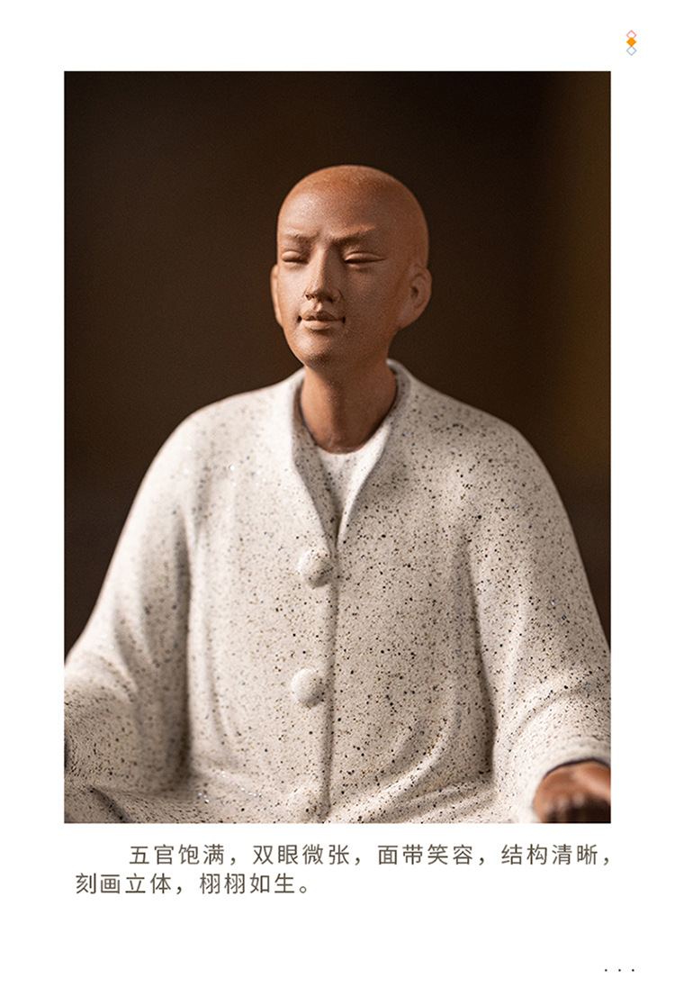 创意紫砂小和尚茶宠摆件人物禅意茶道茶室茶空间桌面茶台茶桌装饰