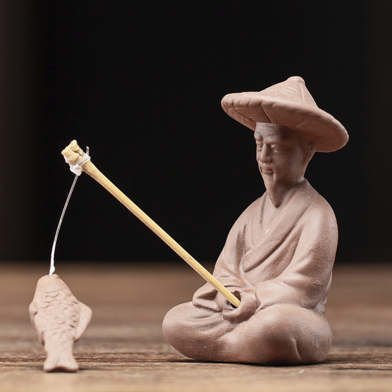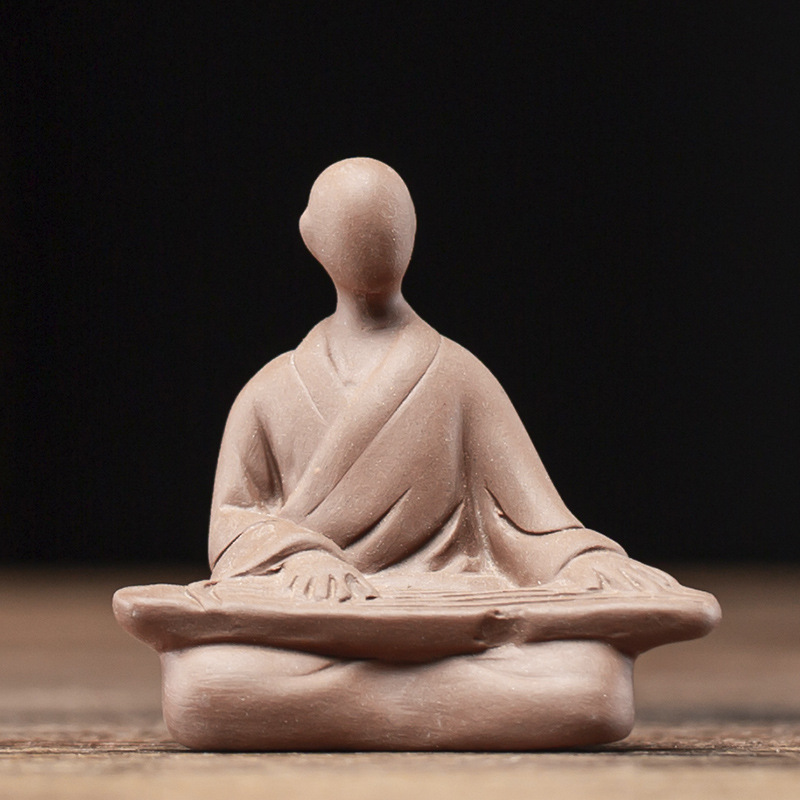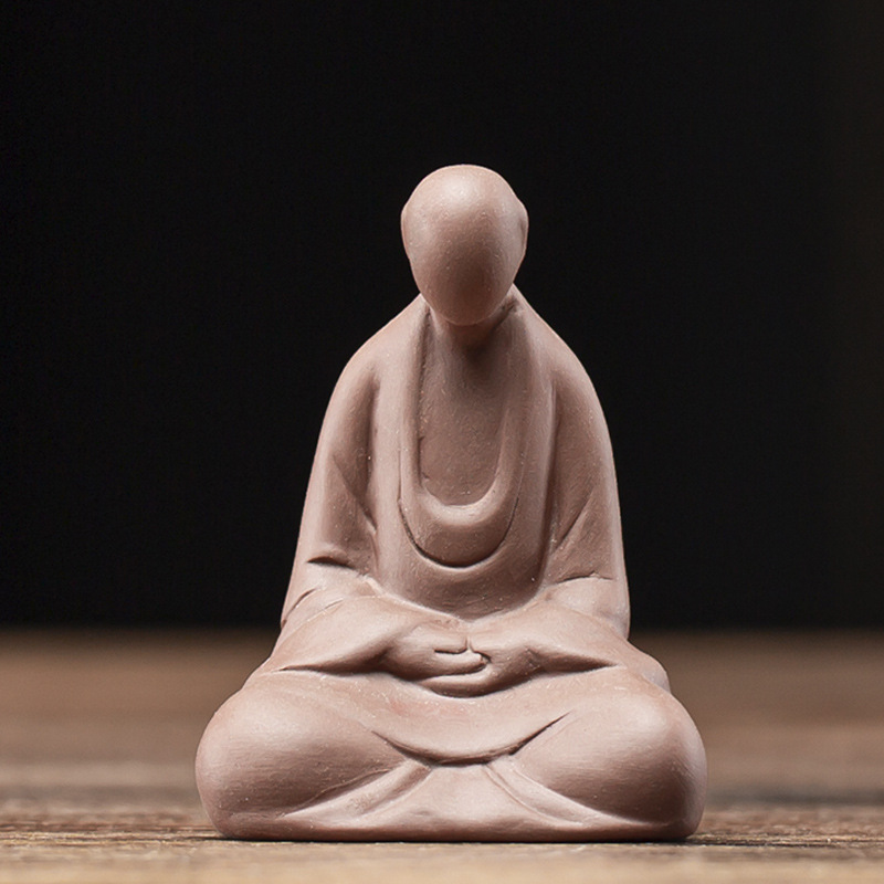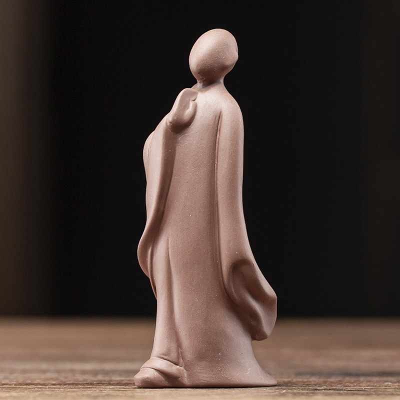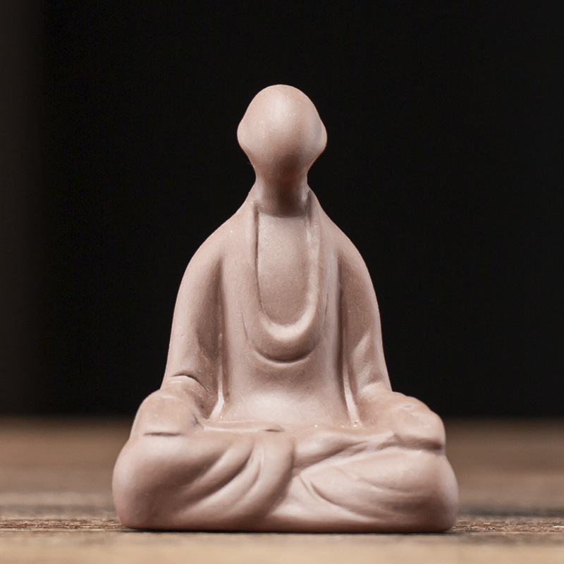 中式小沙弥摆件禅意小和尚创意陶瓷紫砂茶道花盆配件假山鱼缸造景