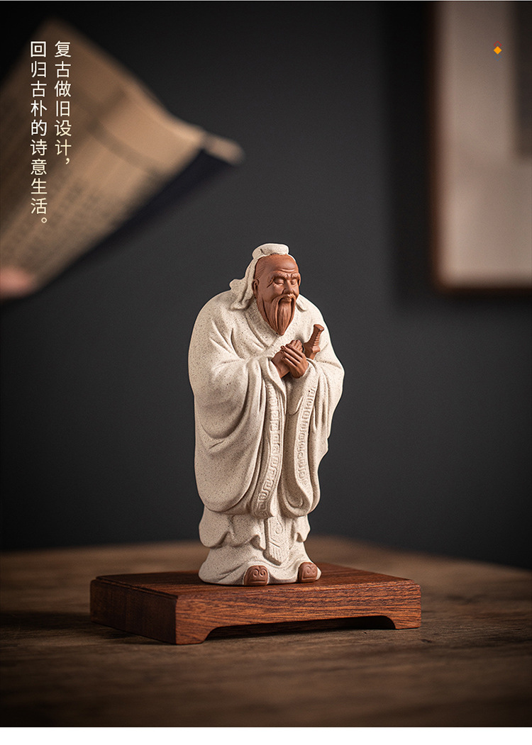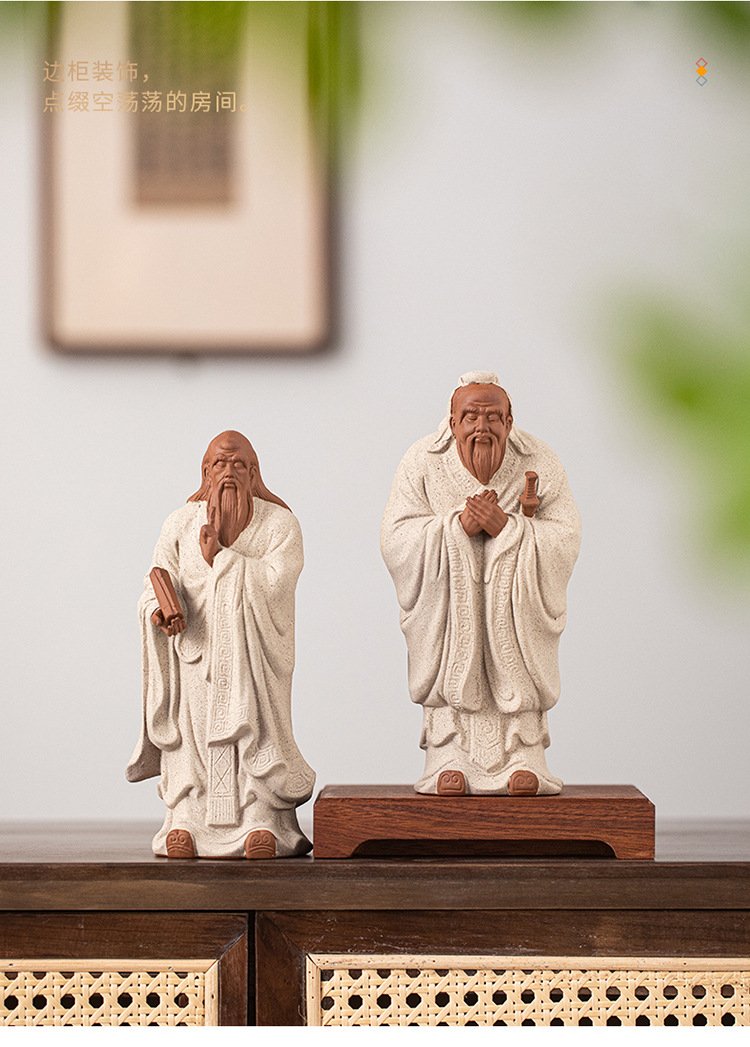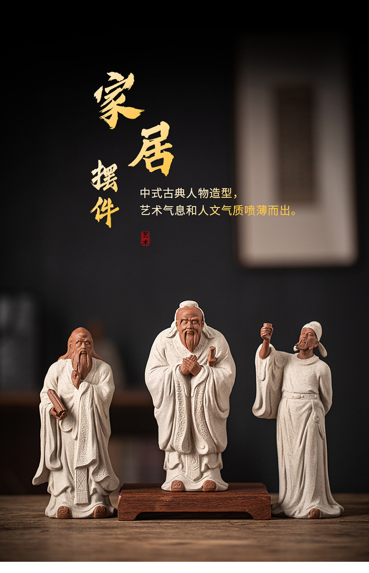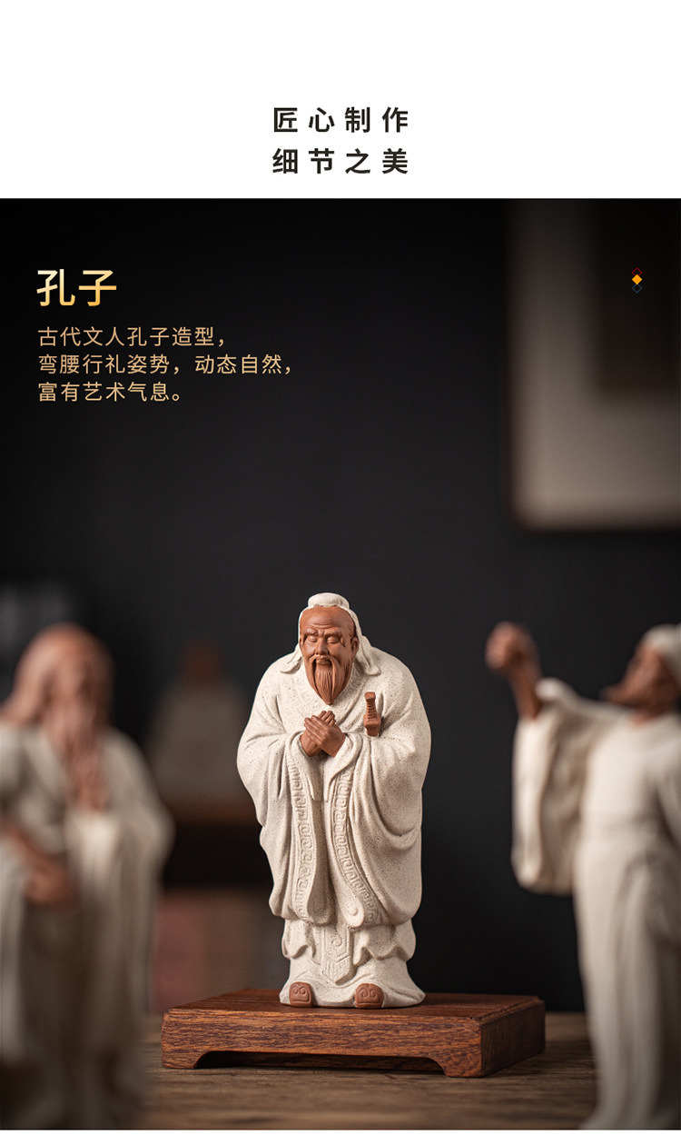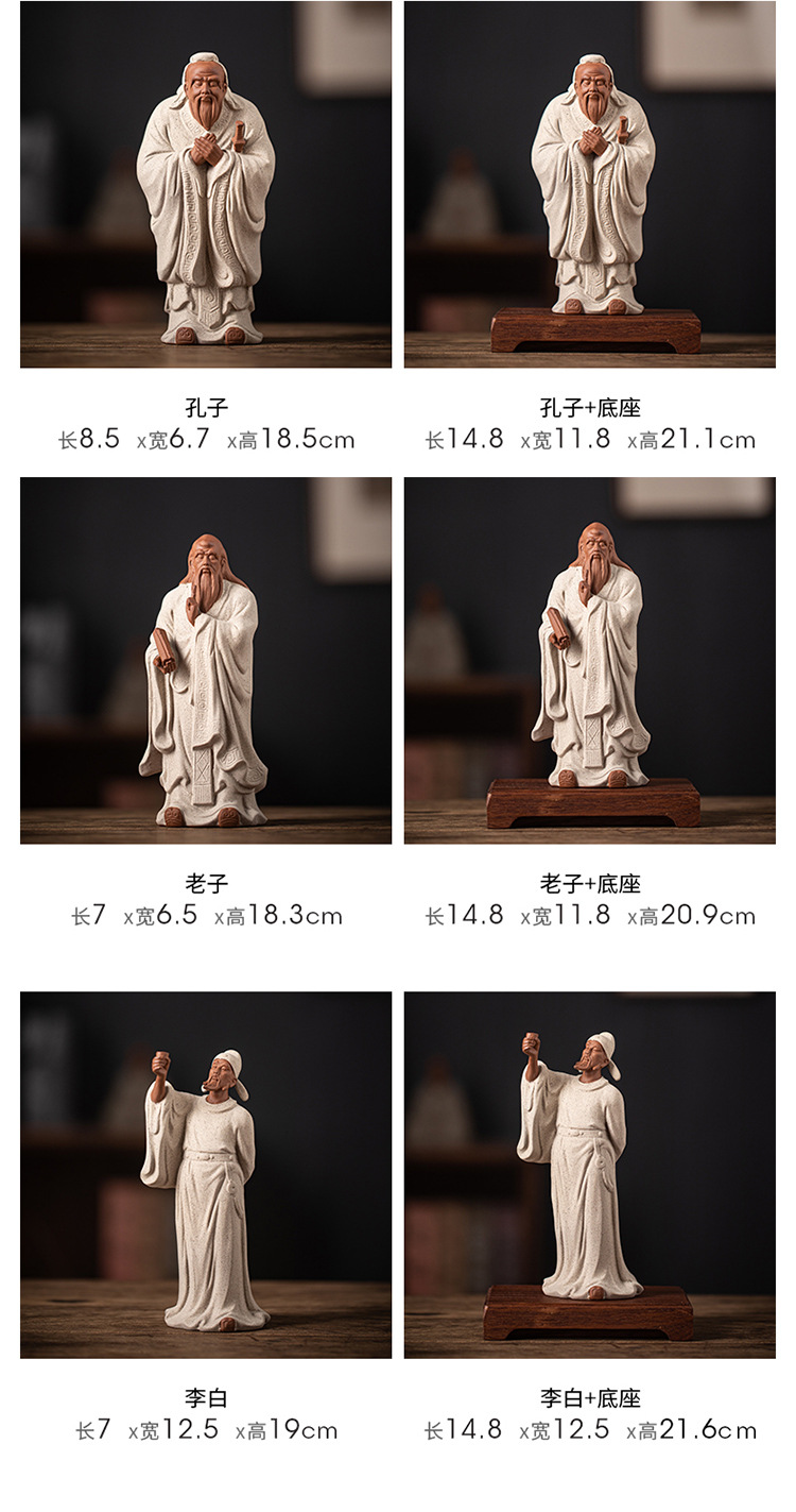 禅意紫砂历史人物孔子像李白摆件家居书房办公室玄关装饰礼品送人