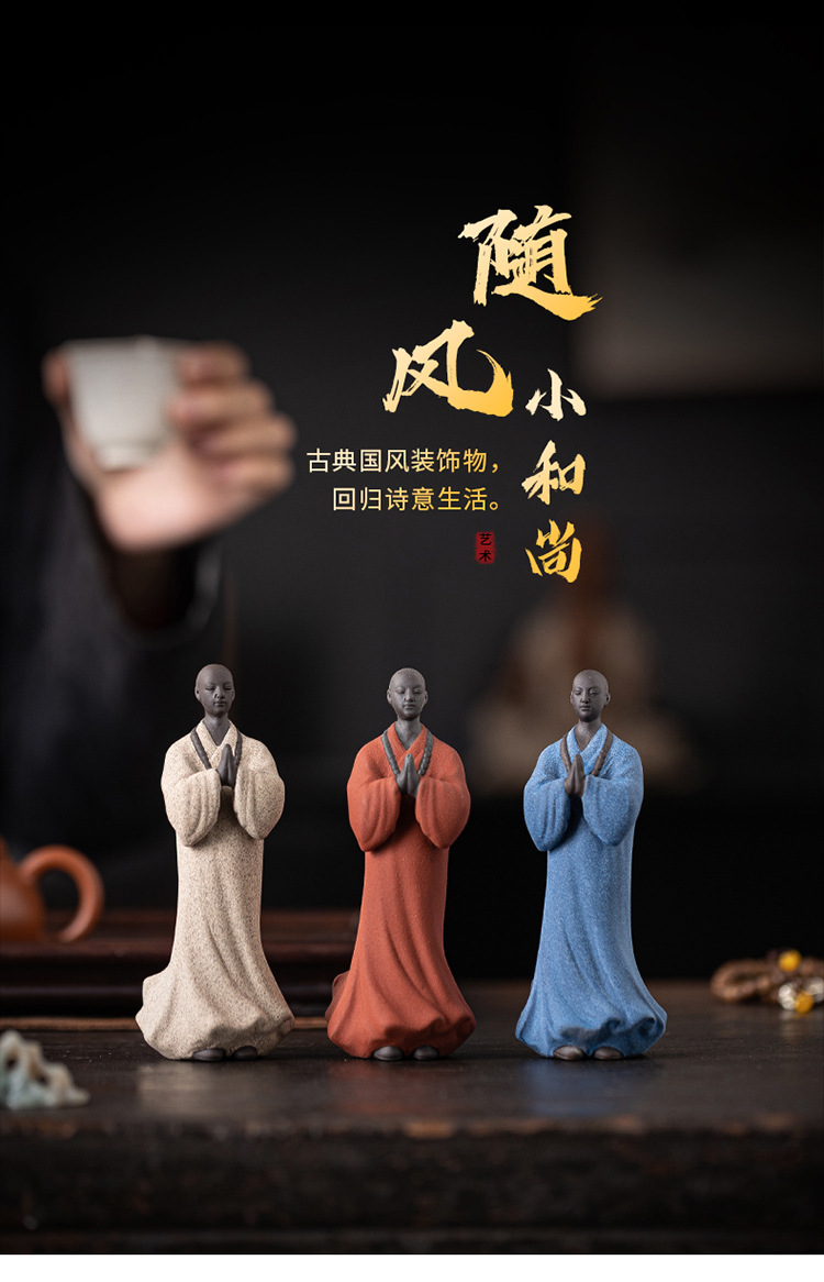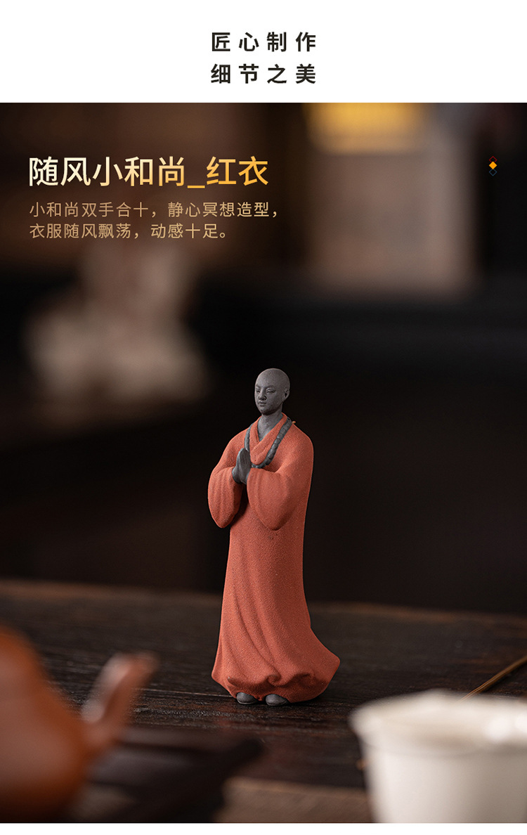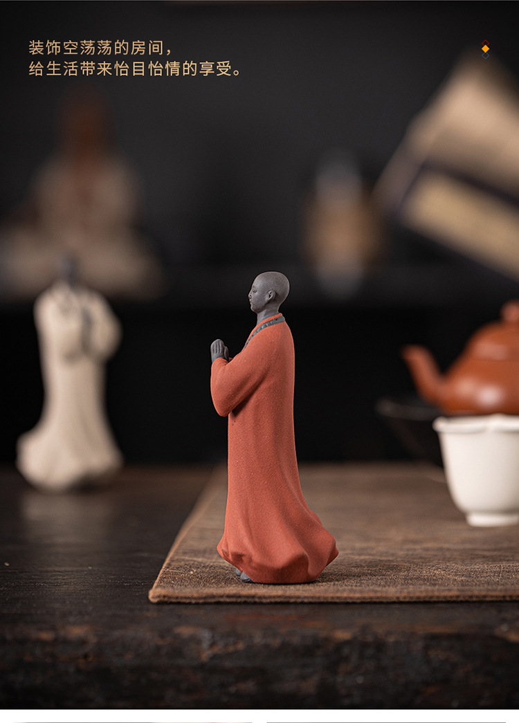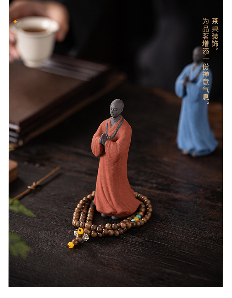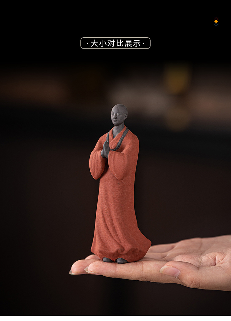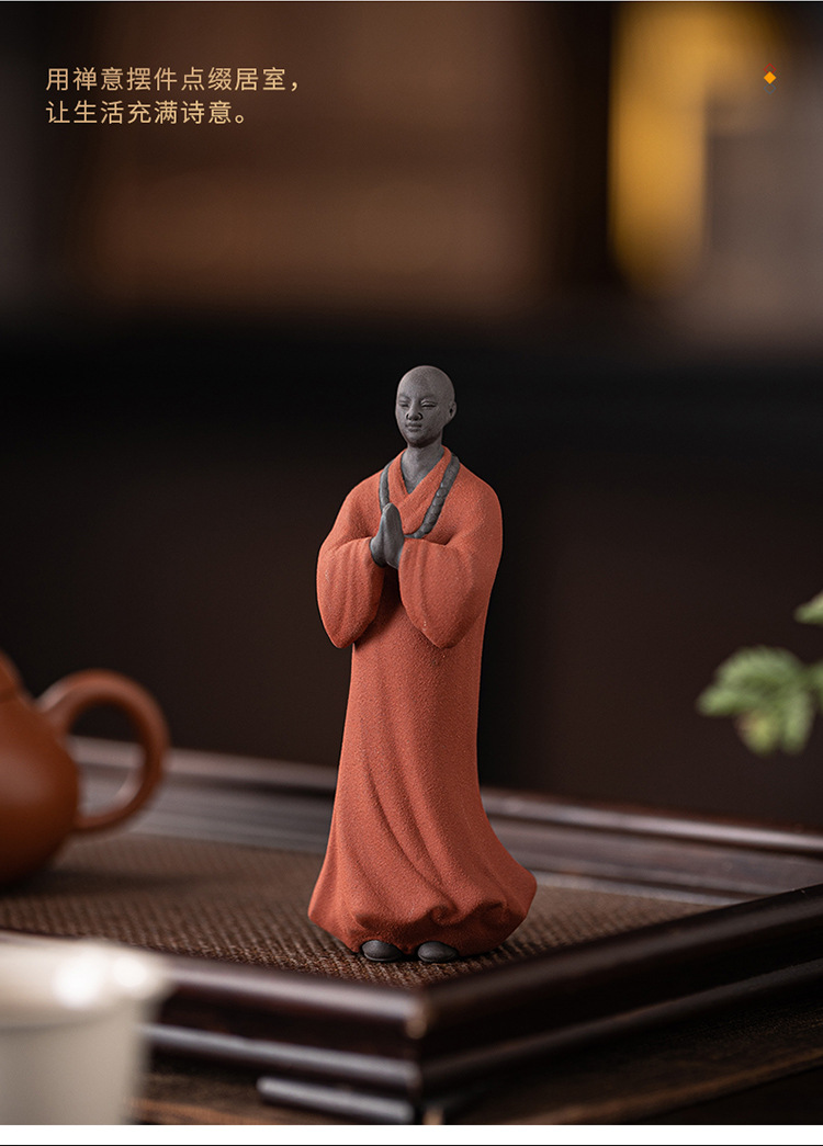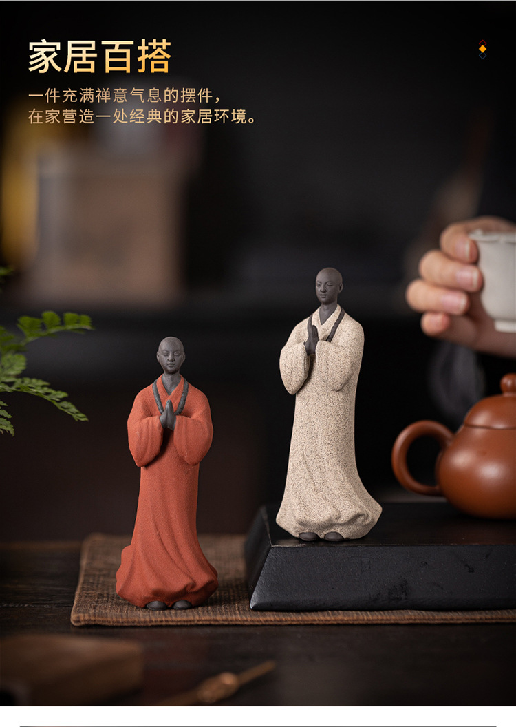 创意禅意小和尚紫砂茶宠摆件茶桌茶盘装饰品陶瓷人物盆栽假山造景