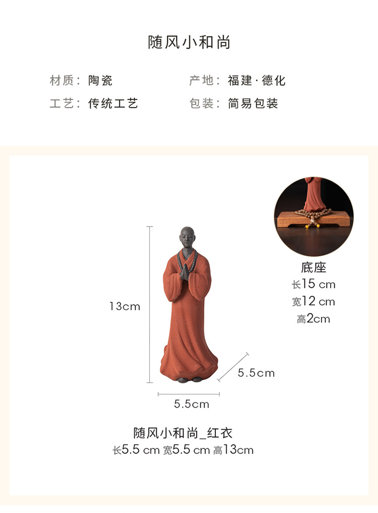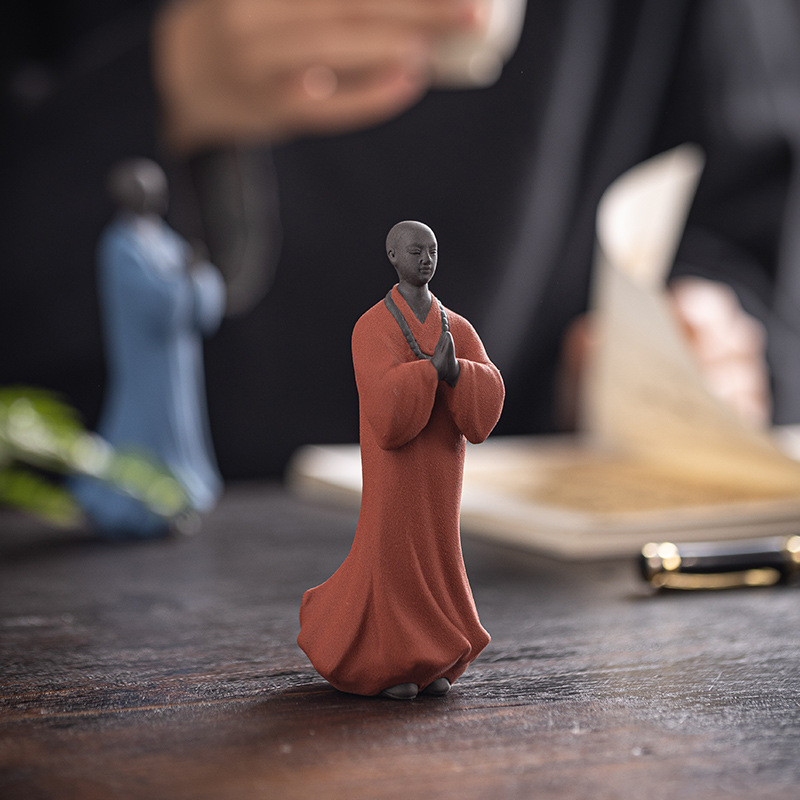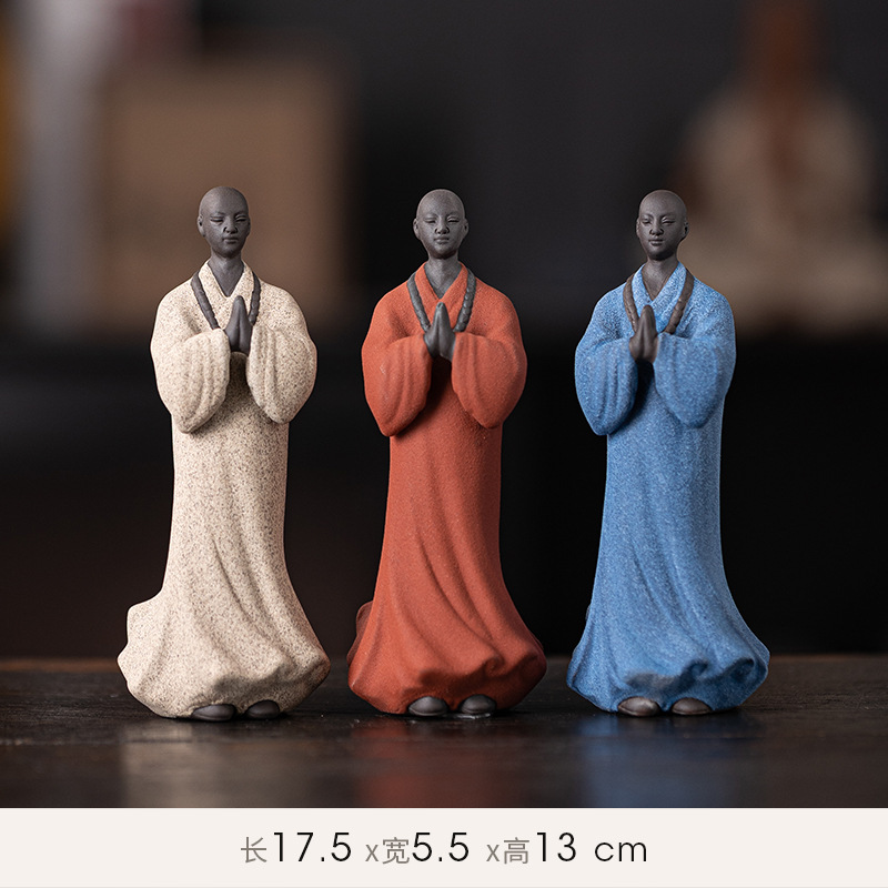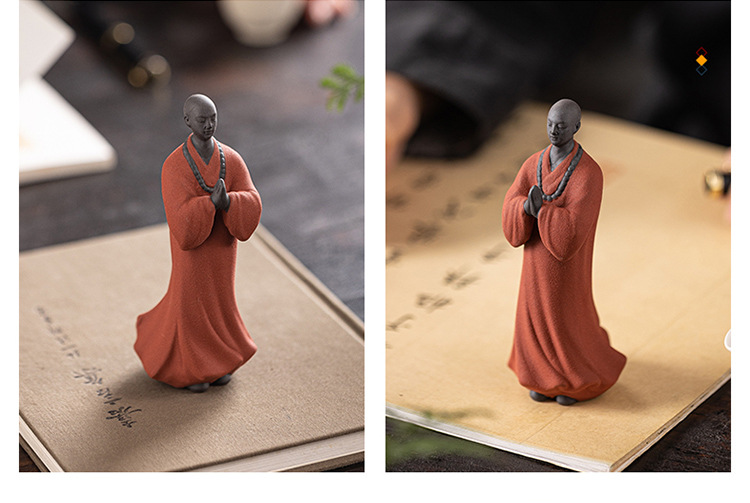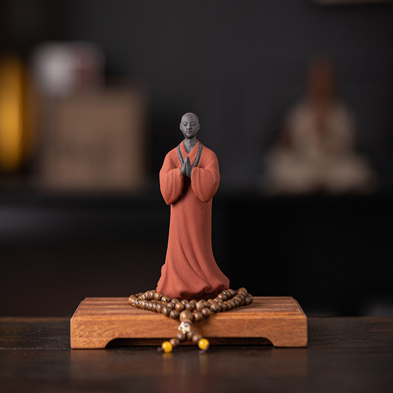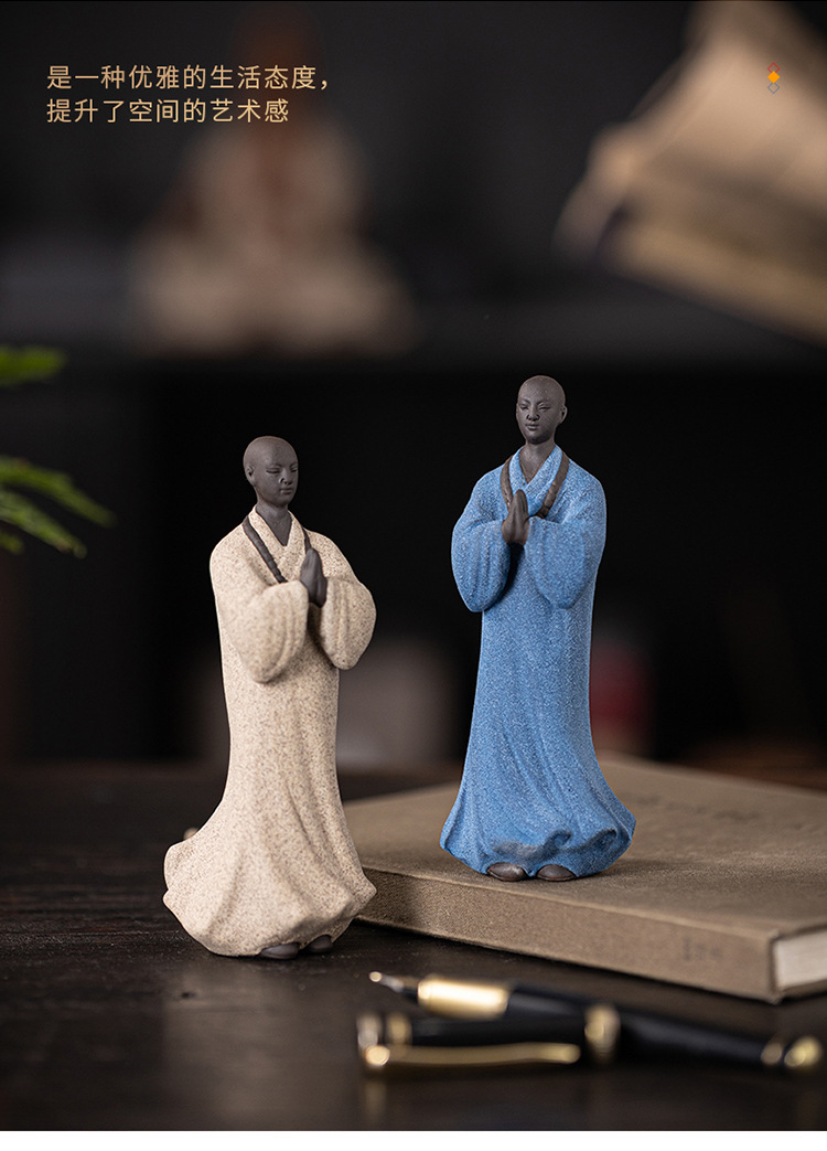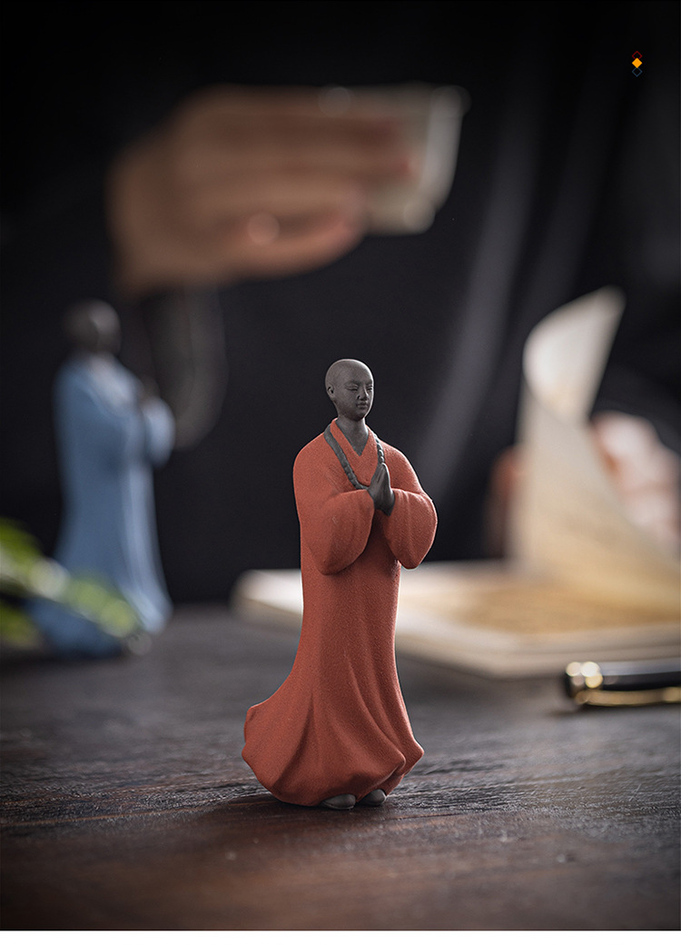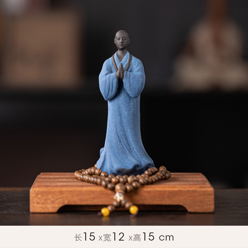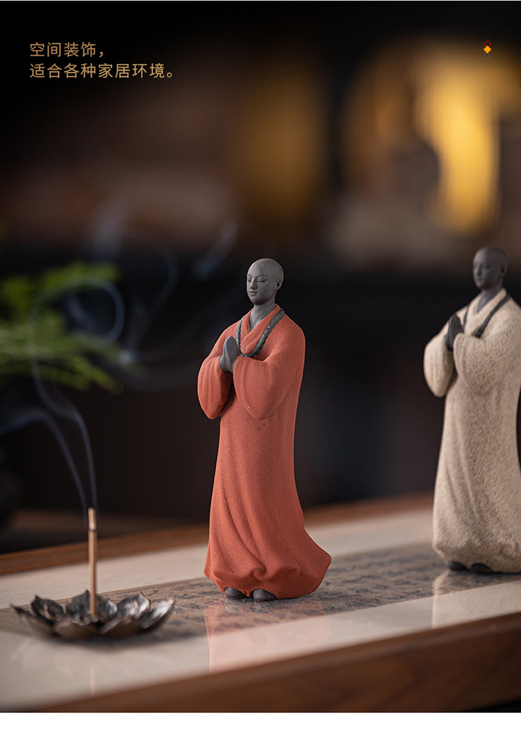 创意禅意小和尚紫砂茶宠摆件茶桌茶盘装饰品陶瓷人物盆栽假山造景