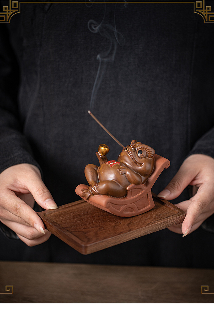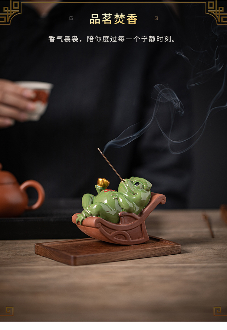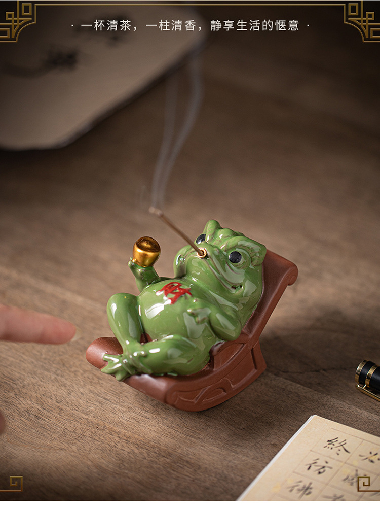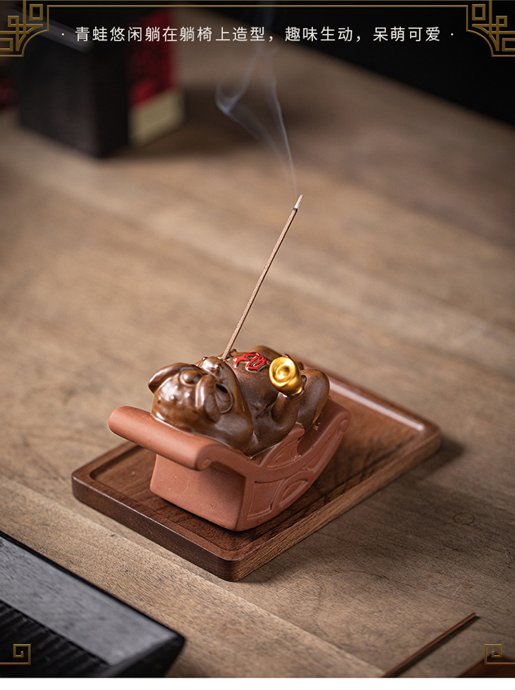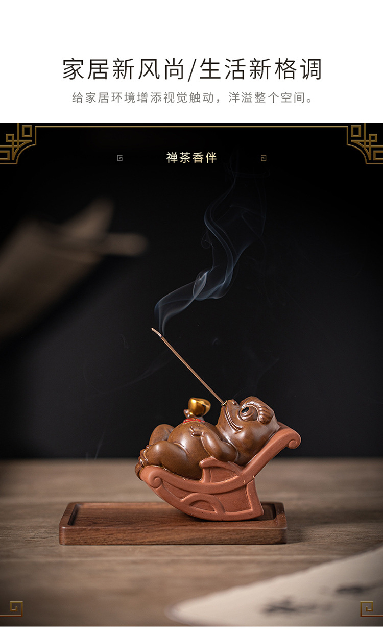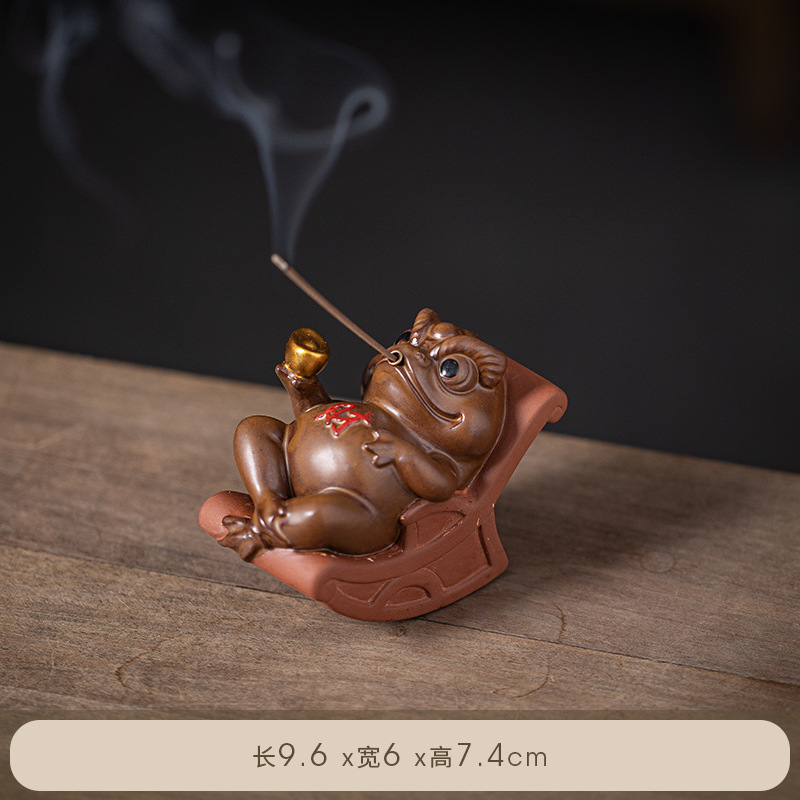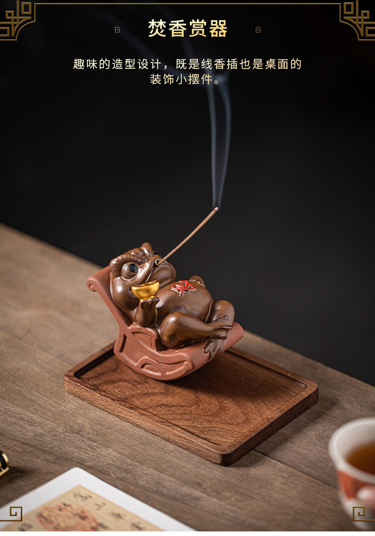 创意摇摇椅金蟾线香炉家用禅意蟾蜍香插香座茶道熏香炉摆件