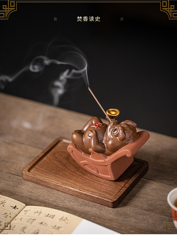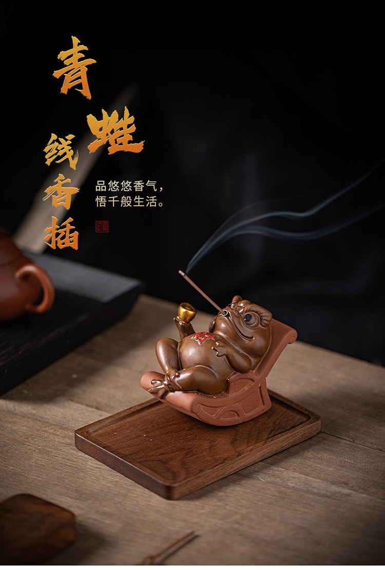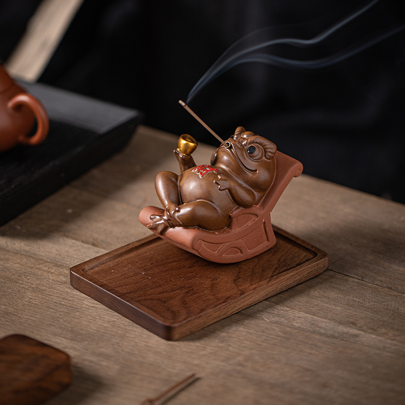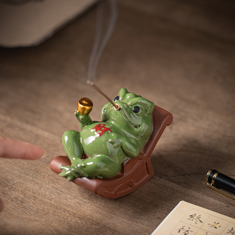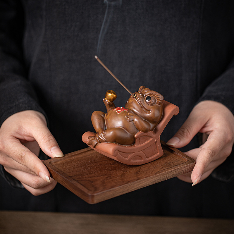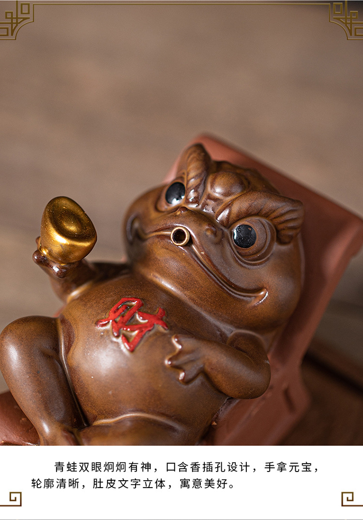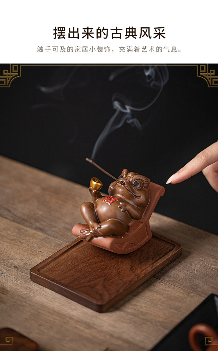 创意摇摇椅金蟾线香炉家用禅意蟾蜍香插香座茶道熏香炉摆件