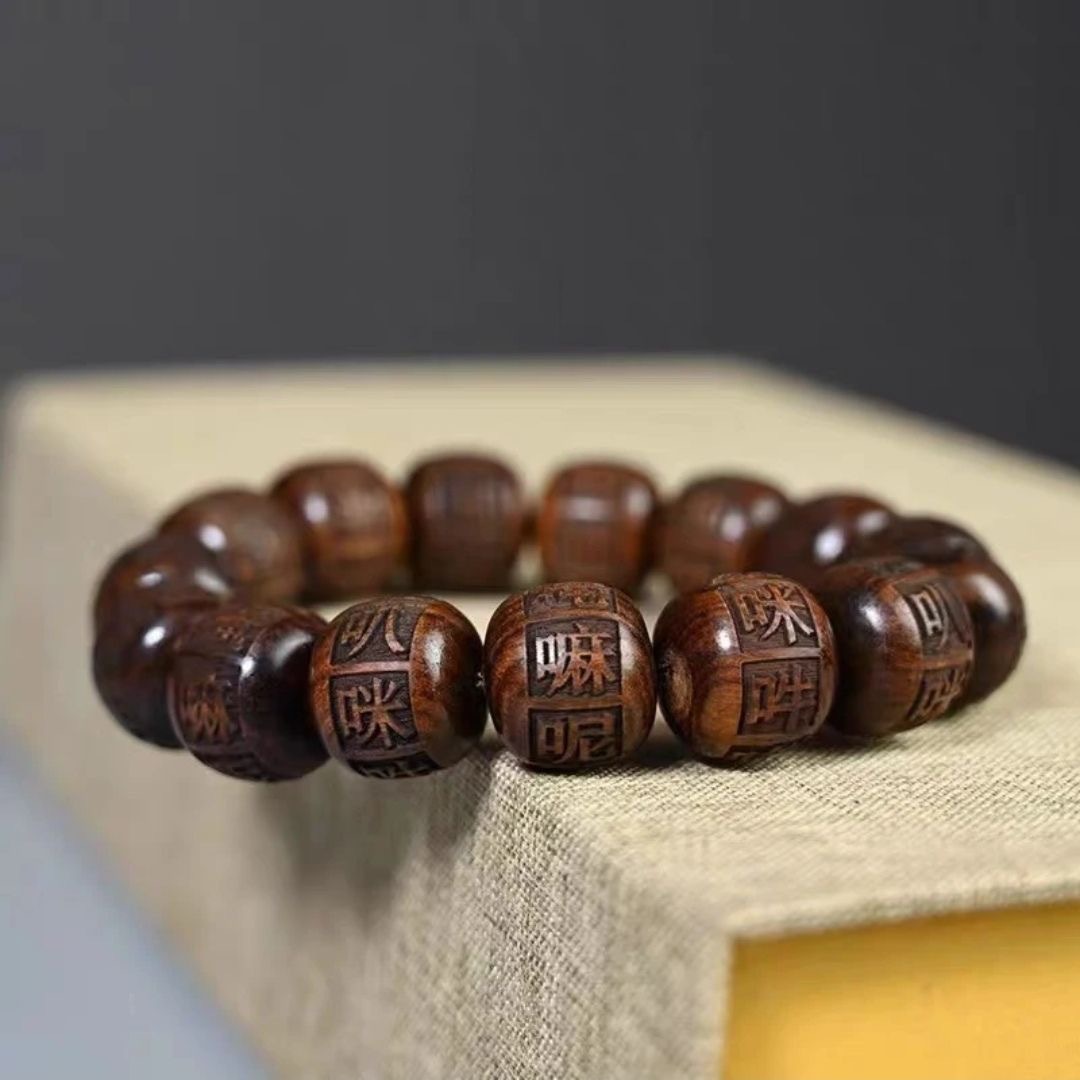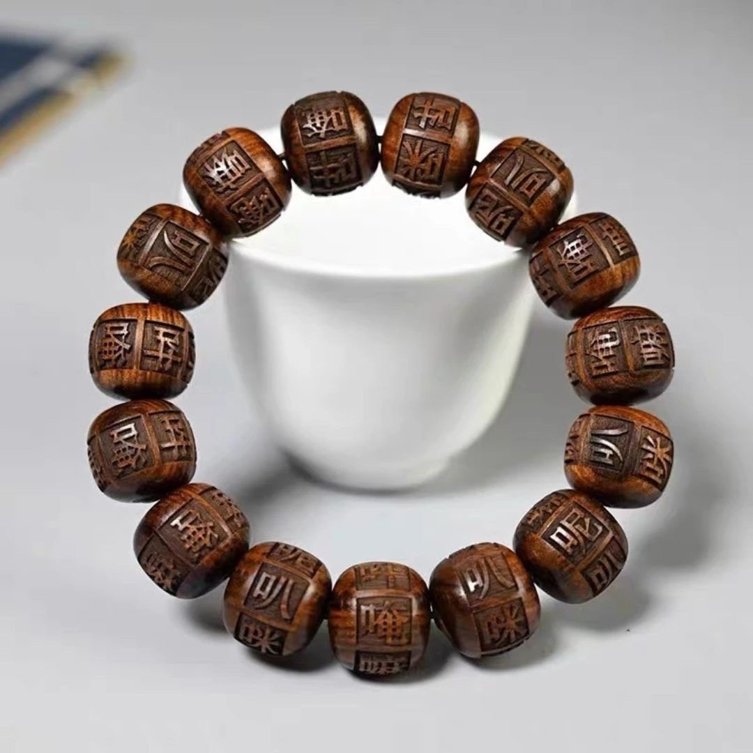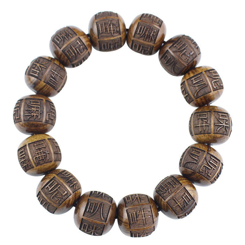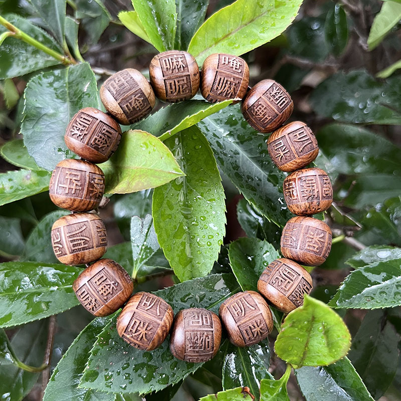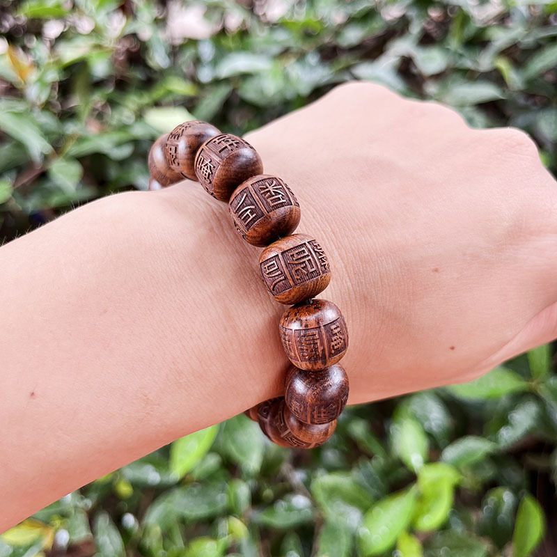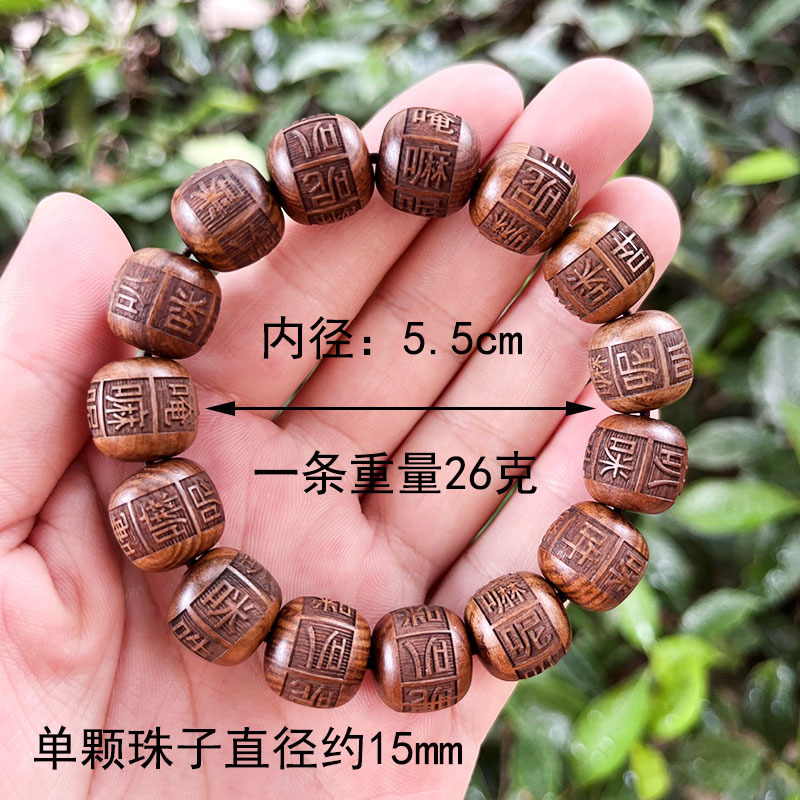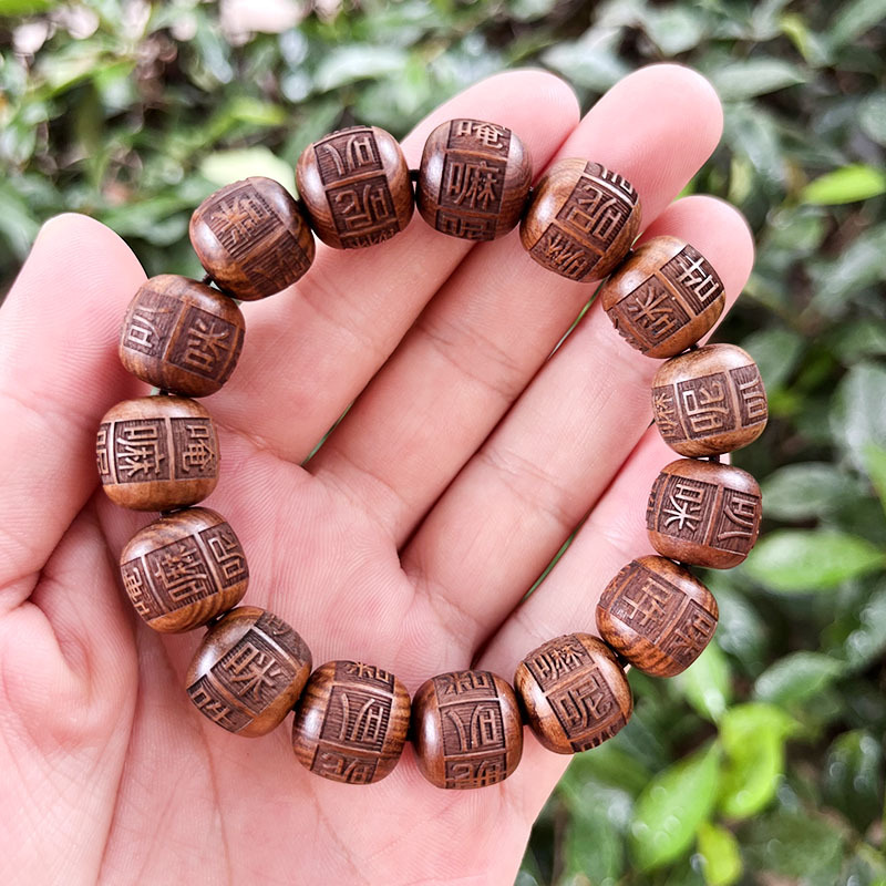 创意黑花梨花梨木手串雕刻佛珠唵嘛呢叭咪吽六字真言男女情侣手串