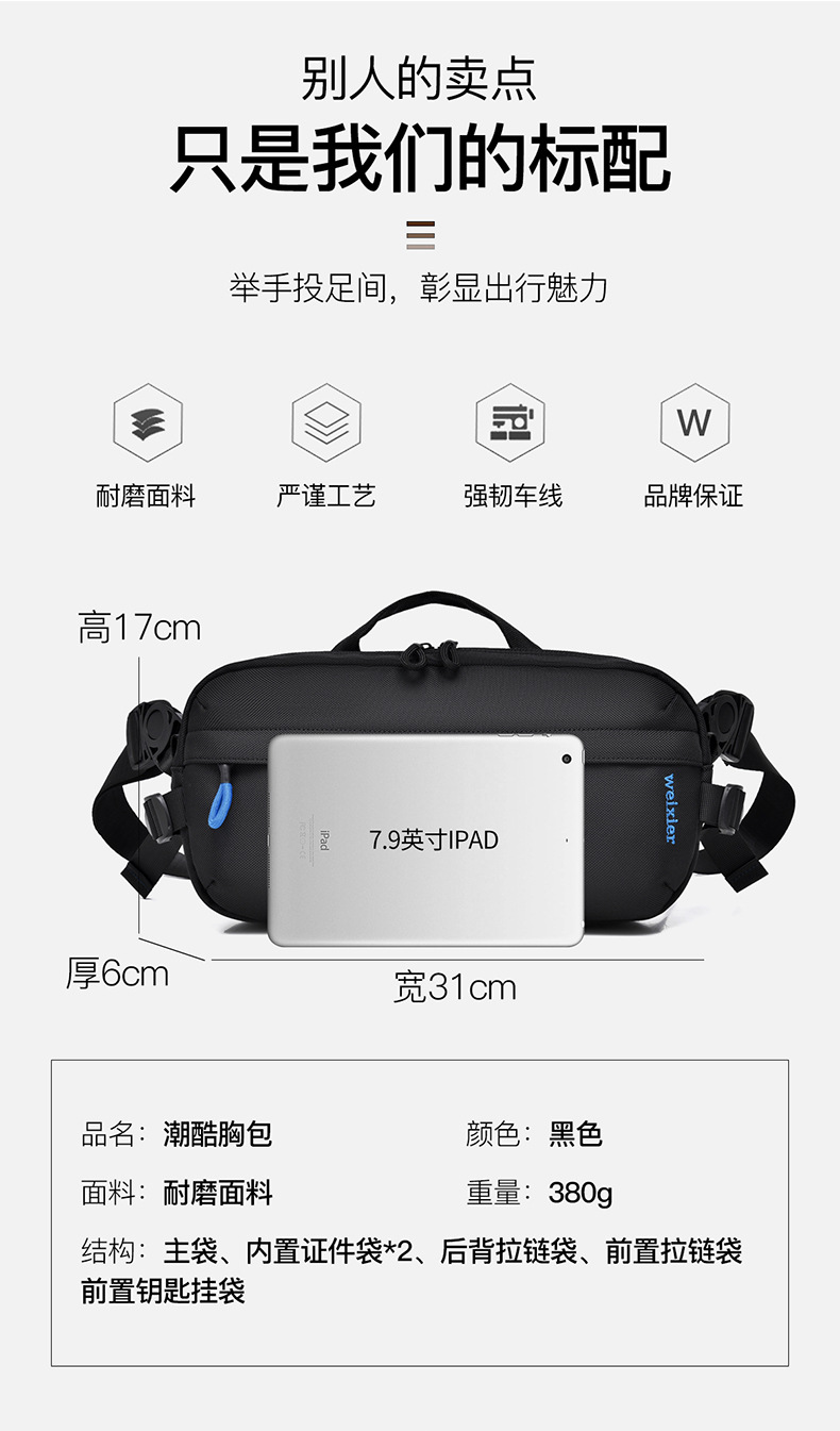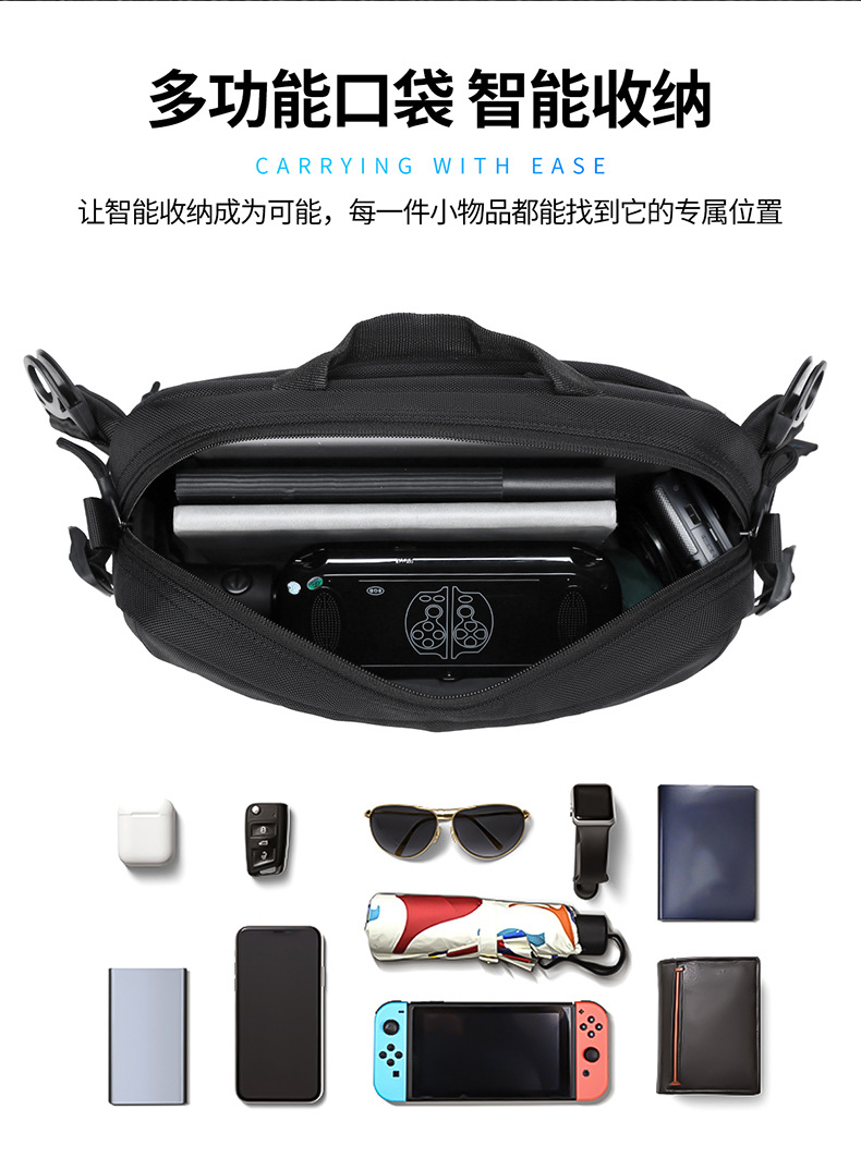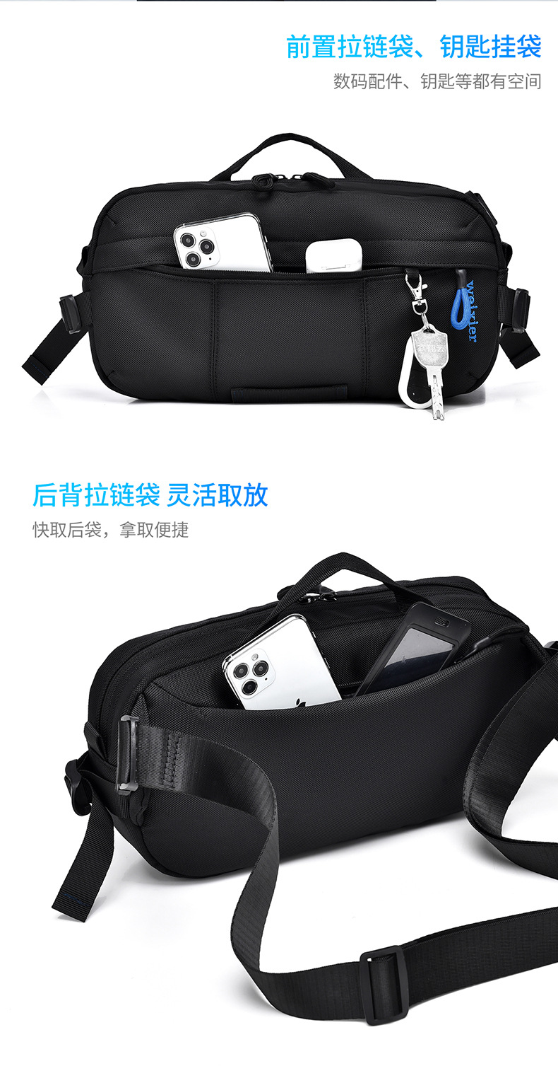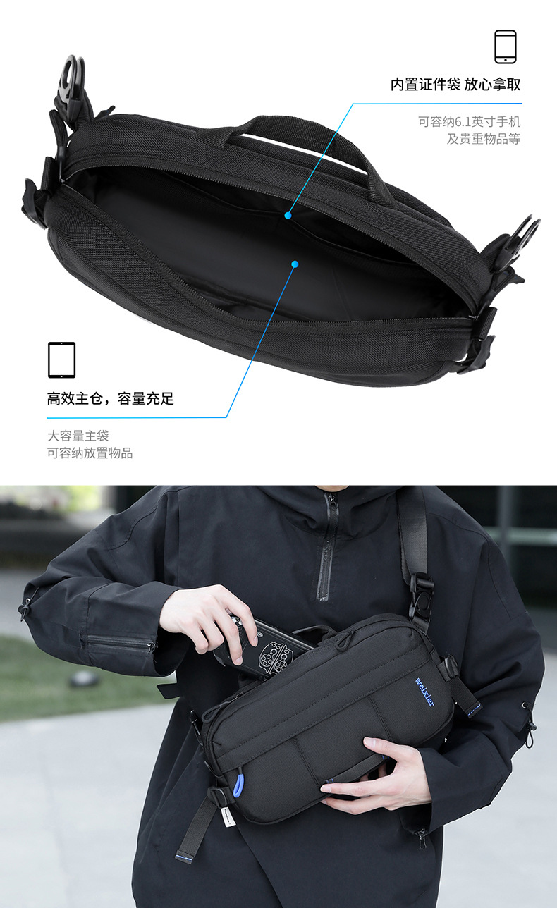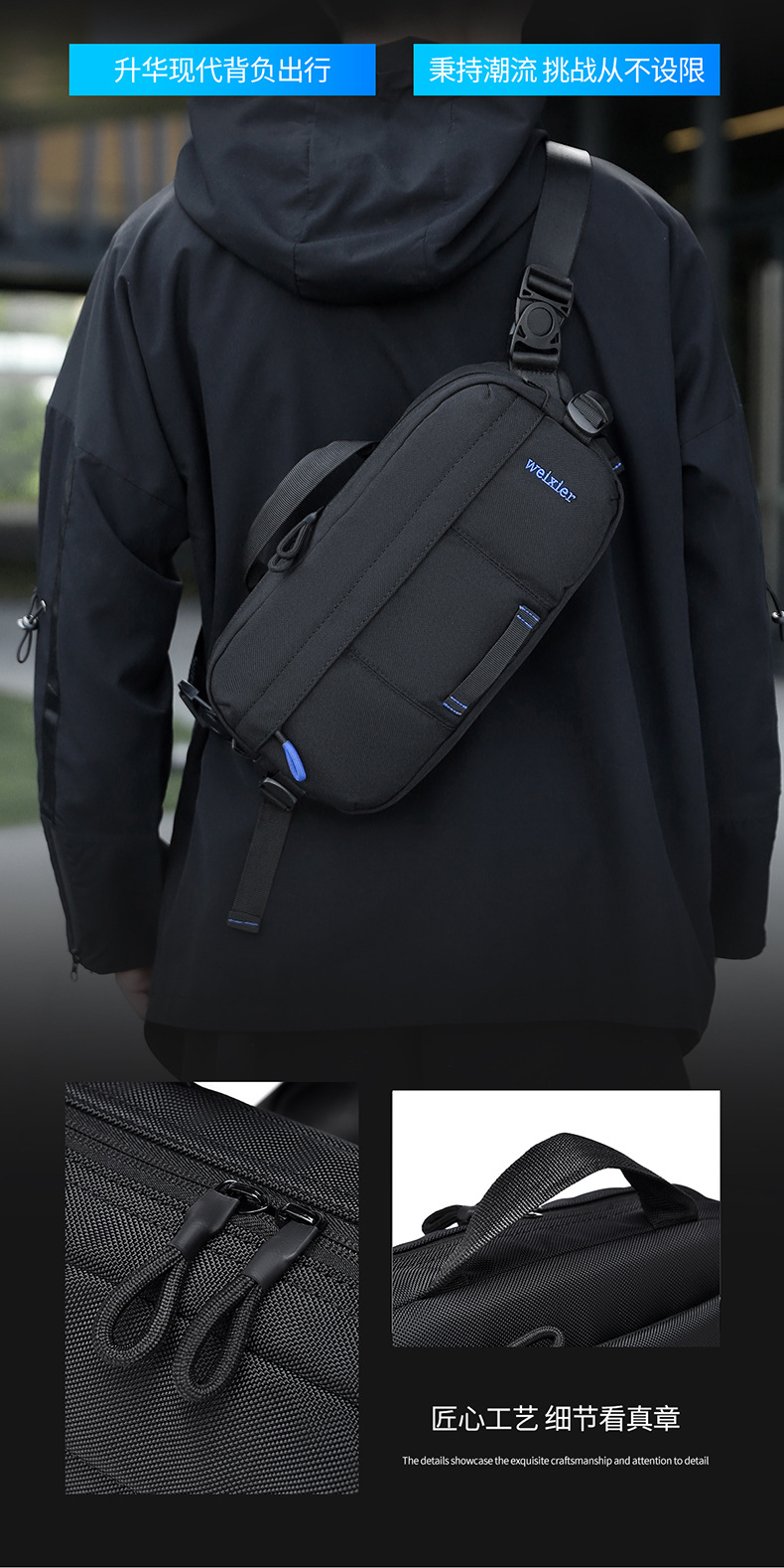 跨境新款男士高级感牛津布胸包大容量斜挎包休闲运动挎包防泼水