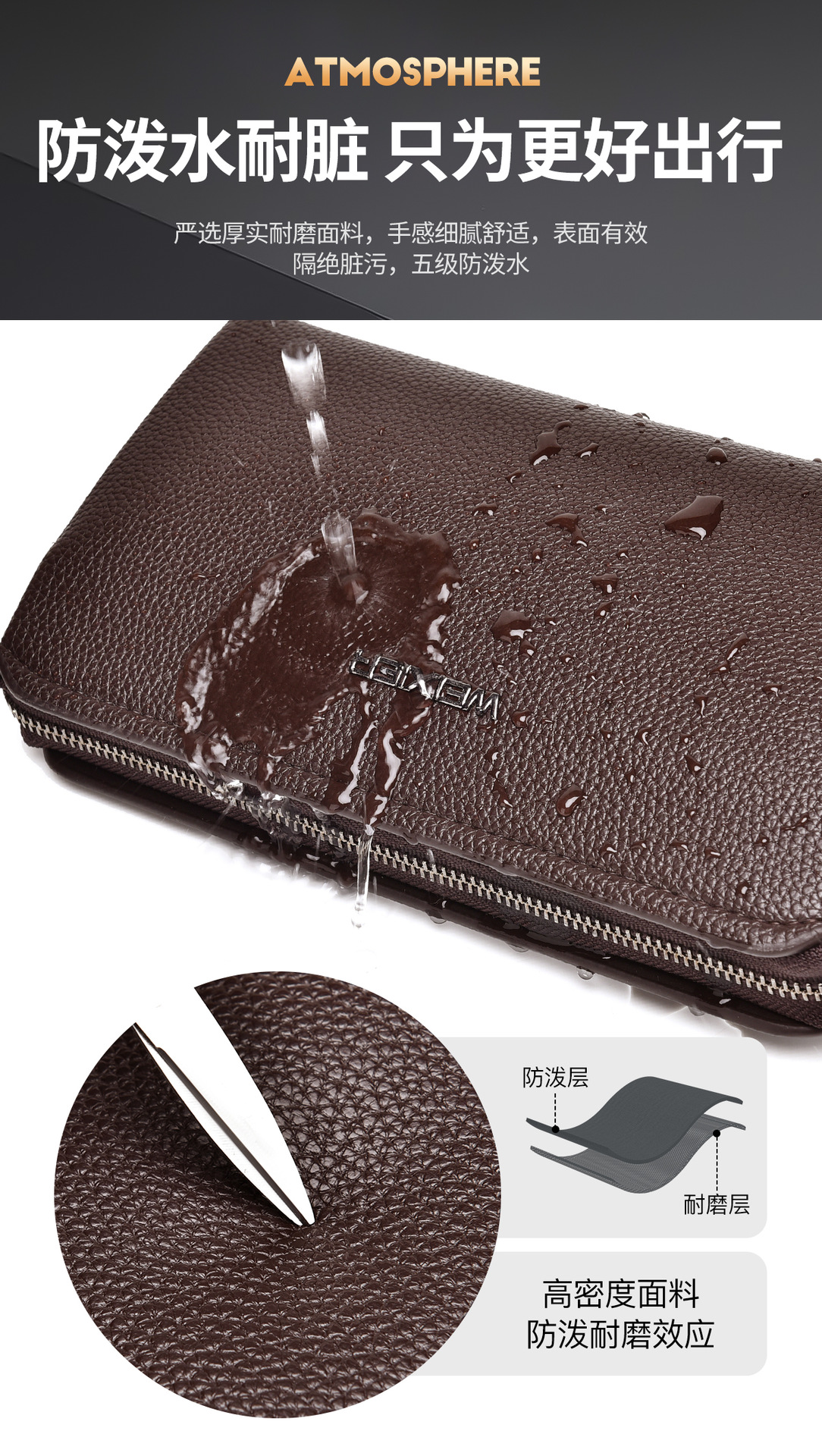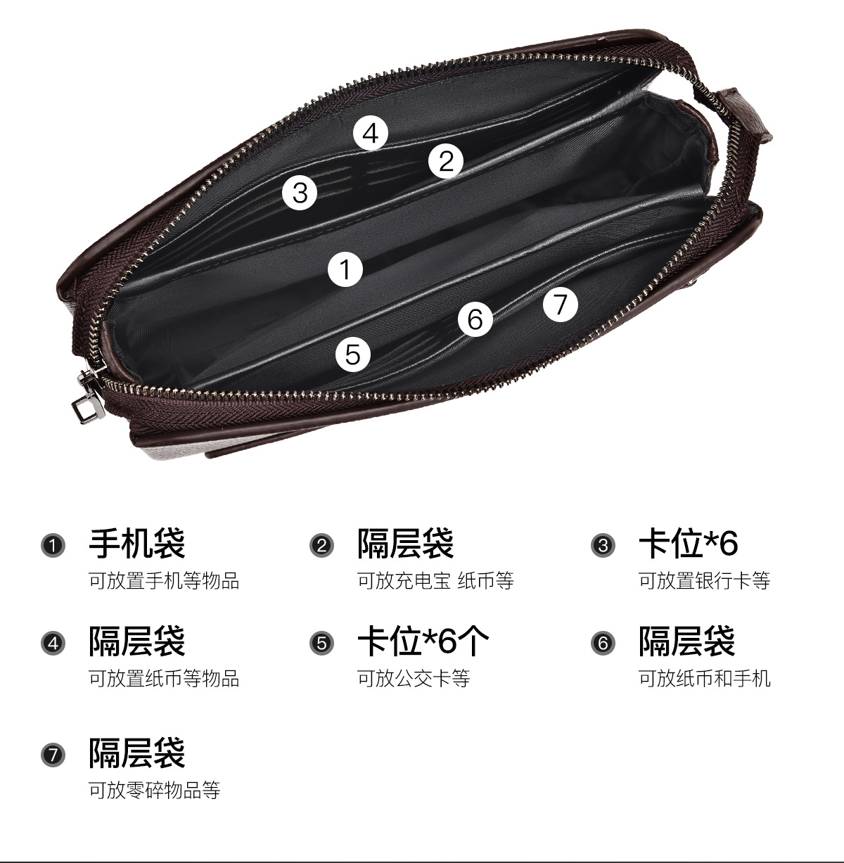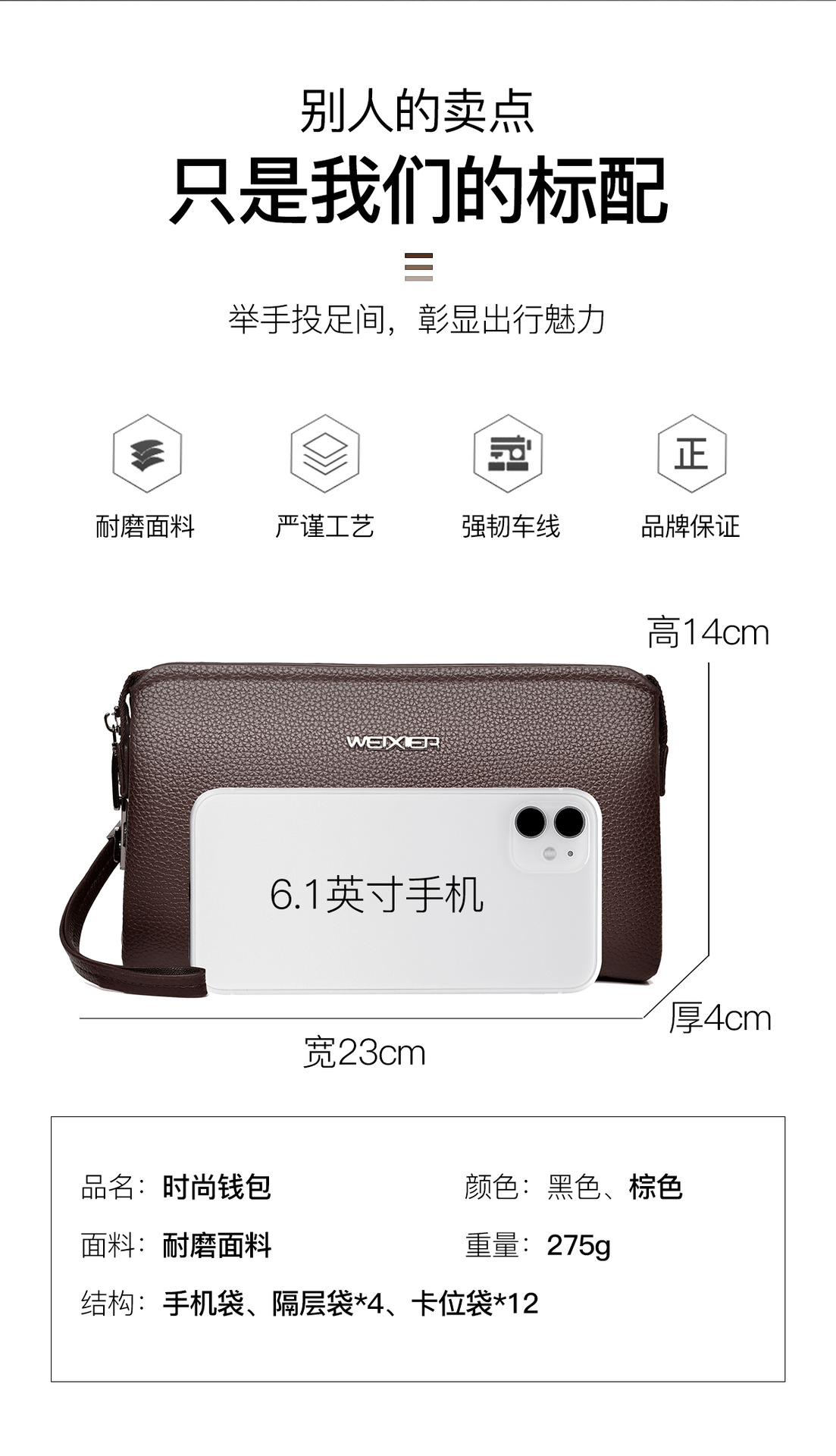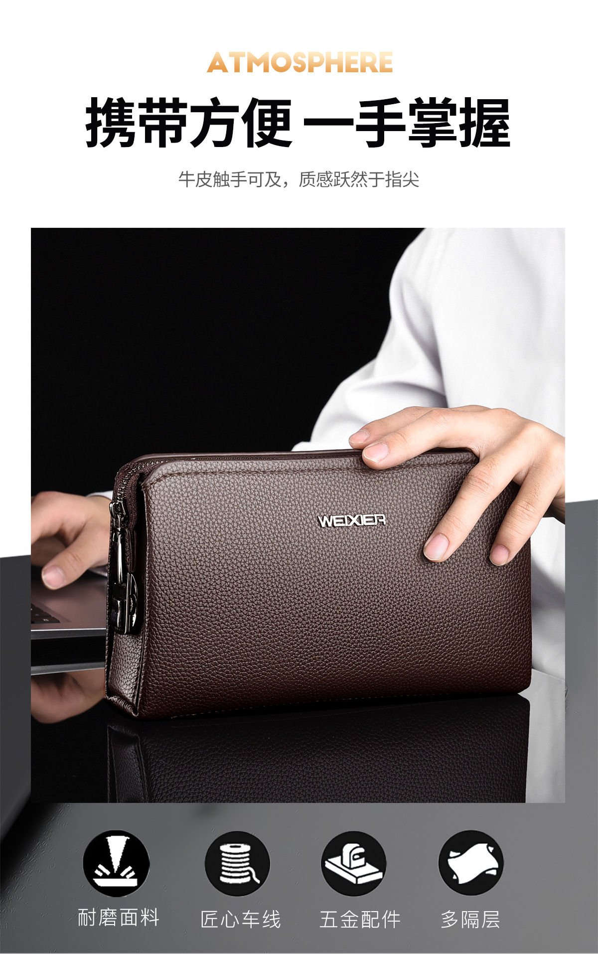 外贸男士钱包 新品男士手拿包高级感男士手抓包商务纯色手包男款