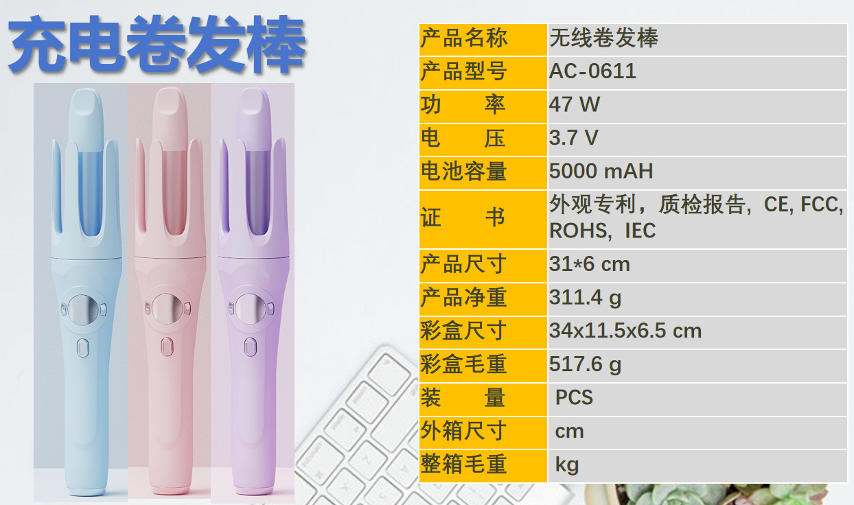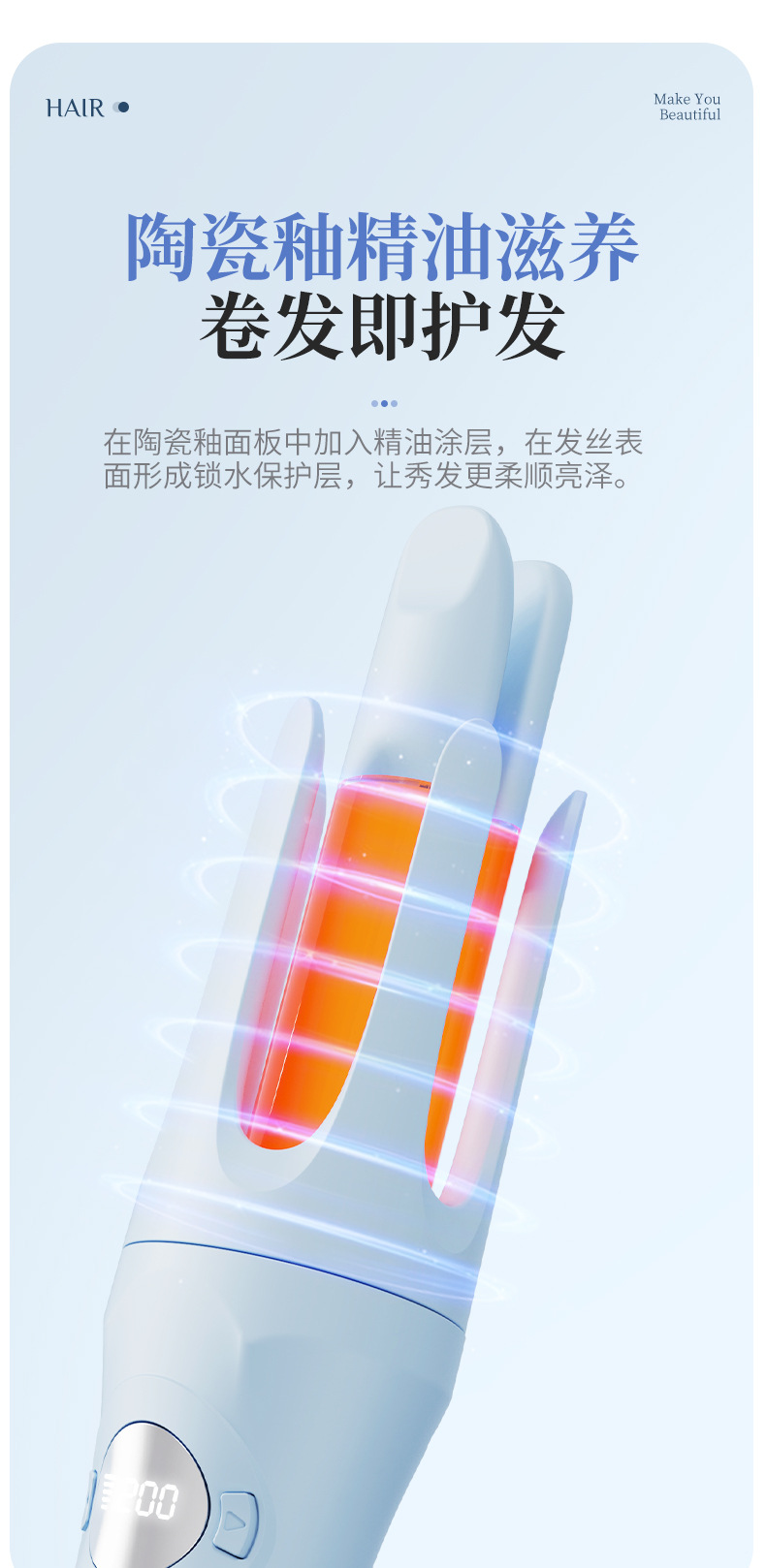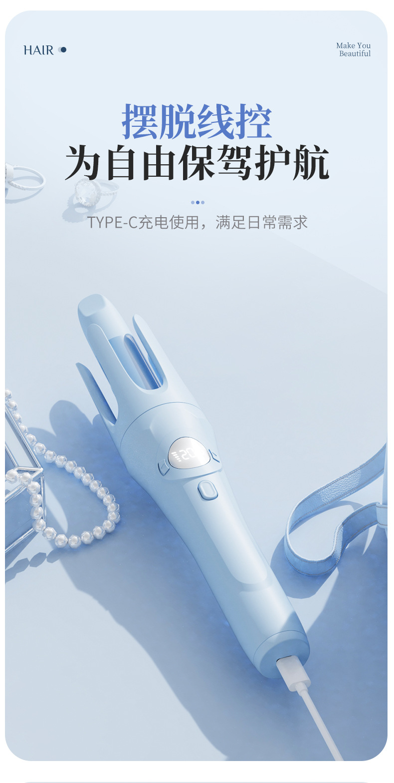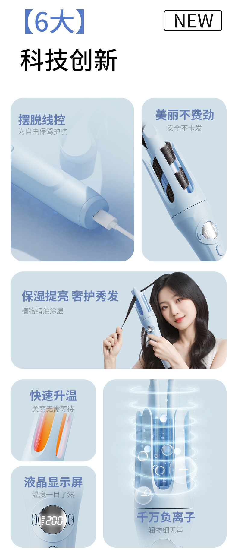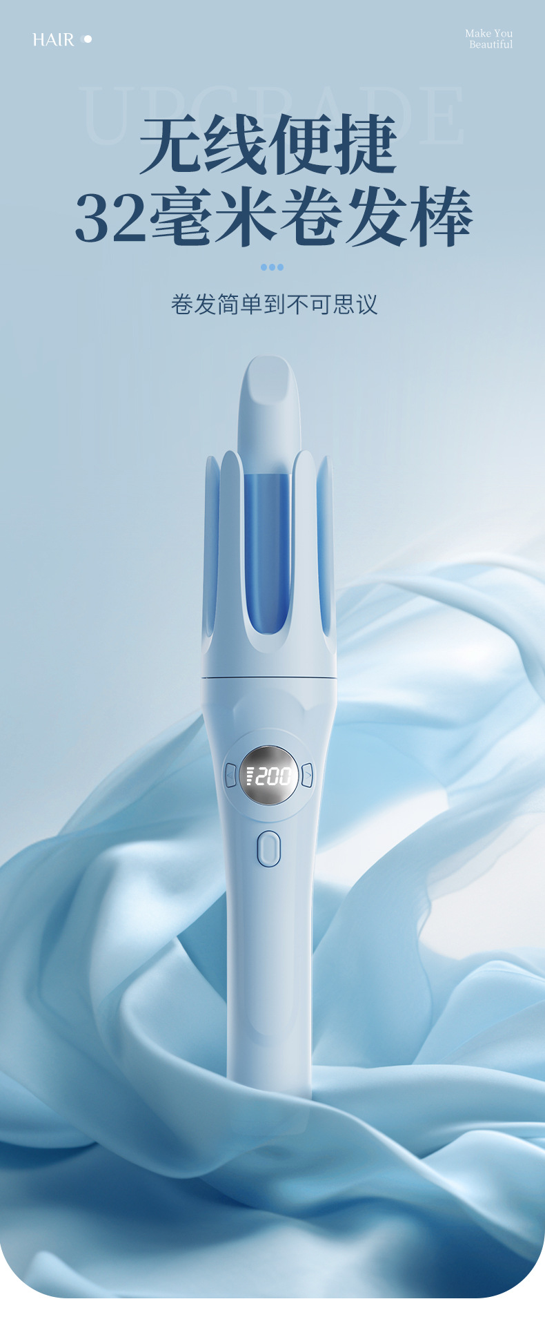 自动卷发棒无线负离子不伤发卷发器蜂鸣便携32mm大波浪电卷棒跨境