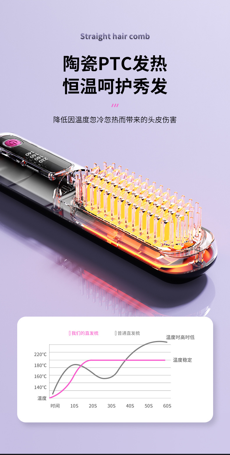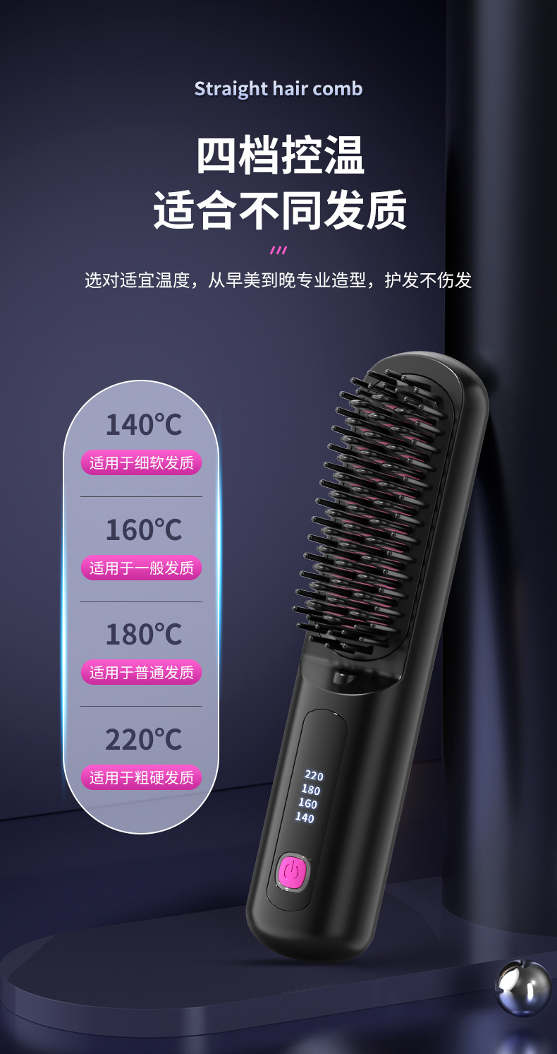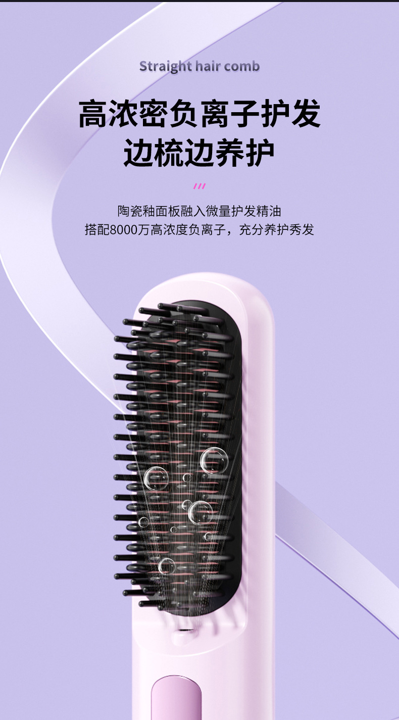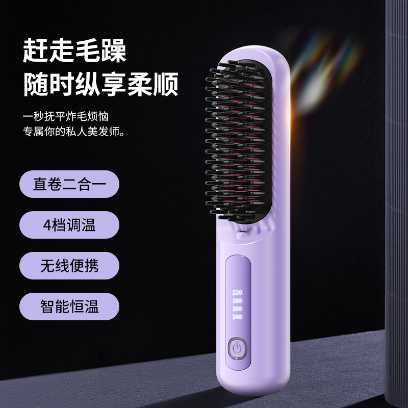 跨境直发梳无线负离子不伤发便携直发梳直卷两用充电款电动无线