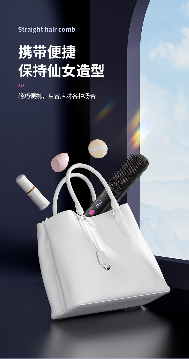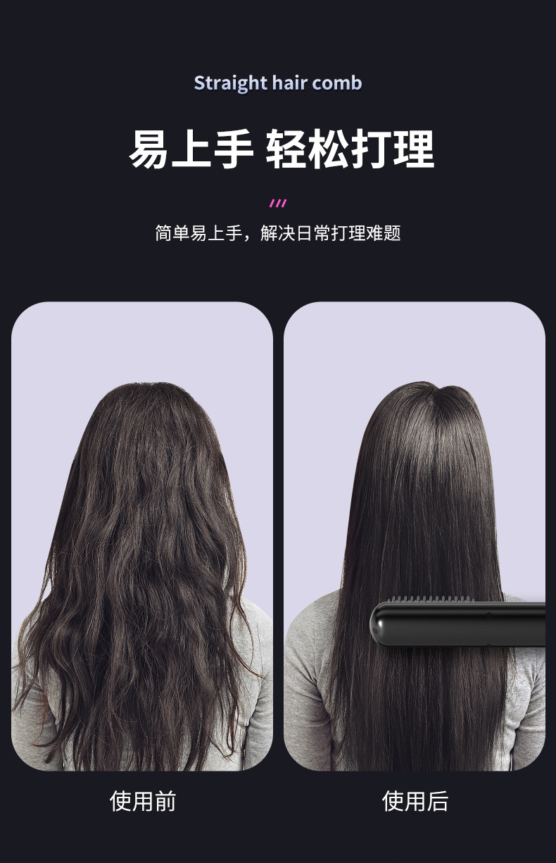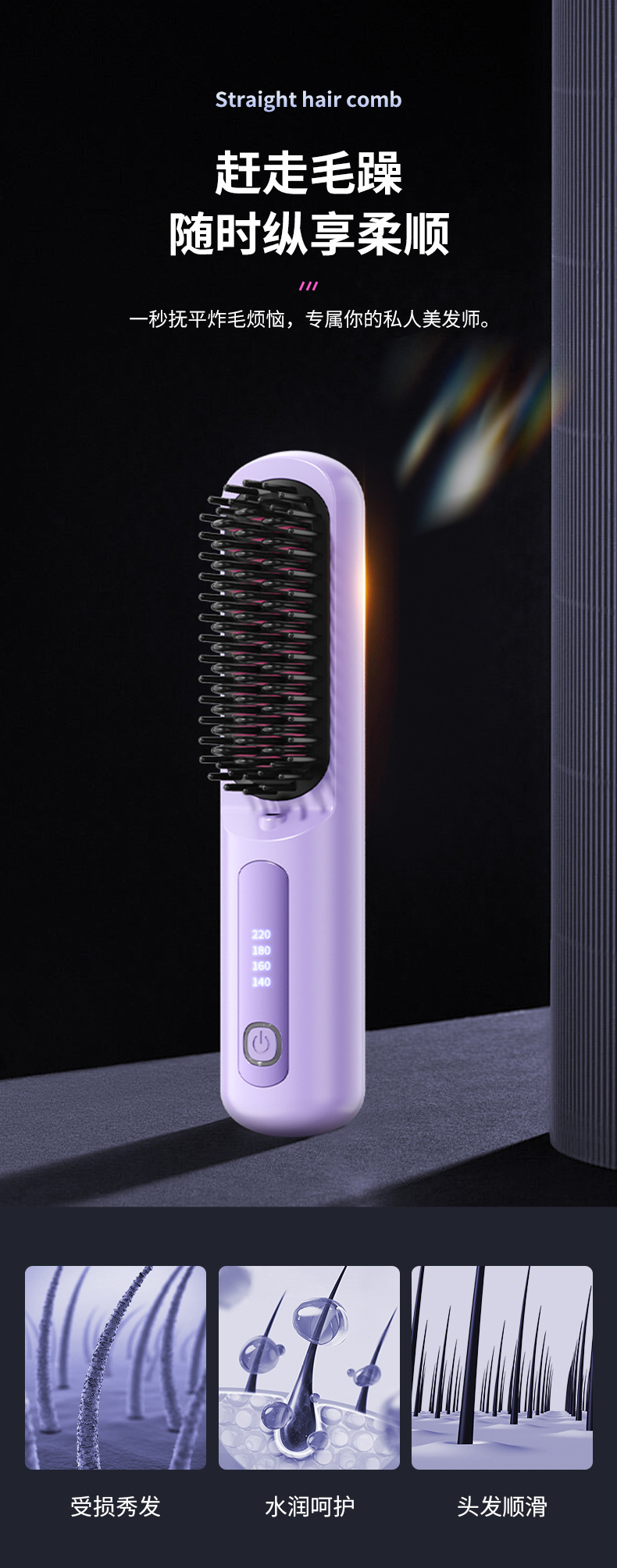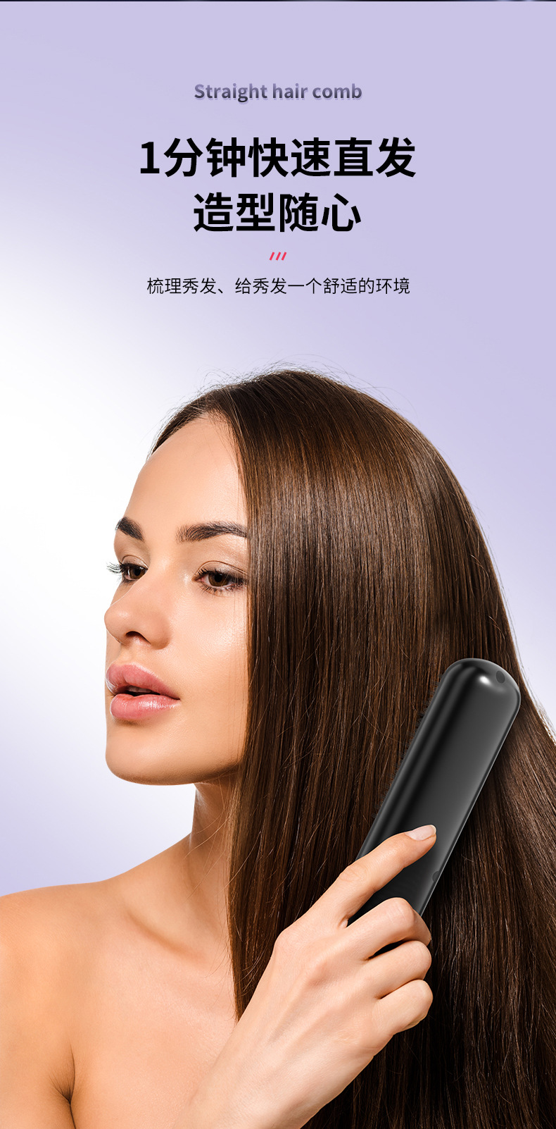 跨境直发梳无线负离子不伤发便携直发梳直卷两用充电款电动无线