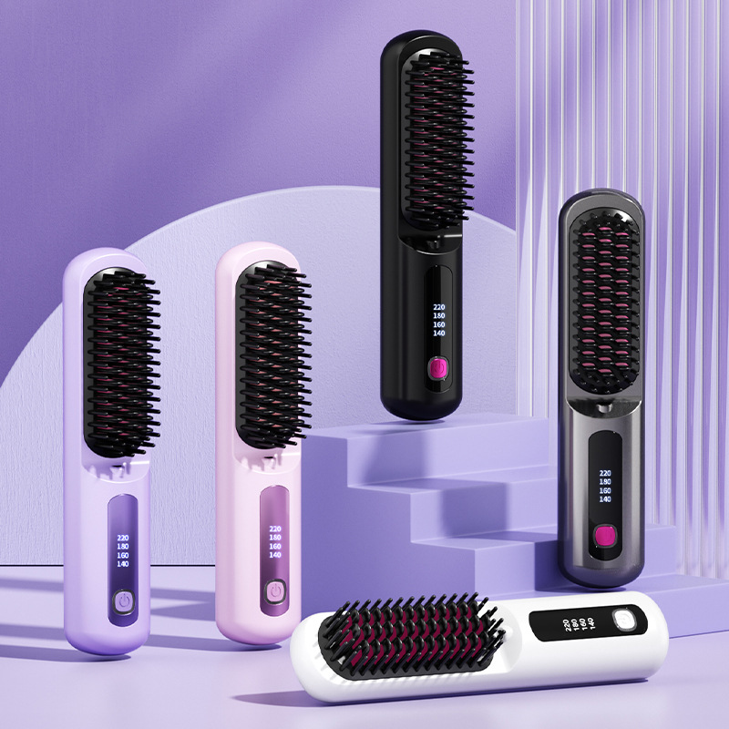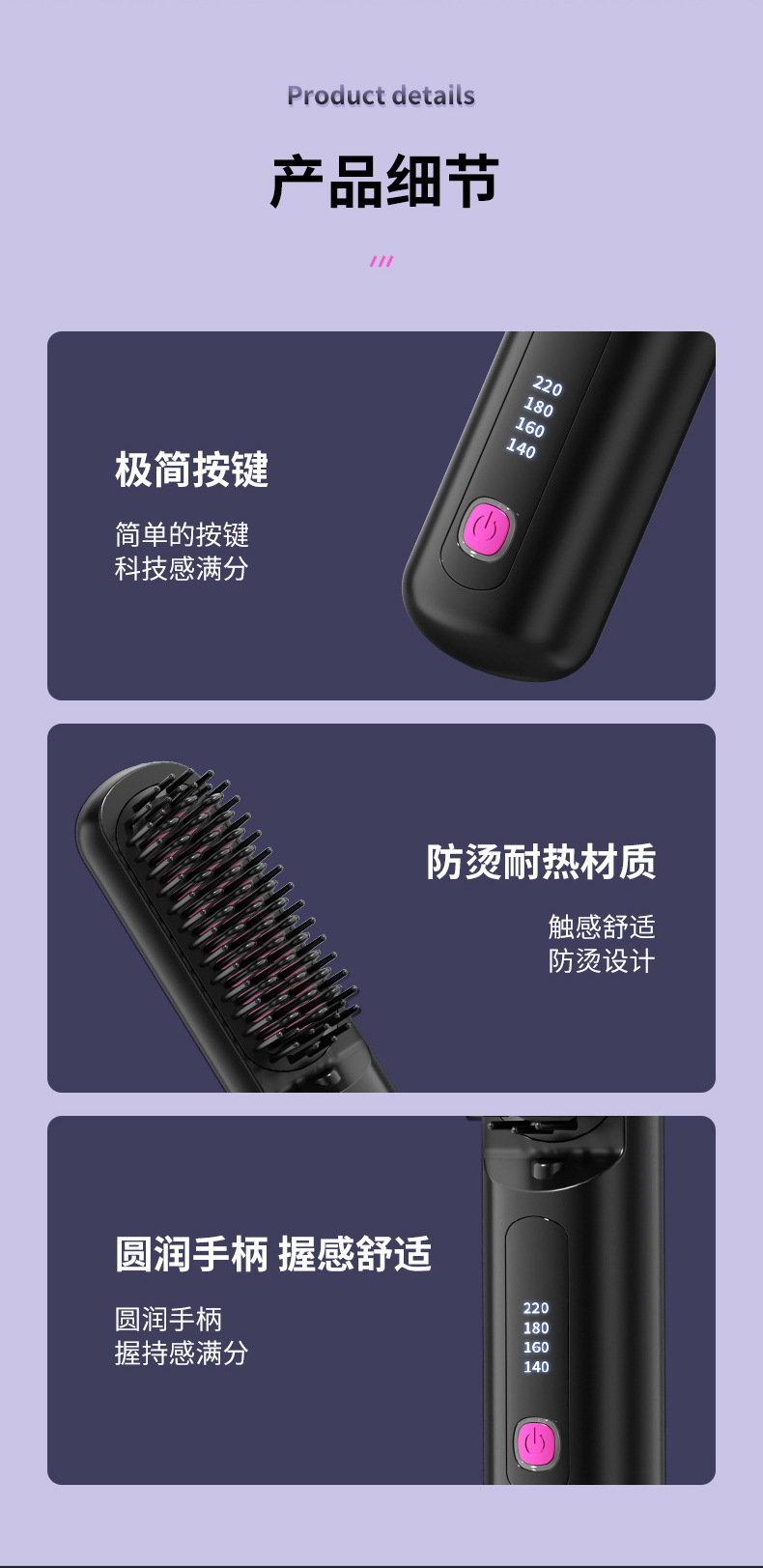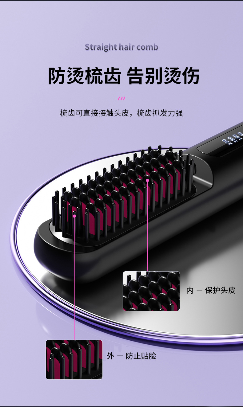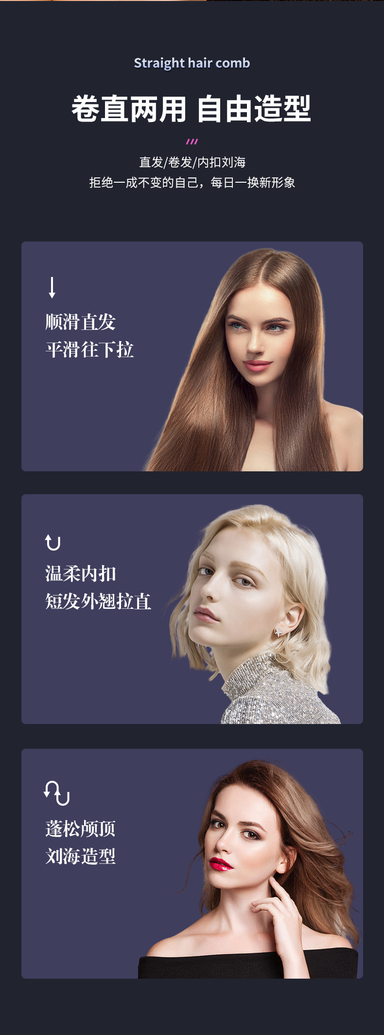 跨境直发梳无线负离子不伤发便携直发梳直卷两用充电款电动无线