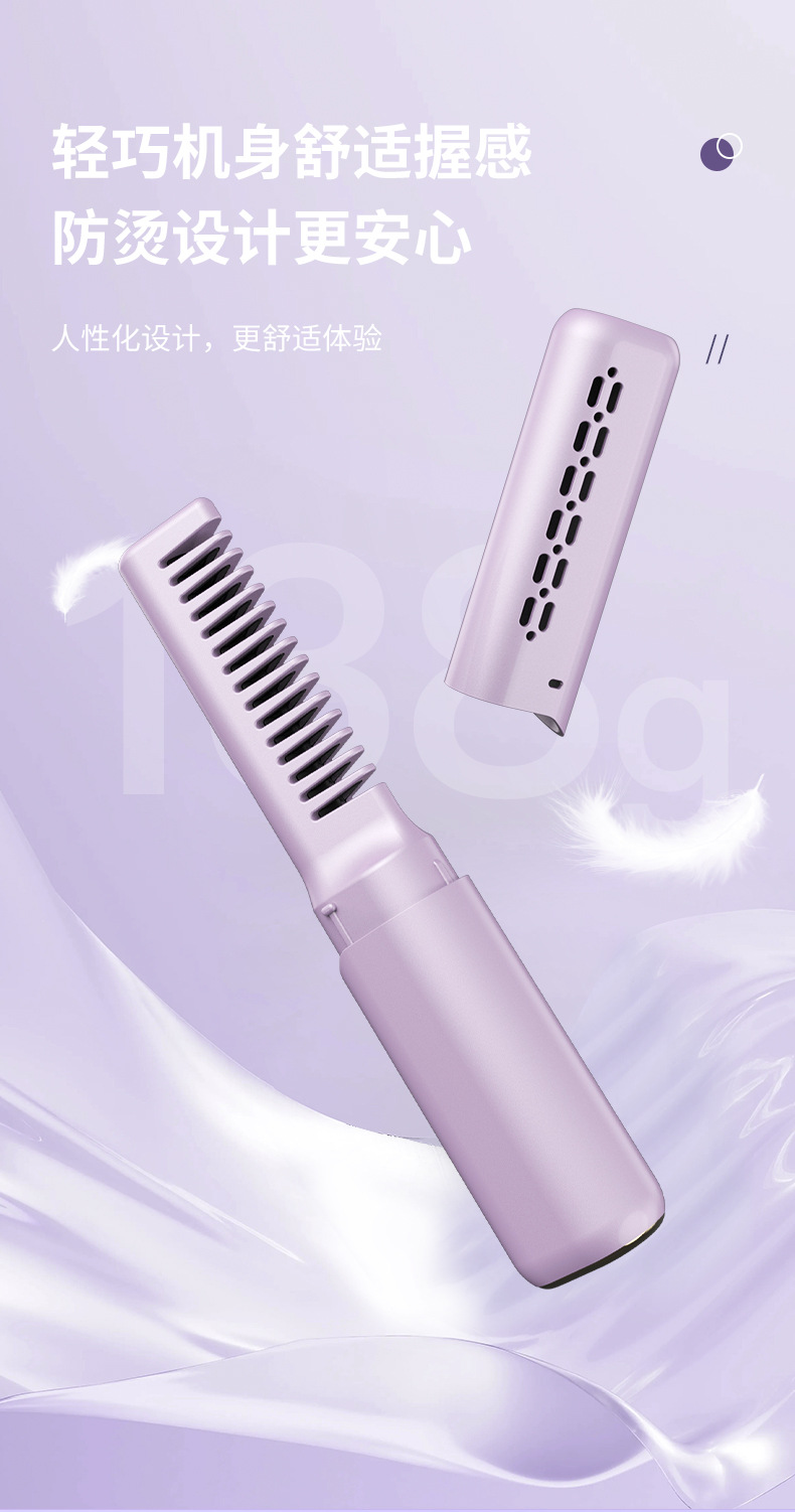 新款液晶迷你直发梳便携无线直发梳卷直两用旅行直发梳