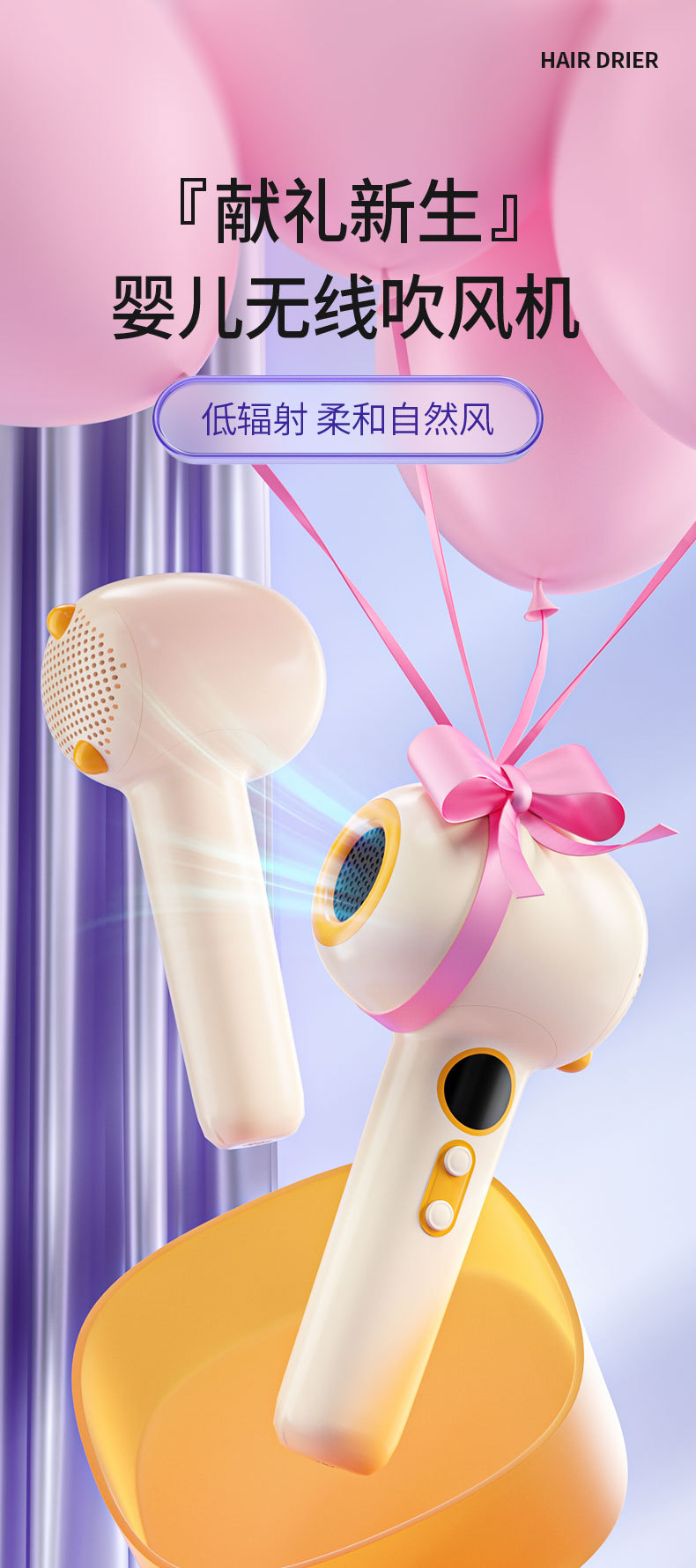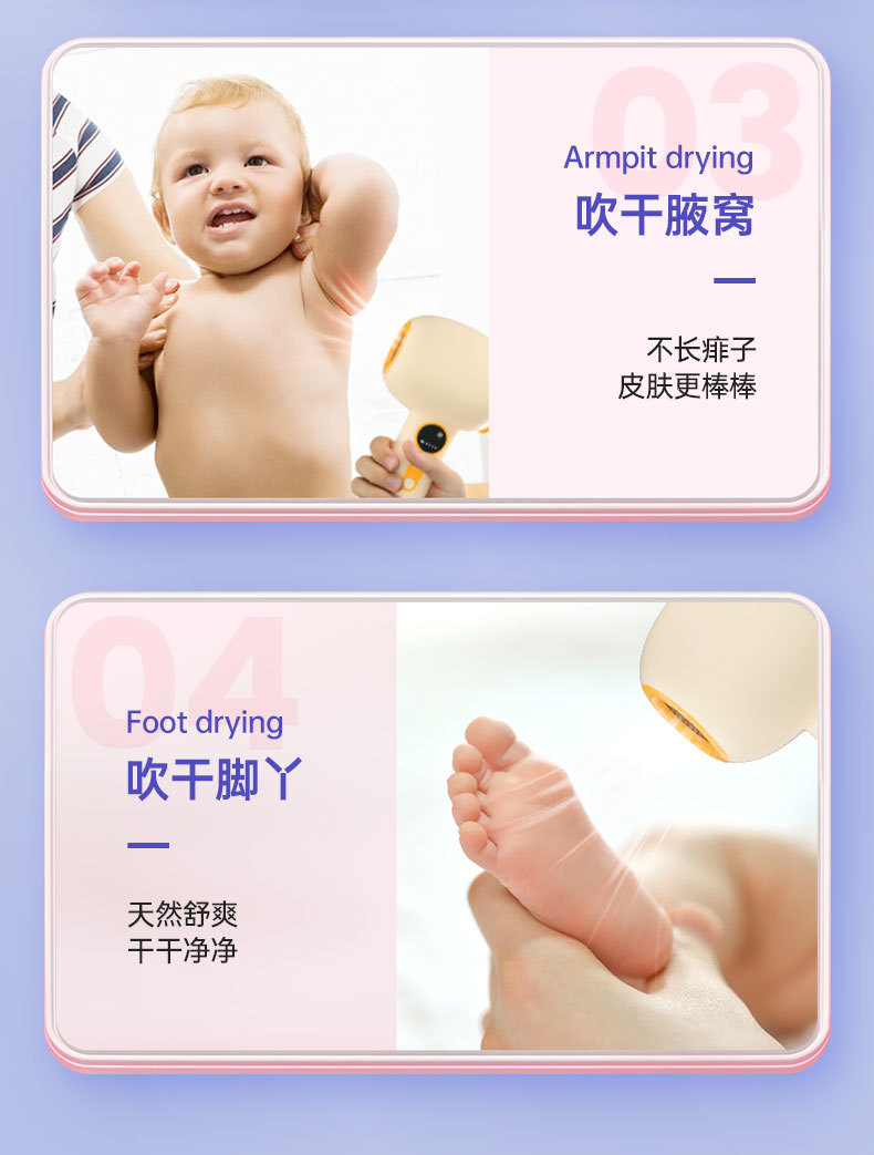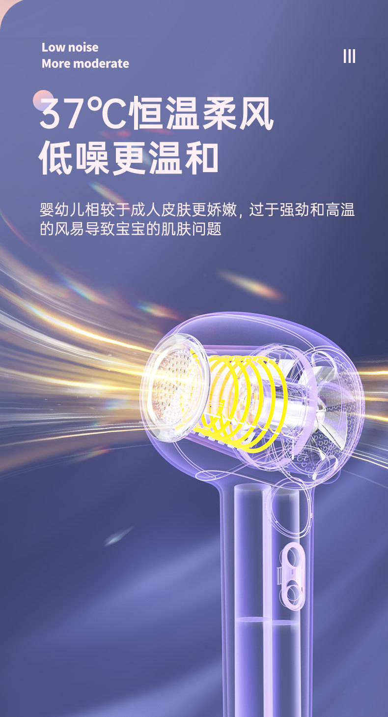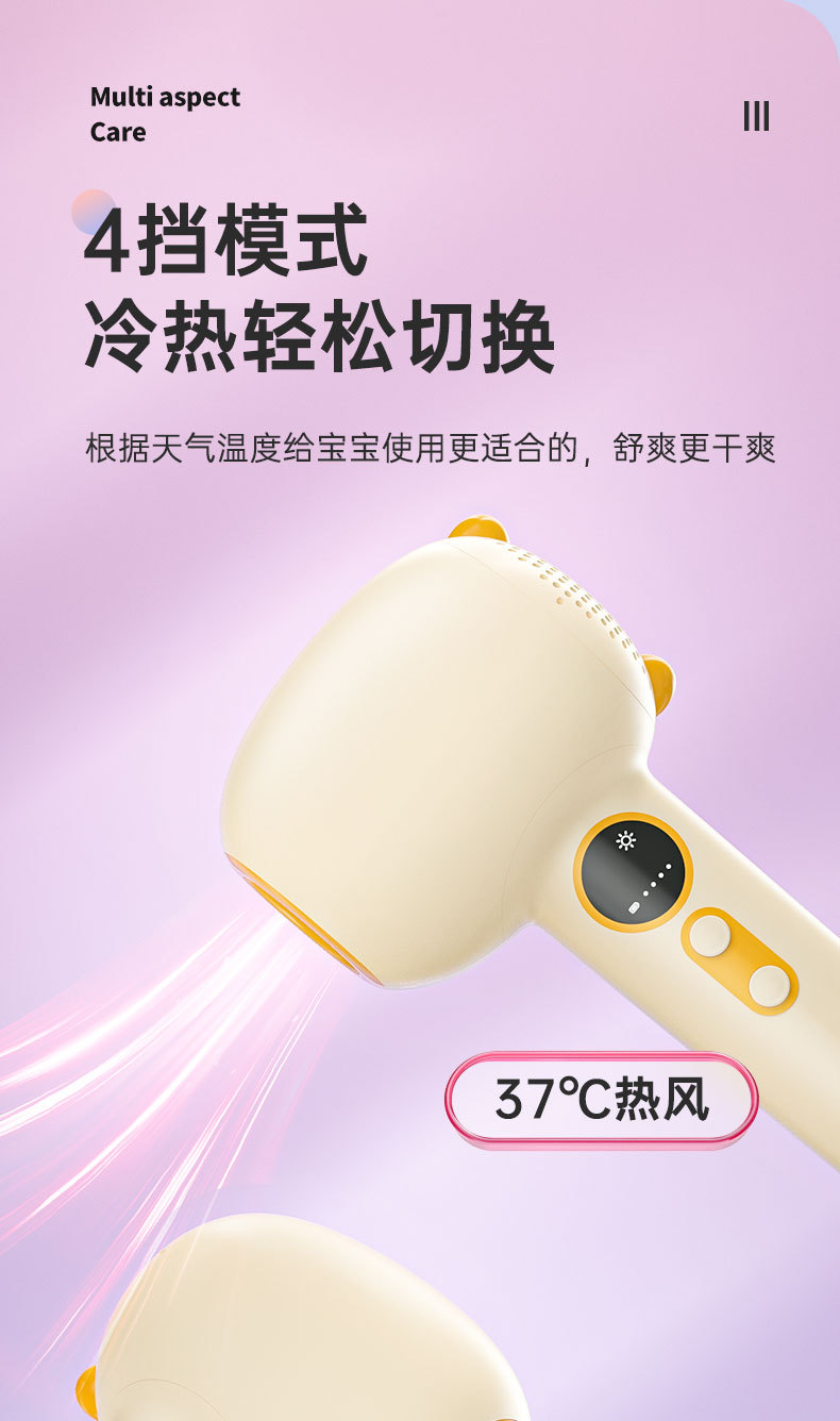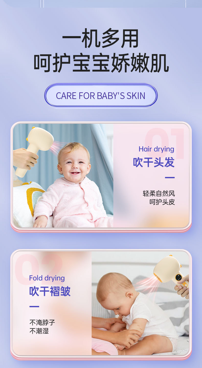 婴儿跨境便携宝宝电动恒温吹屁屁吹头发无线充电款低辐射吹风机