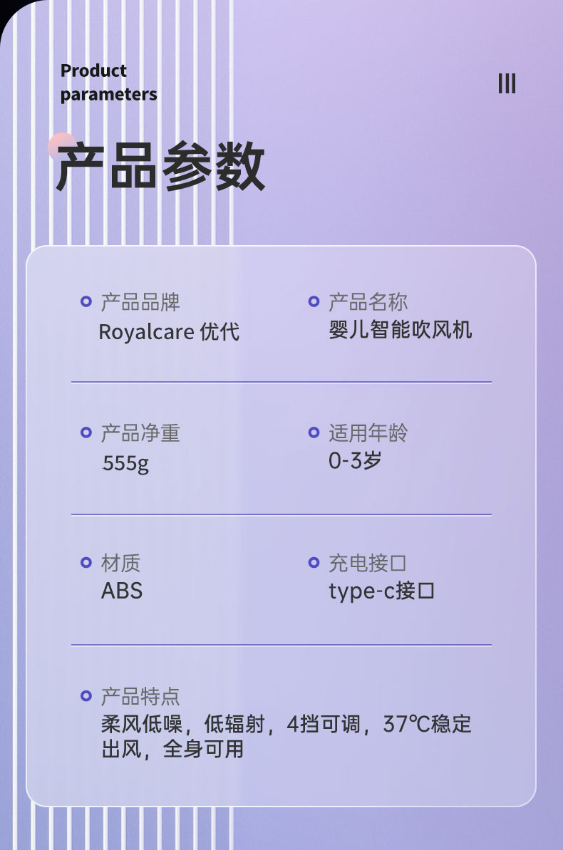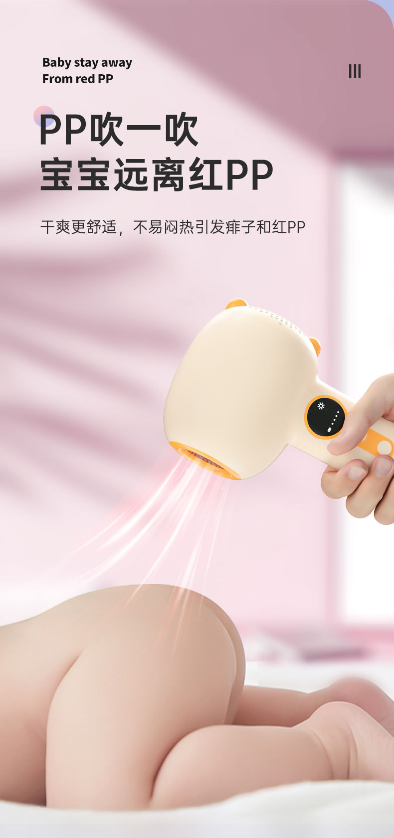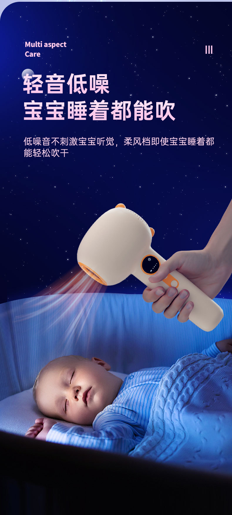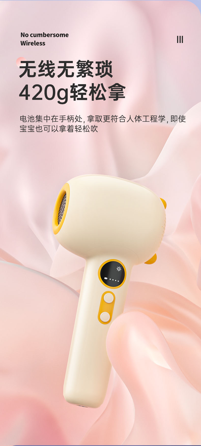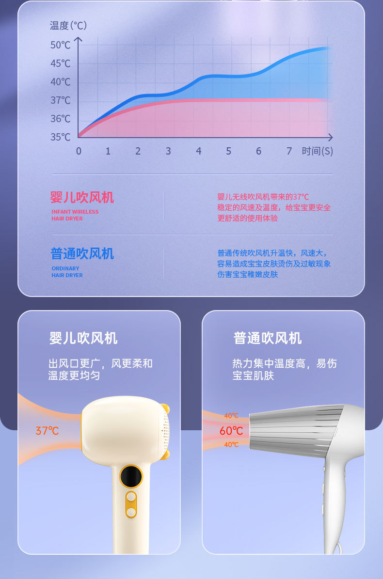 婴儿跨境便携宝宝电动恒温吹屁屁吹头发无线充电款低辐射吹风机