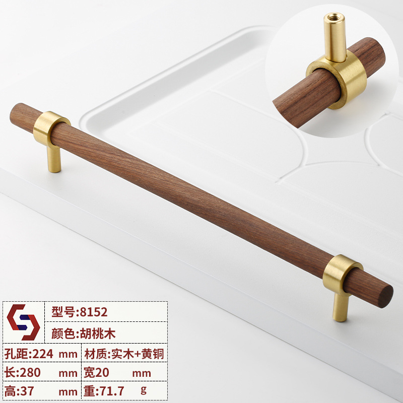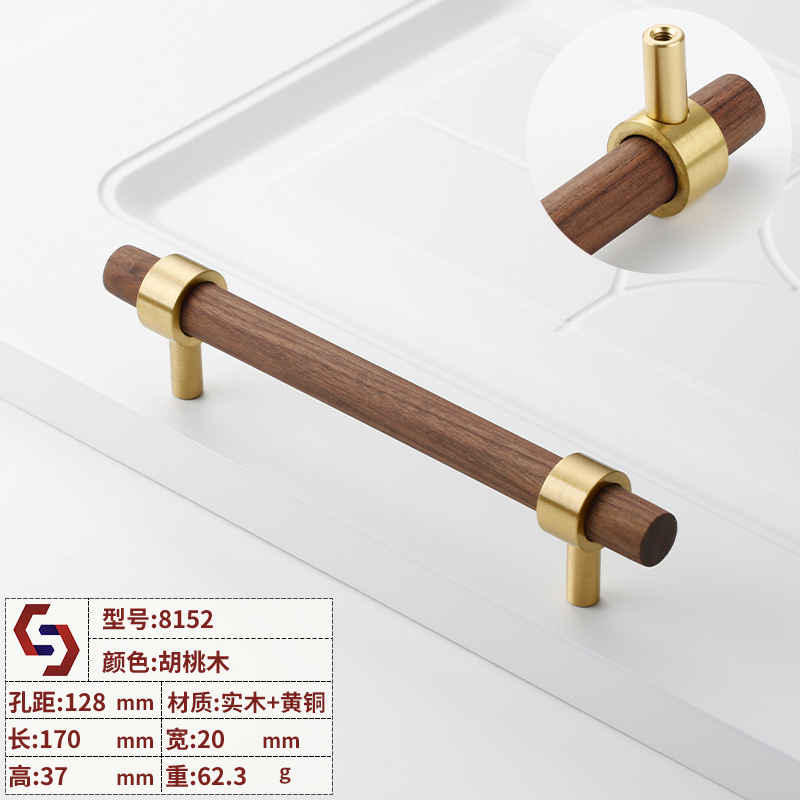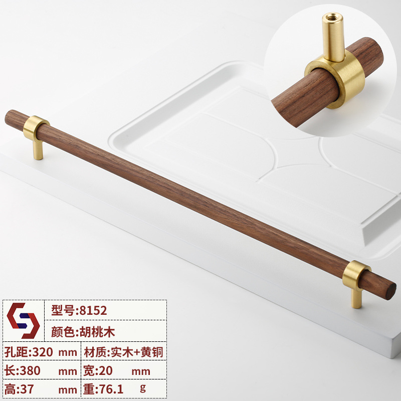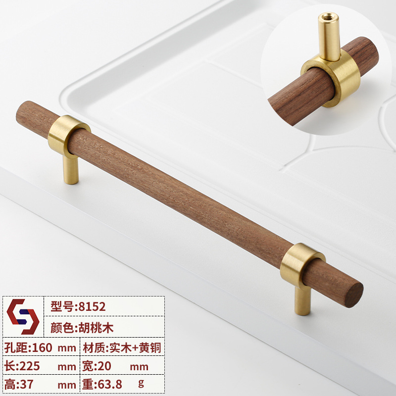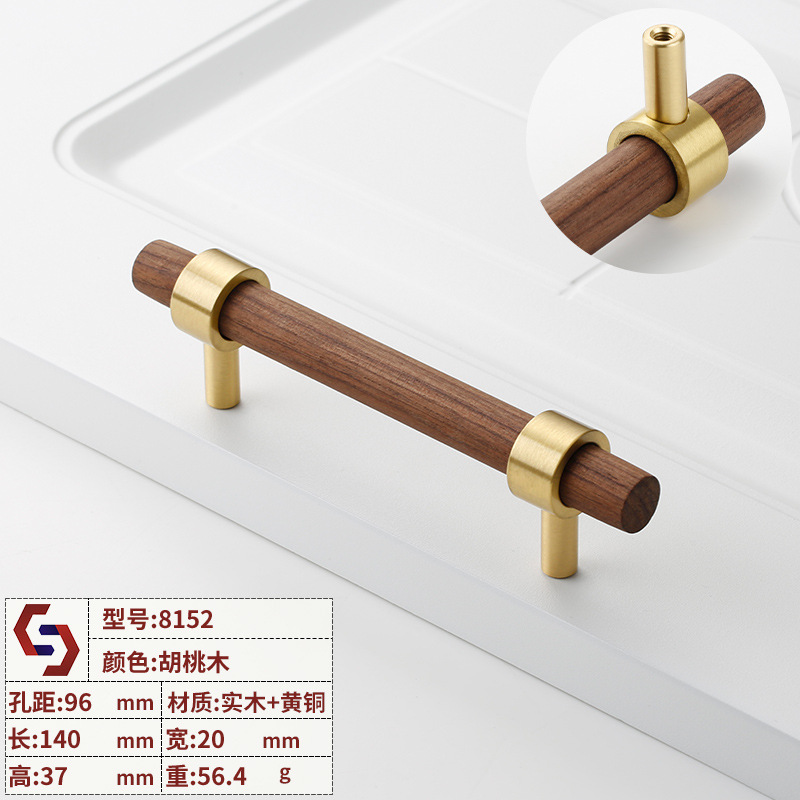 厂家直销新中式实木柜门拉手胡桃木黄铜拉手榉木衣柜抽屉酒柜把手