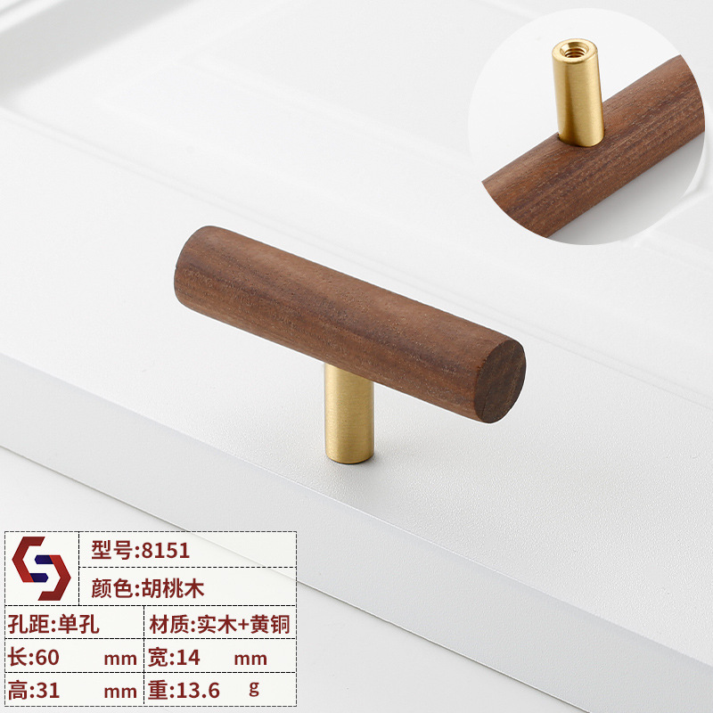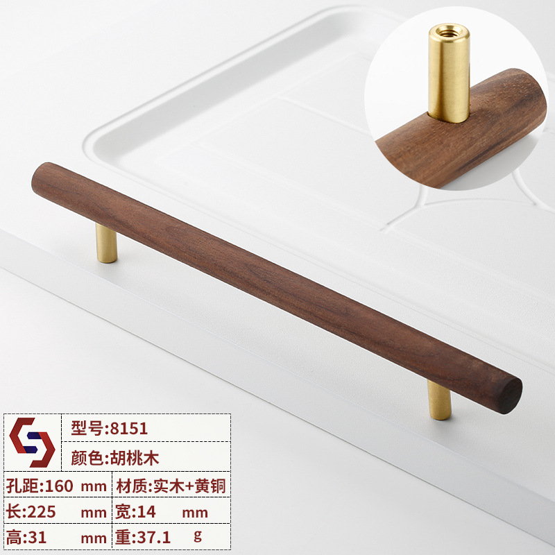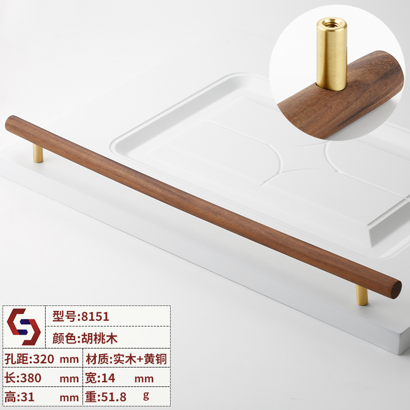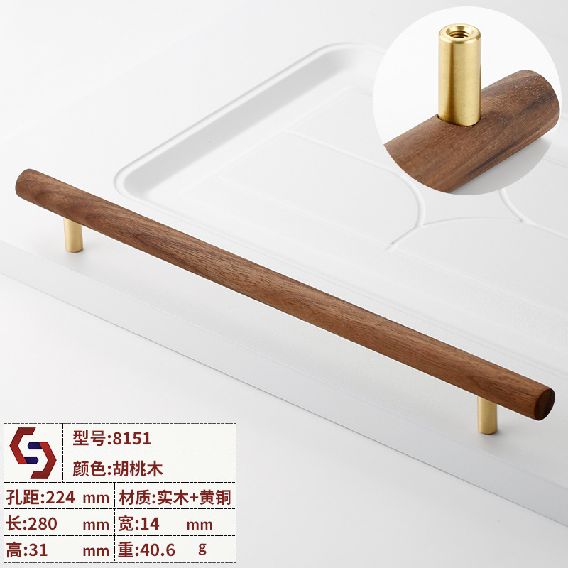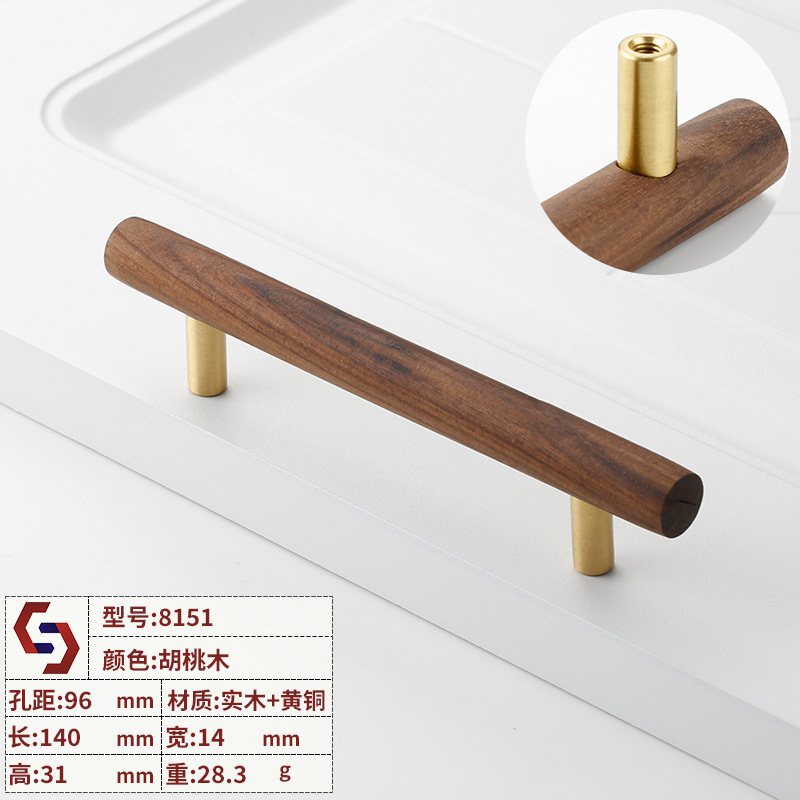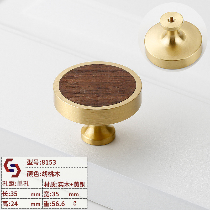 厂家直销新中式实木柜门拉手胡桃木黄铜拉手榉木衣柜抽屉酒柜把手