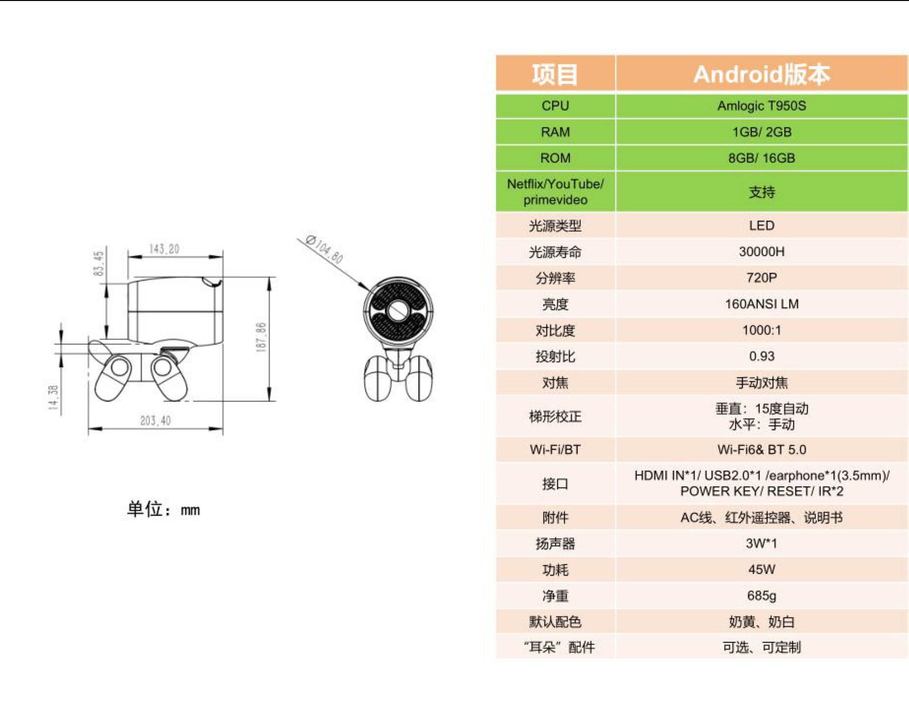 JY320 LI跨境新款私模外贸爆款高清投影仪投影机wifi6 安卓智能款