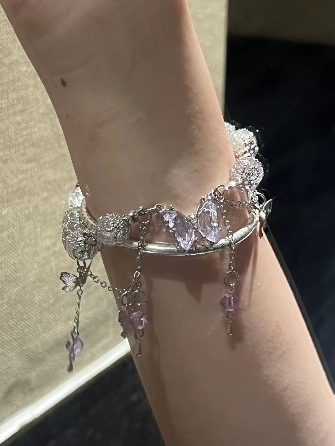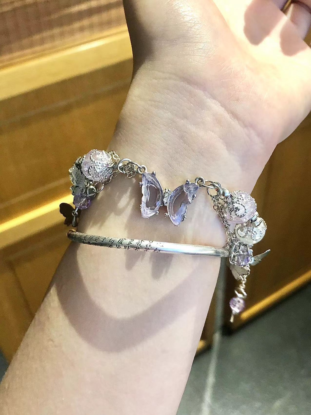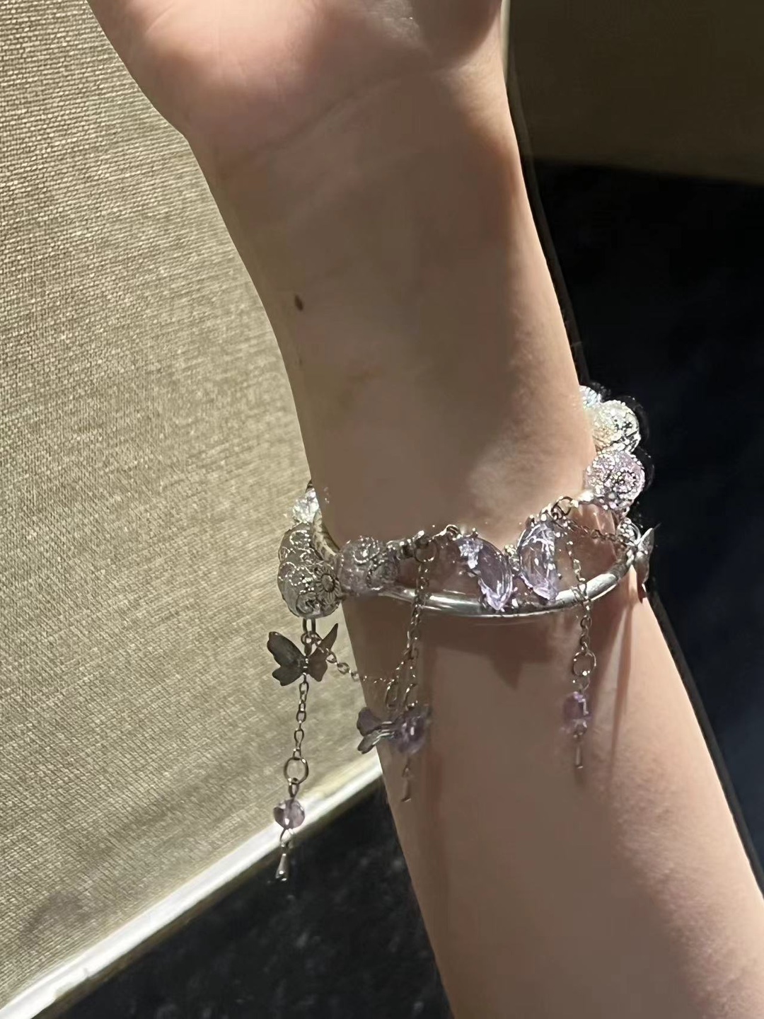 仙气飘飘紫色蝴蝶碎珠手链复古链条设计小众手饰学生饰品闺蜜礼物