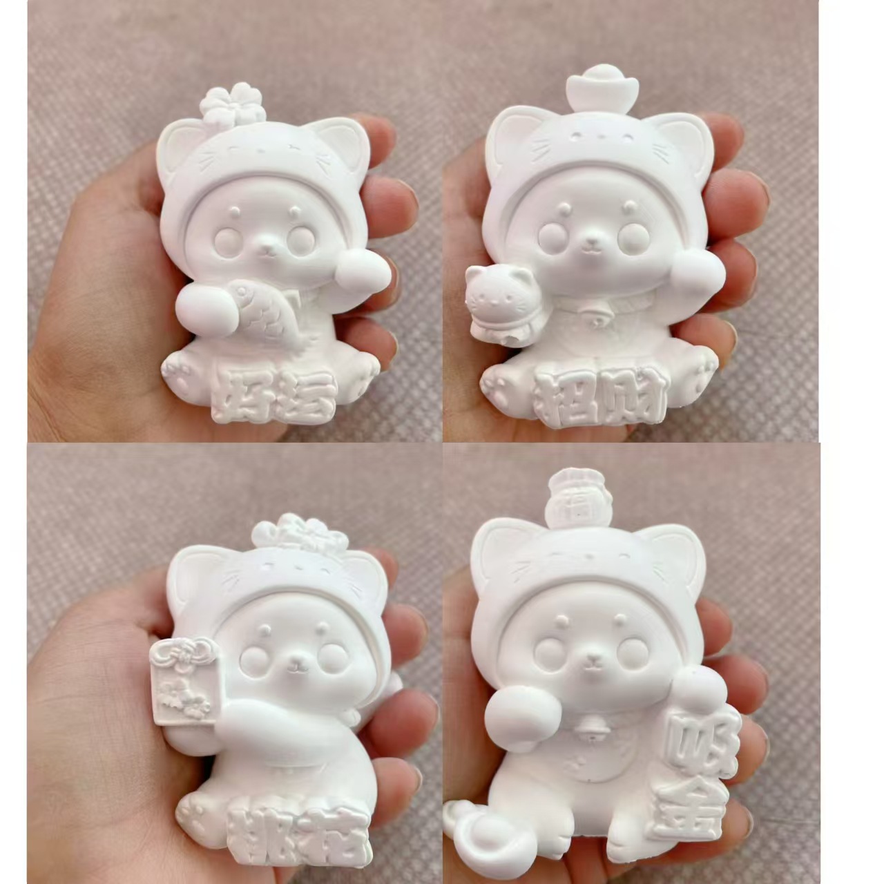 工厂直发迷你彩绘石膏娃娃白胚批发手工DIY涂色彩绘3D立体背包熊