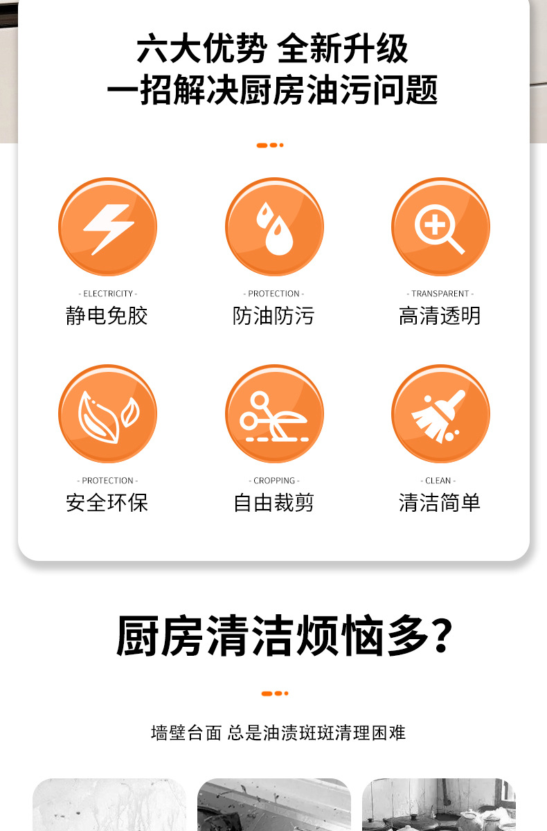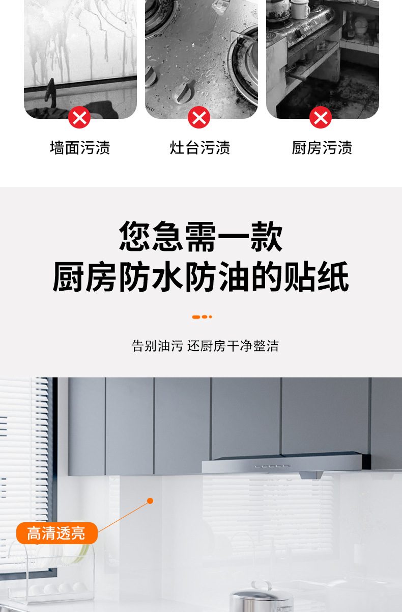 透明厨房防油贴纸耐高温灶台贴膜防水防霉墙面保护膜壁纸墙纸自粘