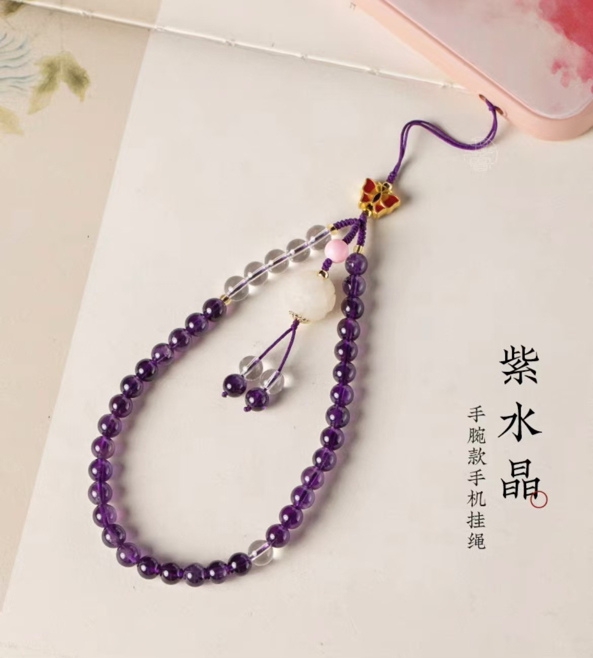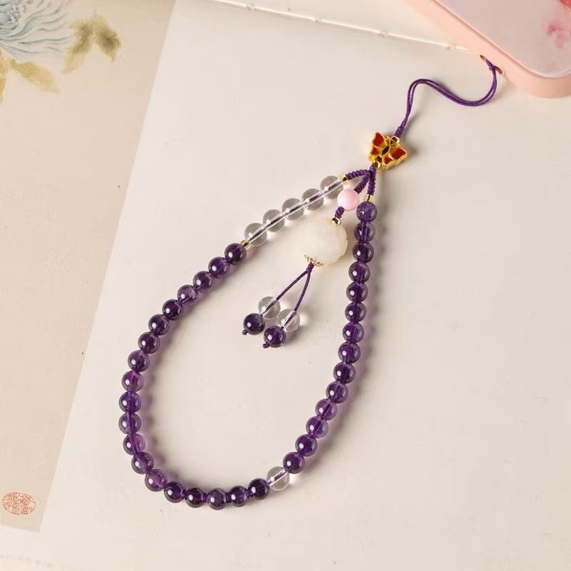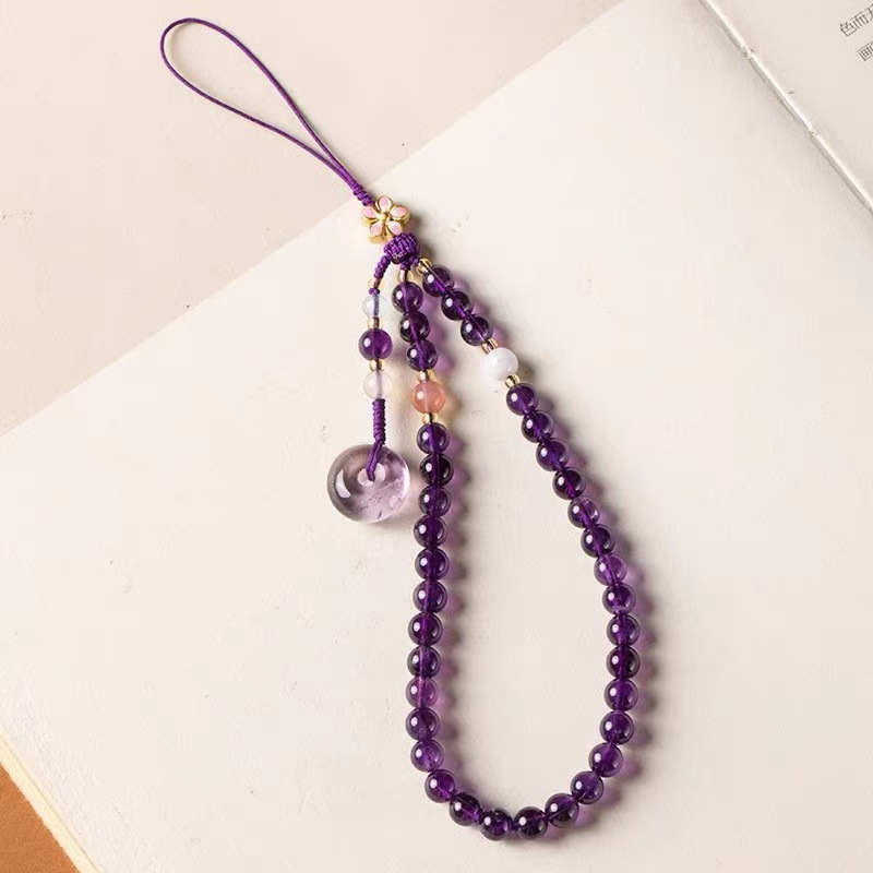 天然紫水晶手机链挂绳挂件手腕款女平安扣挂链挂饰紫水晶手机壳