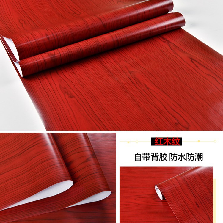 防水PVC木纹家具翻新贴纸自粘墙纸衣柜橱柜子桌子门装饰波音软片
