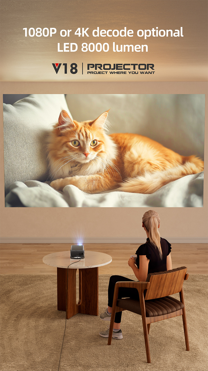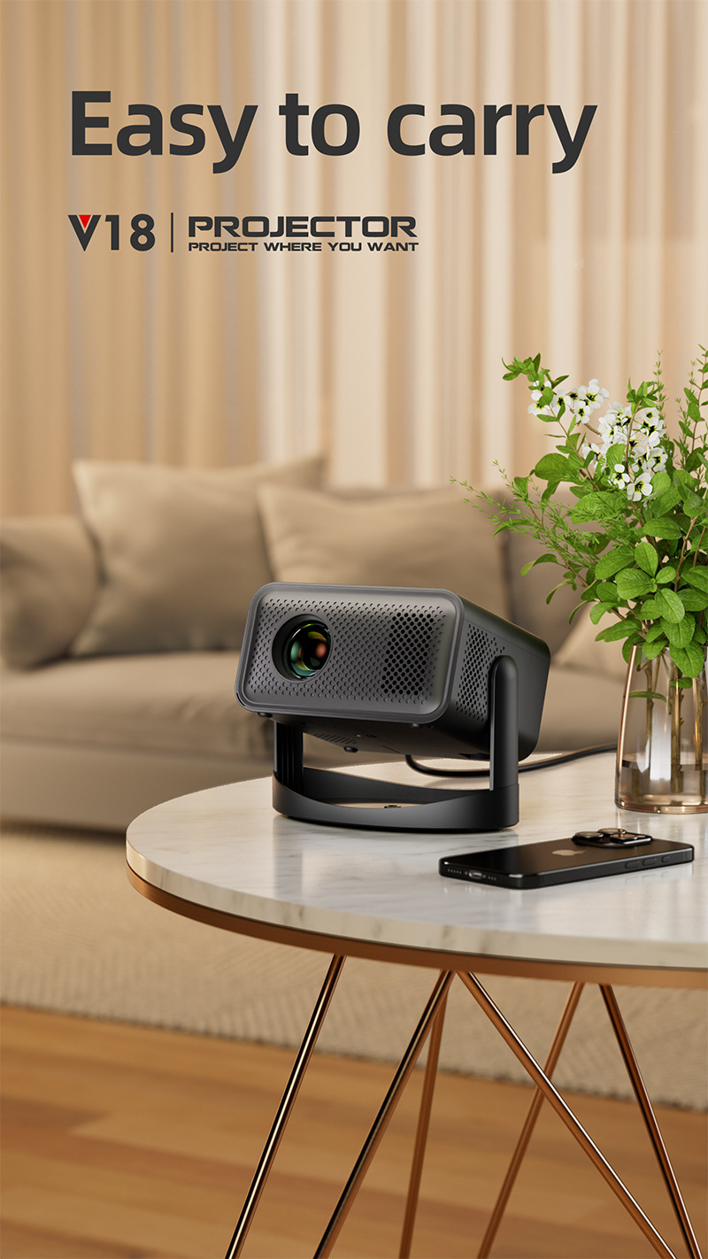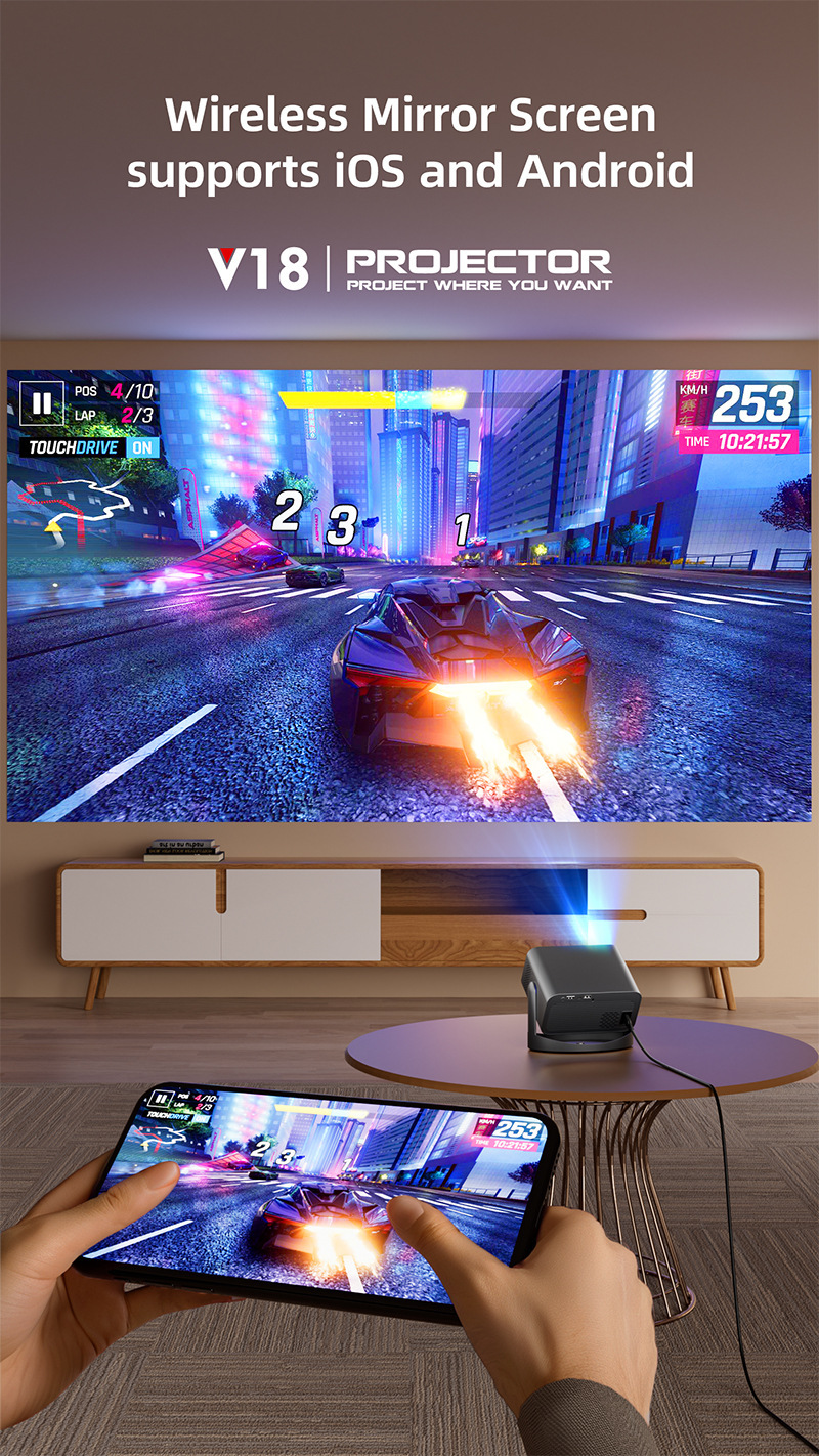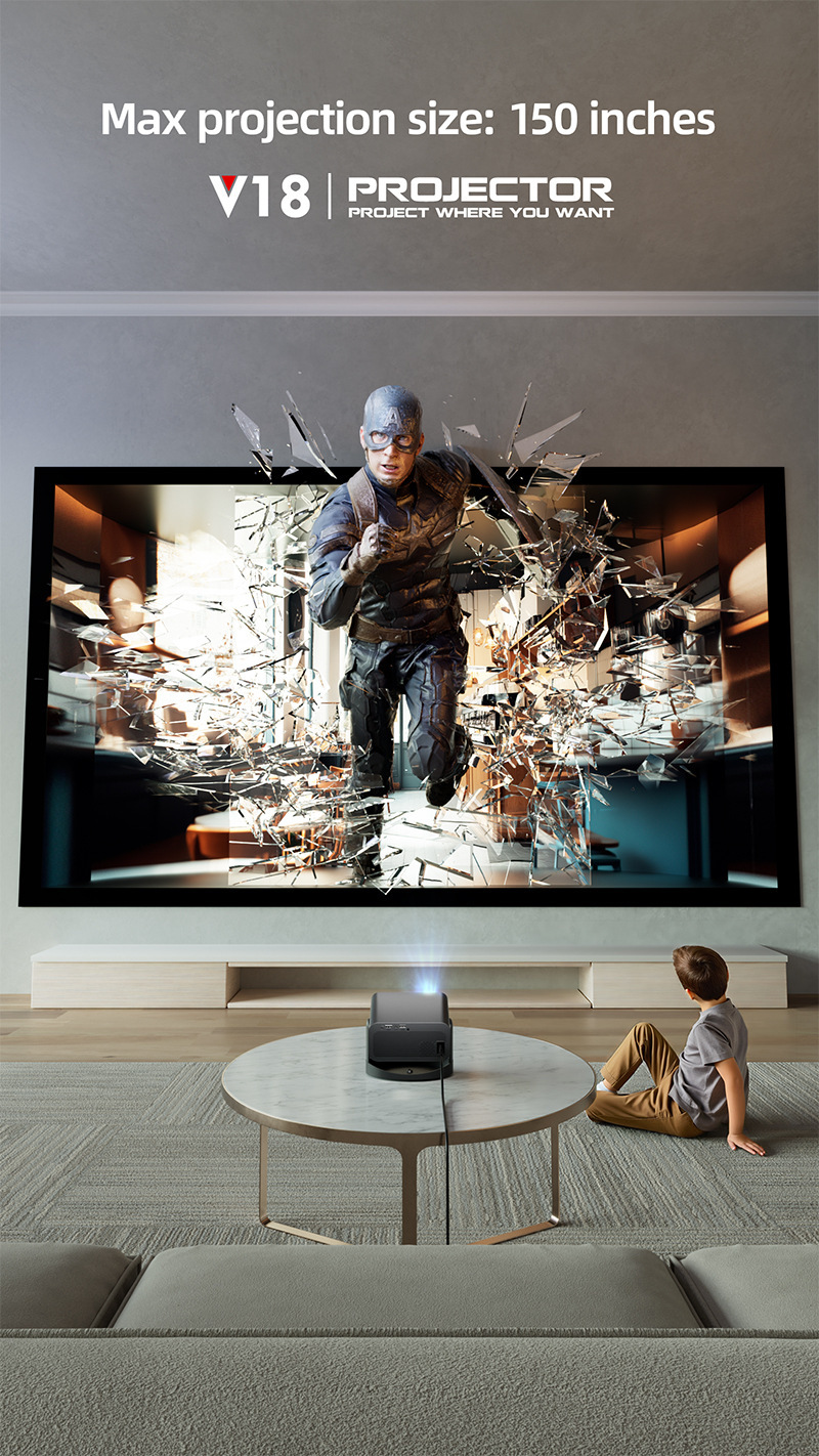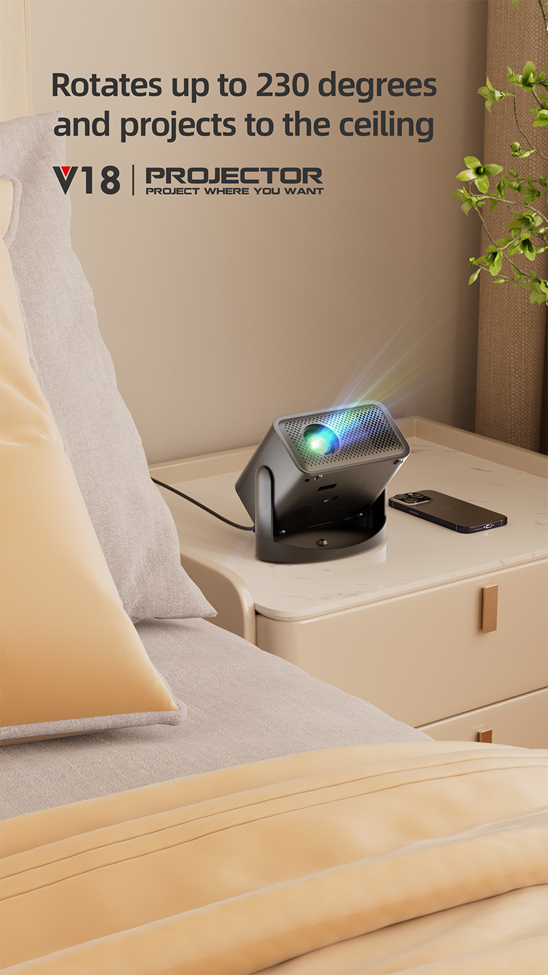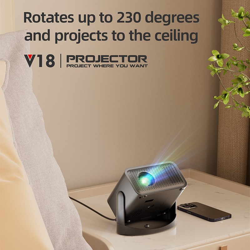 V18 跨境新款高清投影仪4k手机无线同屏智能家用投影仪projector