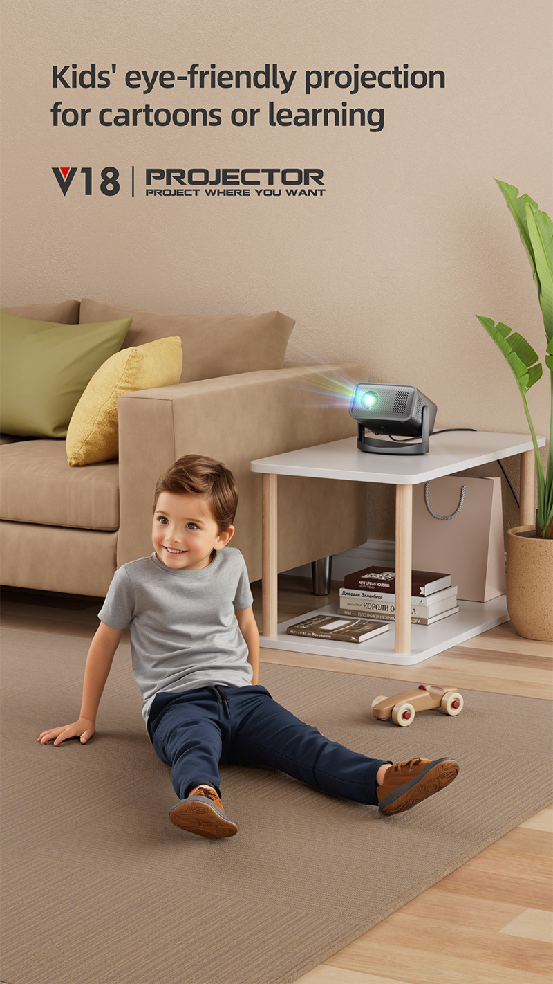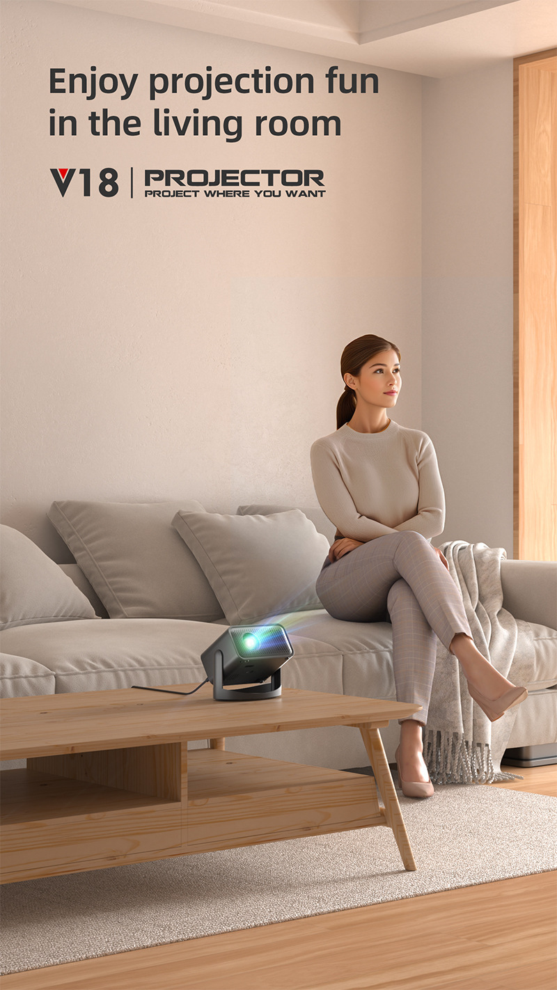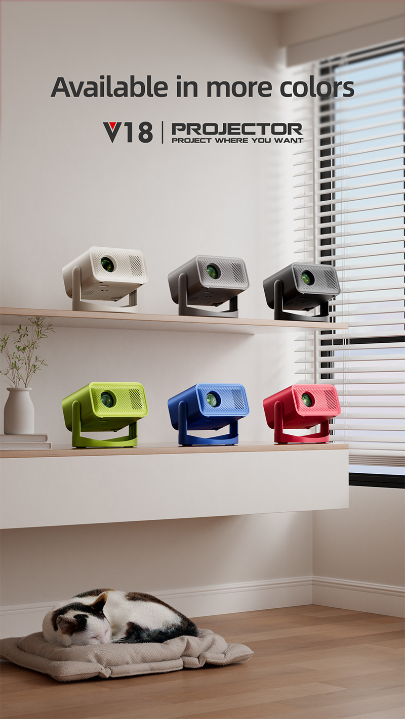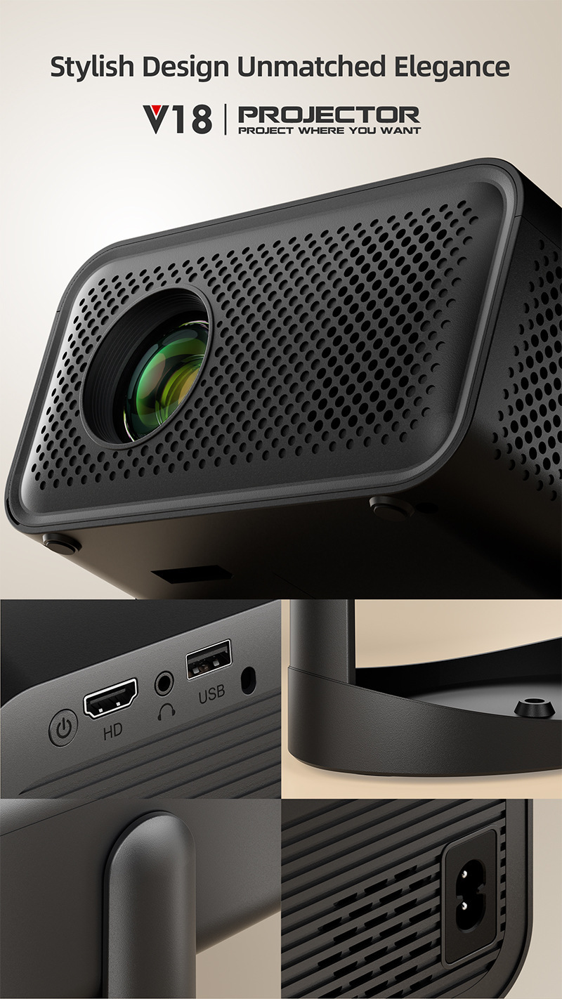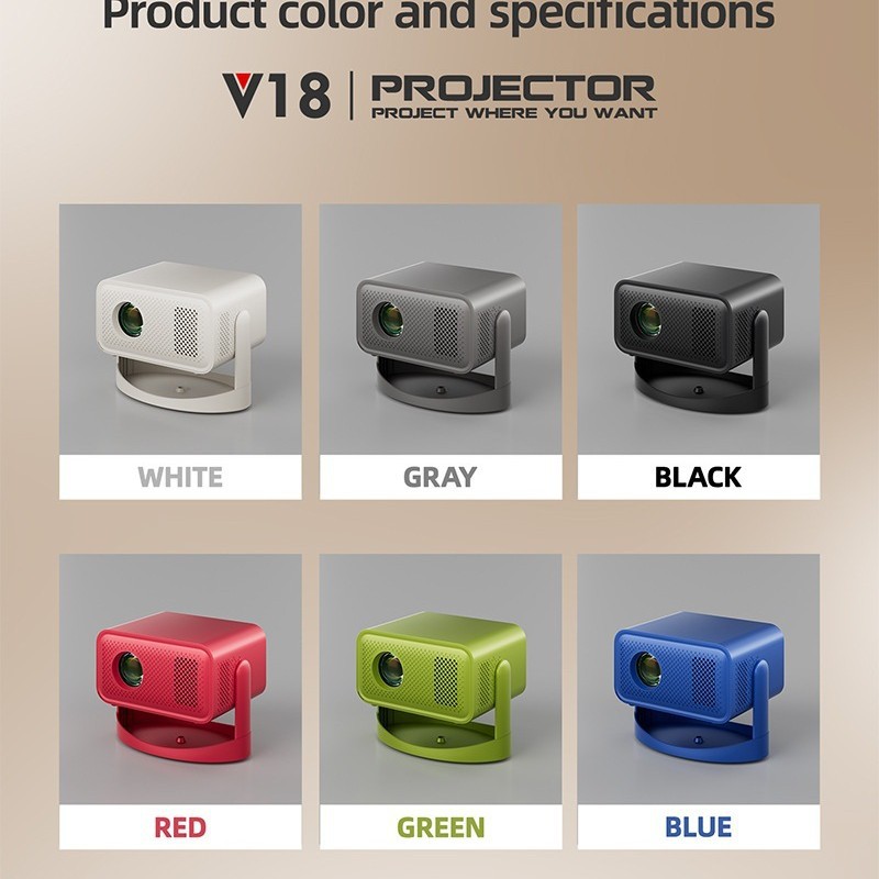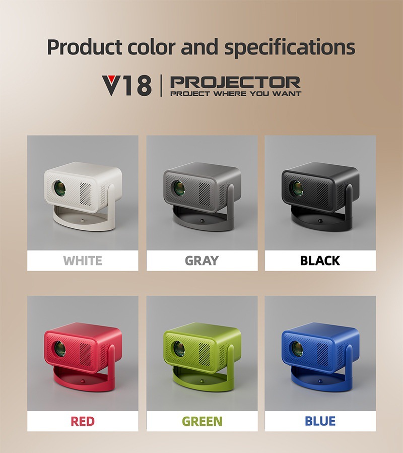 V18 跨境新款高清投影仪4k手机无线同屏智能家用投影仪projector