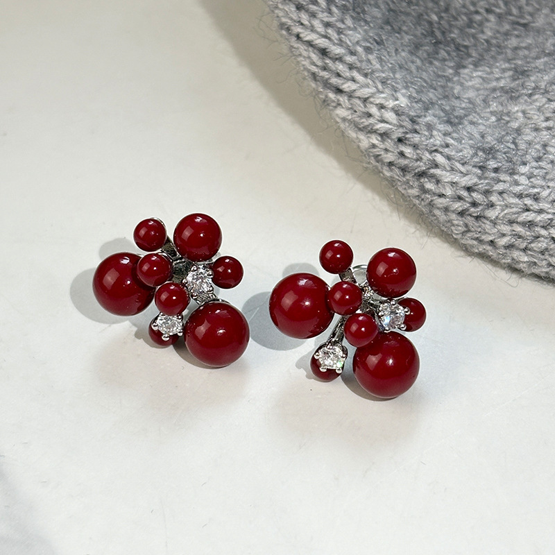 小众百搭气质设计感烟花珍珠耳环耳饰S925纯银针超闪精致锆石耳钉