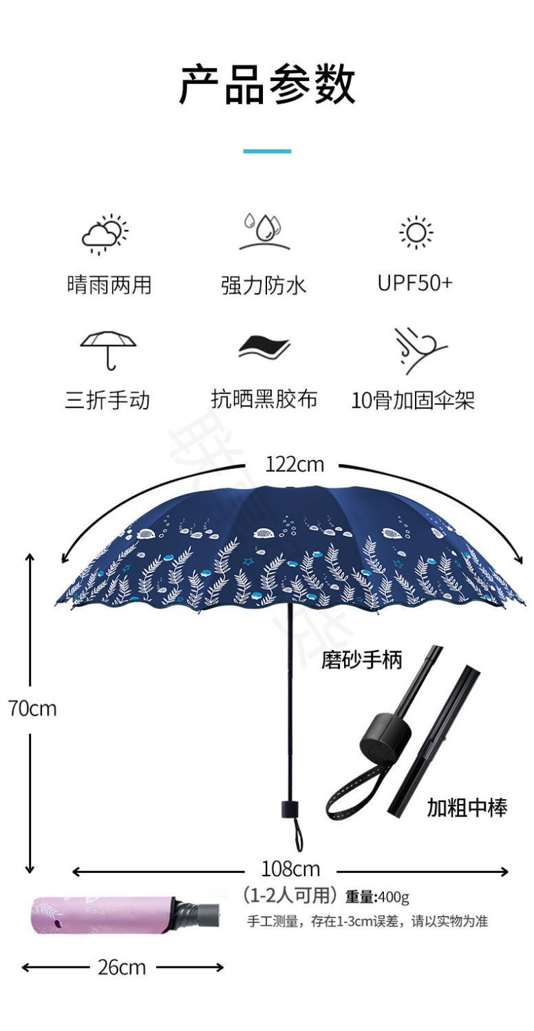 雨伞大号双人伞加固折叠伞结实耐用女黑胶防晒遮阳伞晴雨两用学生