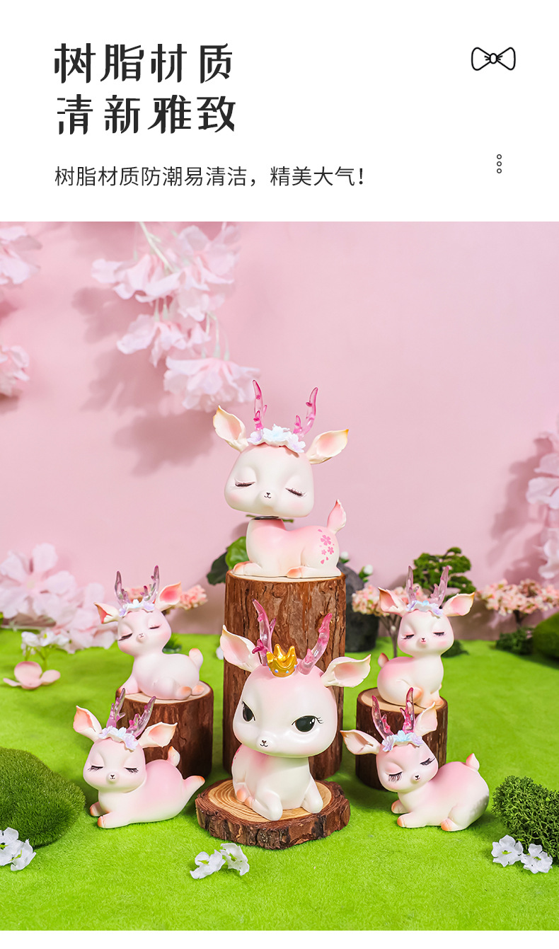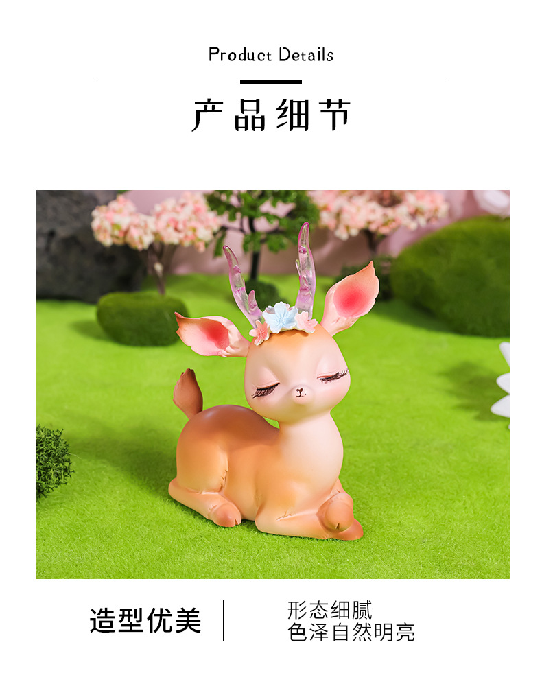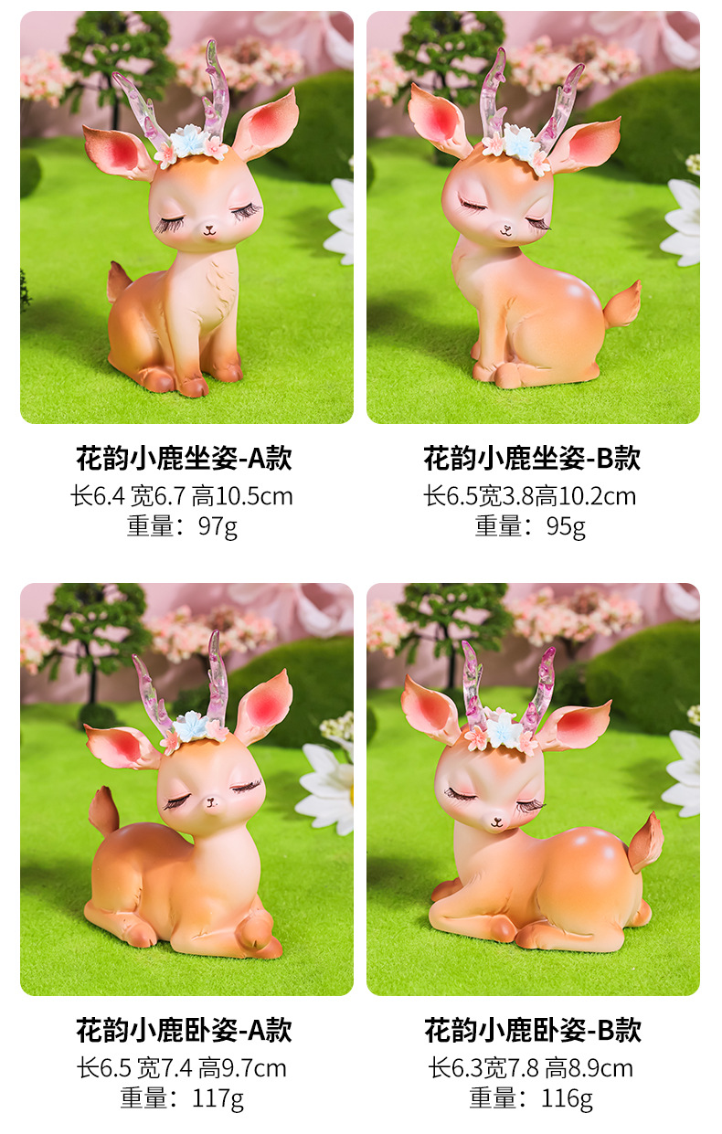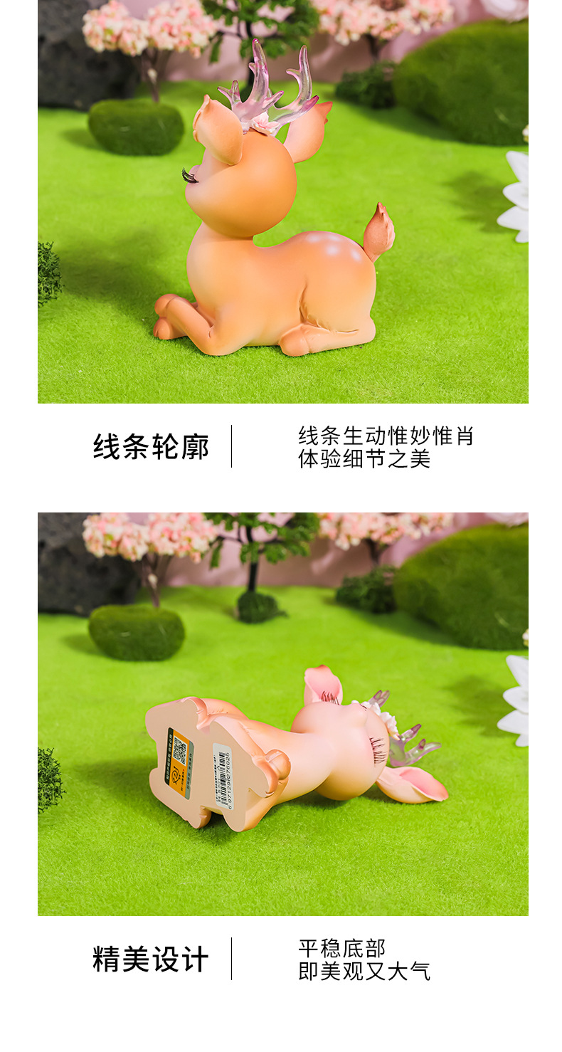 花韵小鹿可爱树脂鹿摆件平安鹿创意家居摆件树脂工艺品汽车摆件鹿