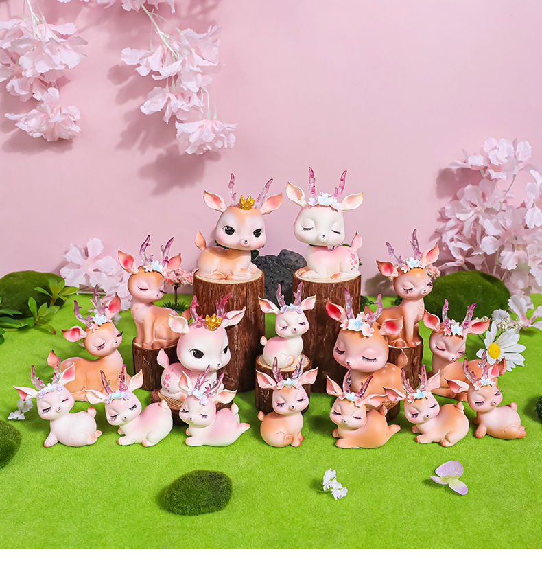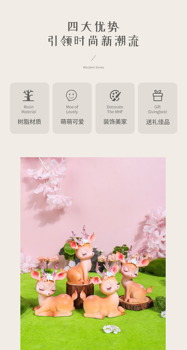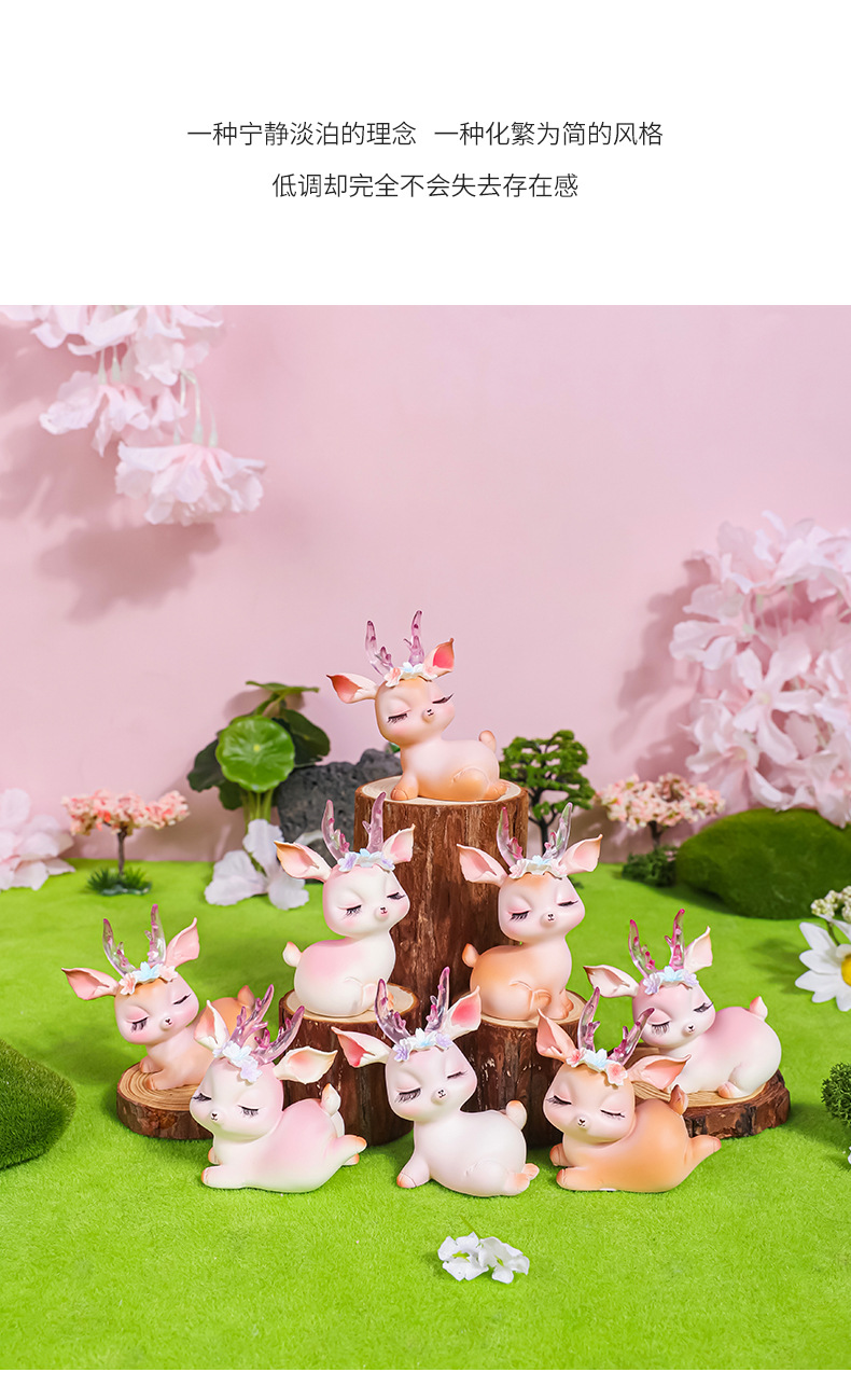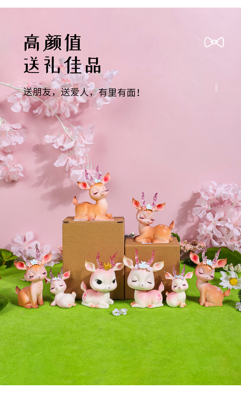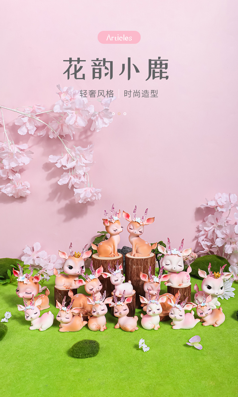 花韵小鹿可爱树脂鹿摆件平安鹿创意家居摆件树脂工艺品汽车摆件鹿