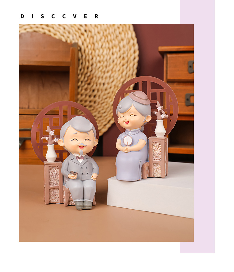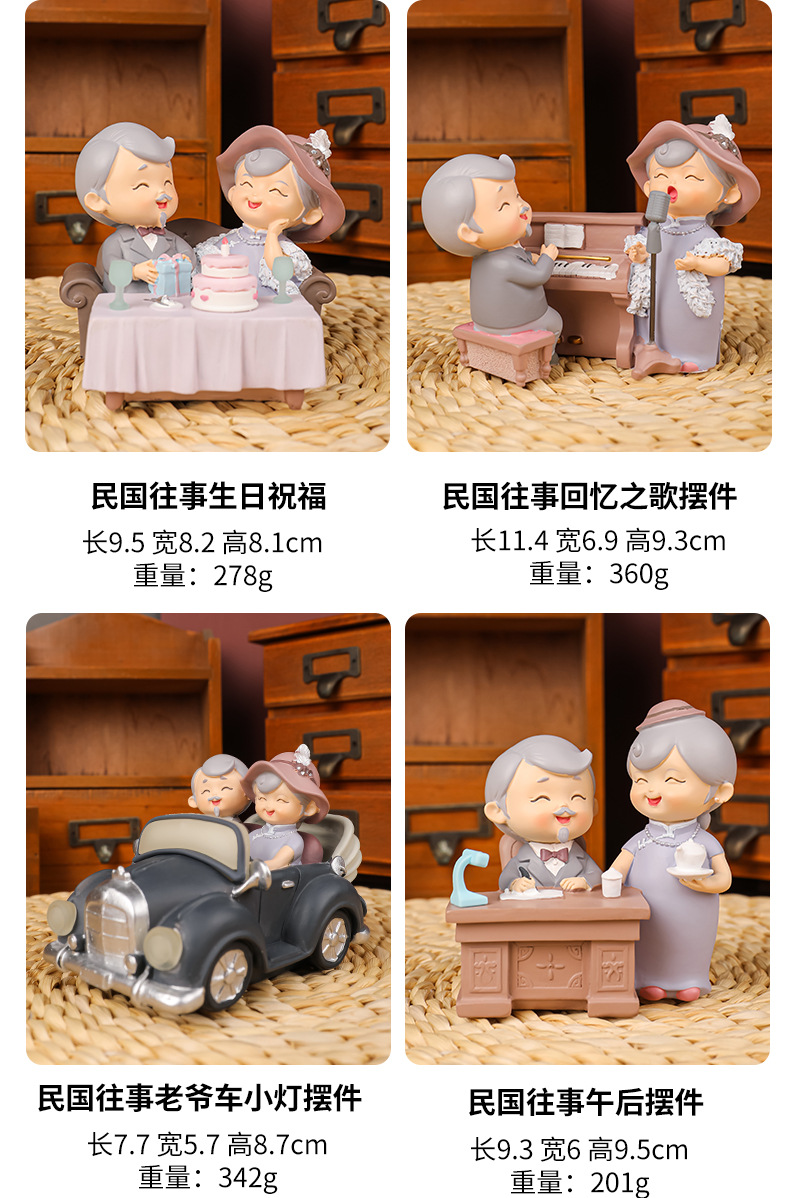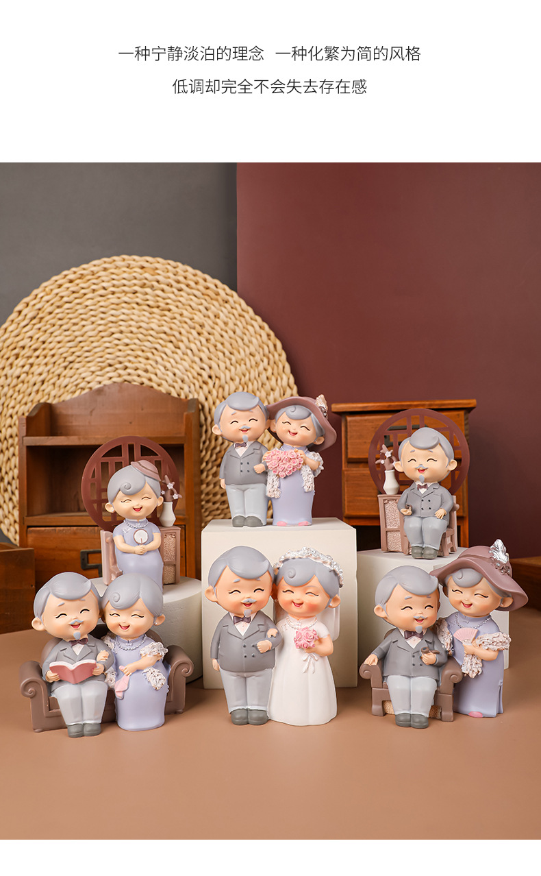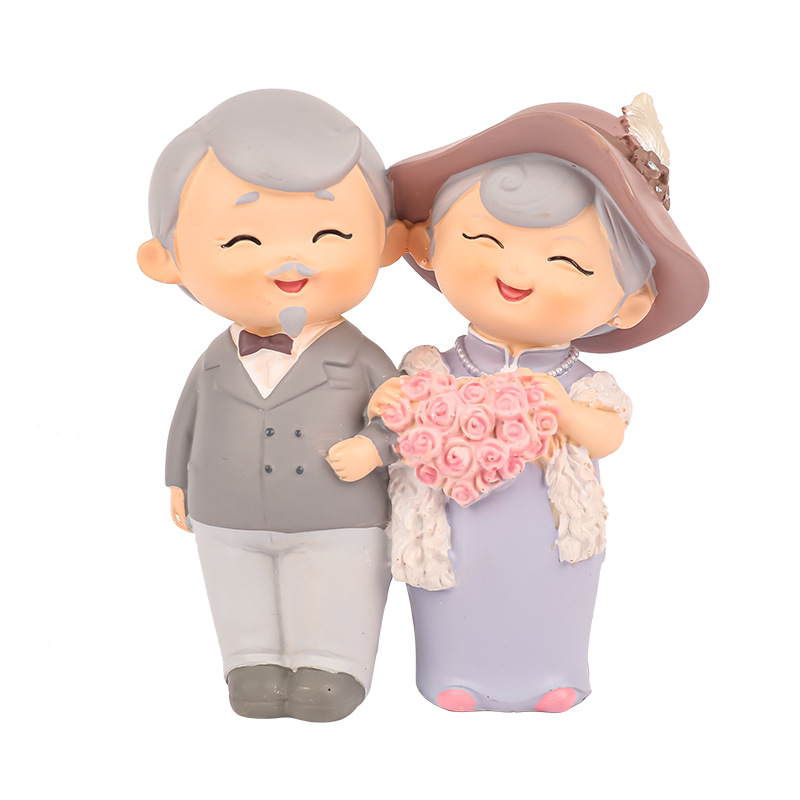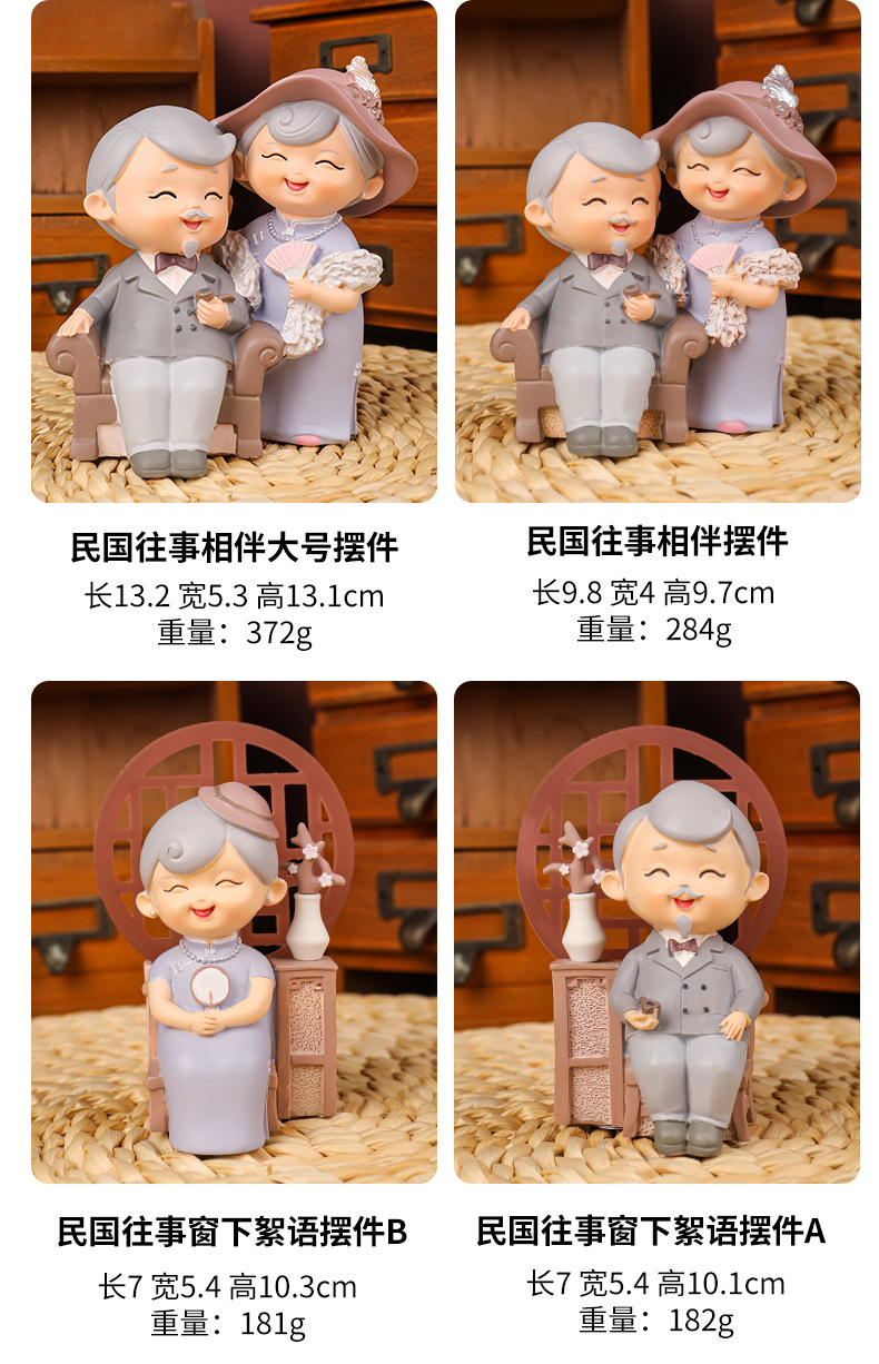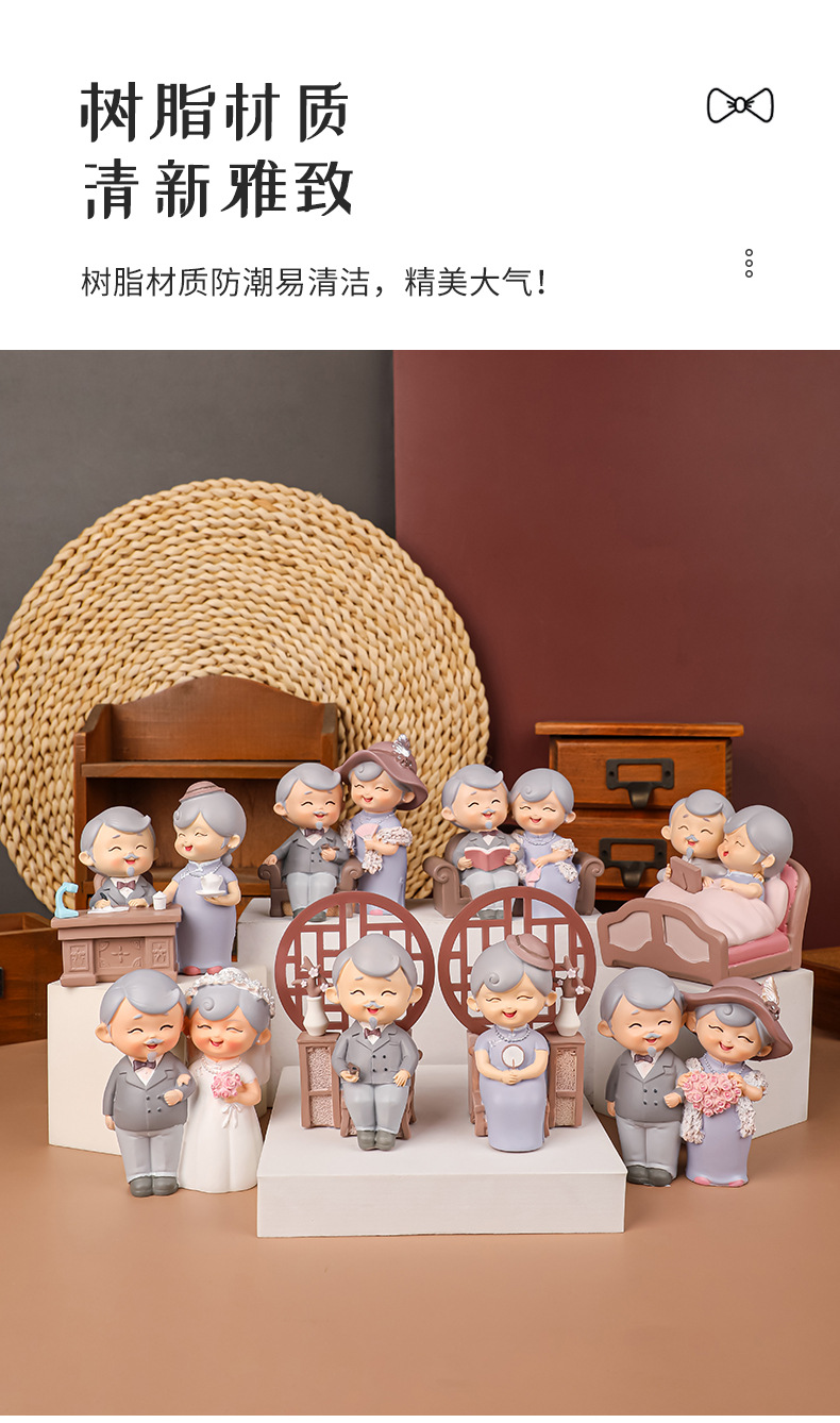 民国往事创意可爱老头老太烘焙蛋糕摆件桌面装饰品摆件送老人礼物