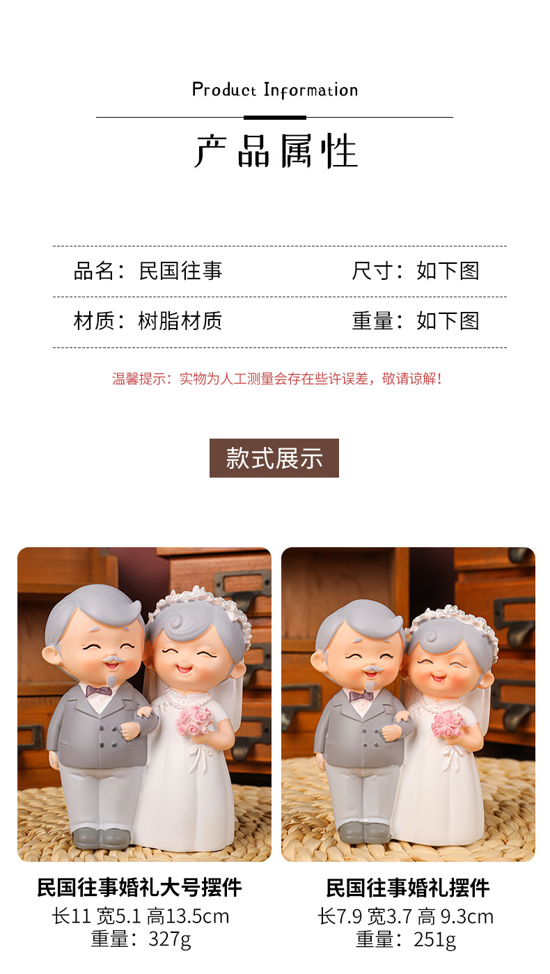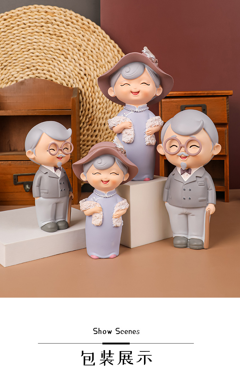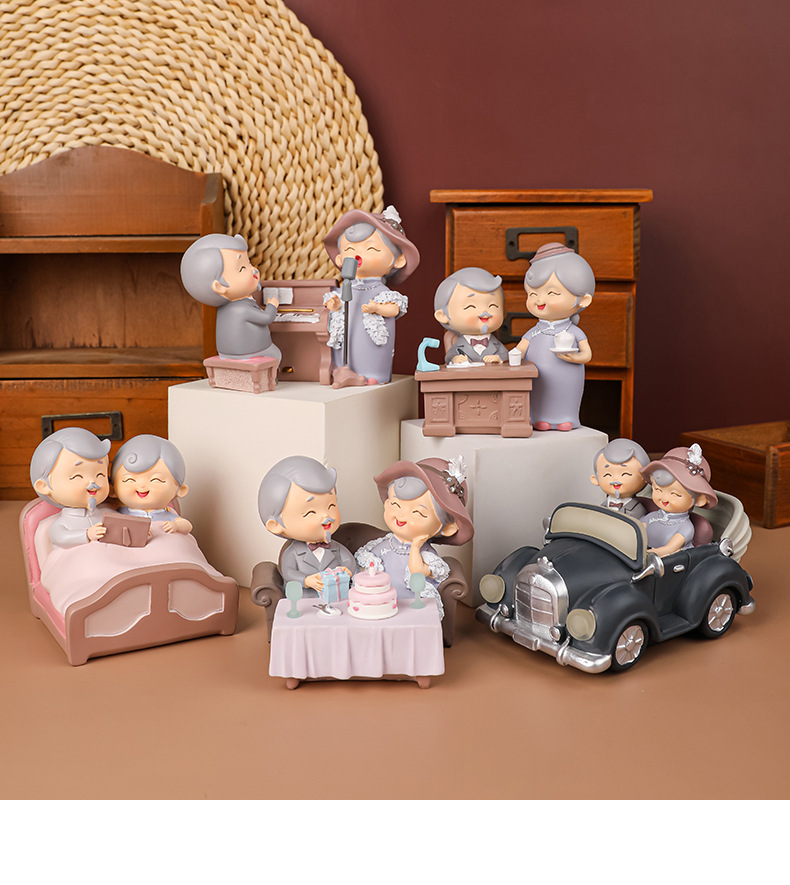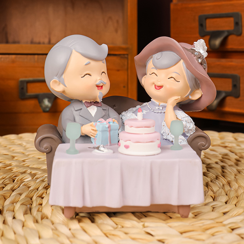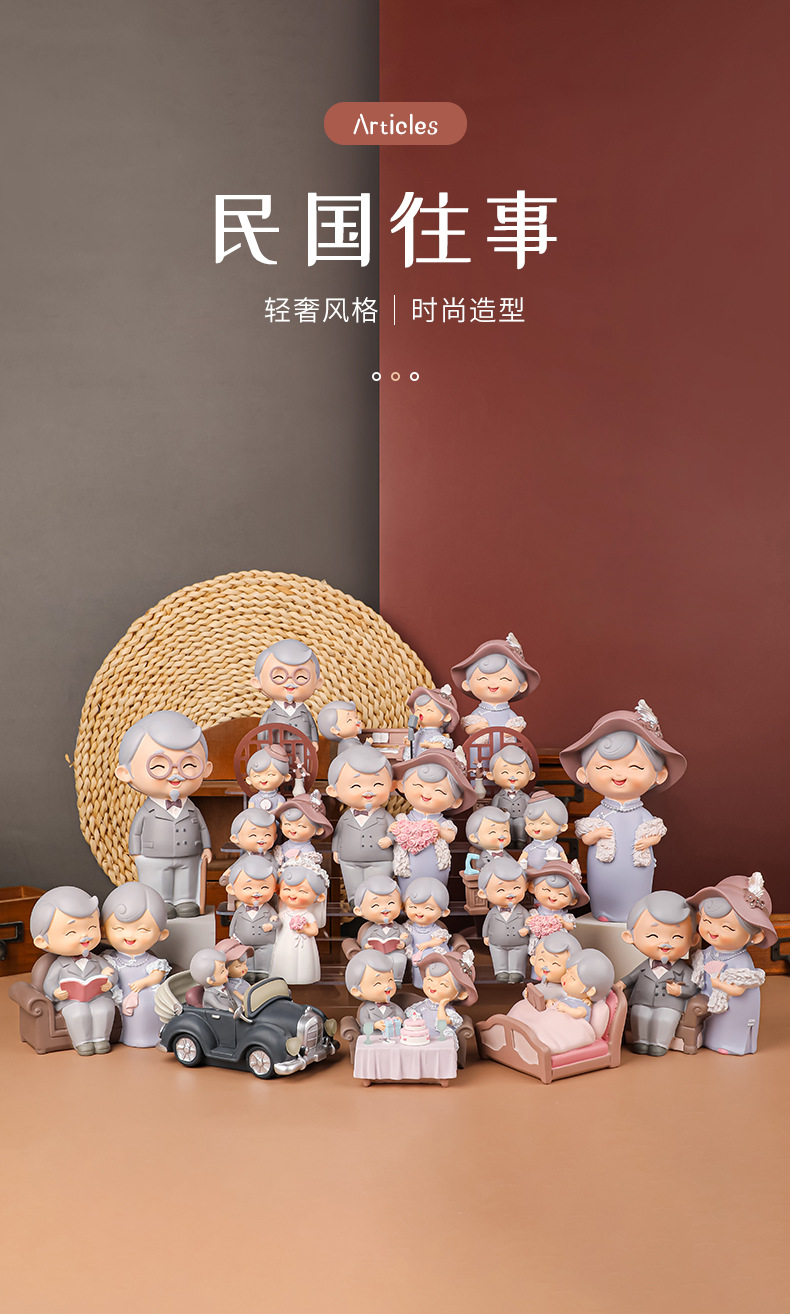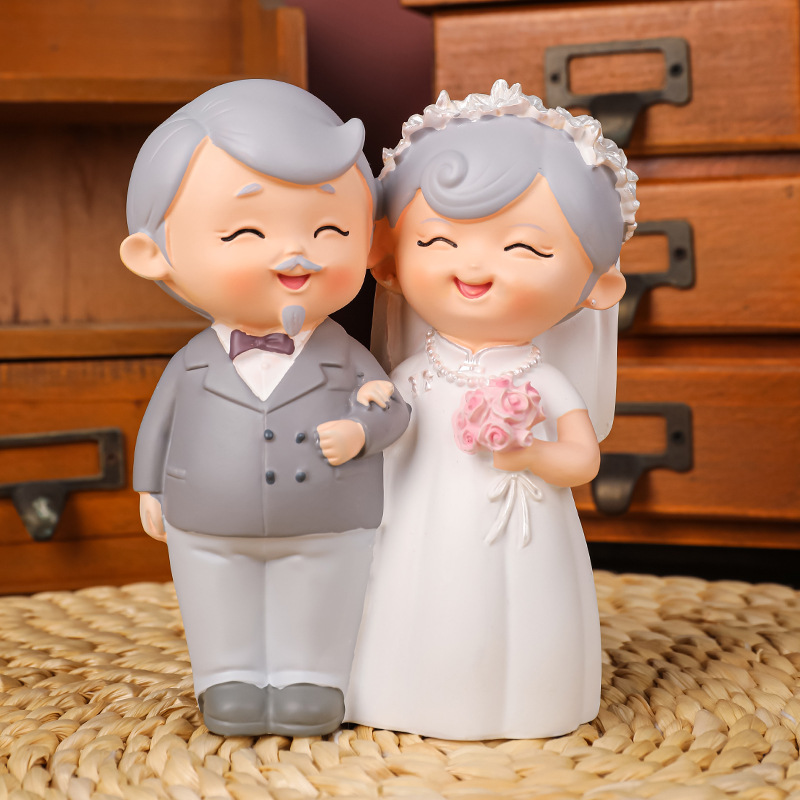 民国往事创意可爱老头老太烘焙蛋糕摆件桌面装饰品摆件送老人礼物