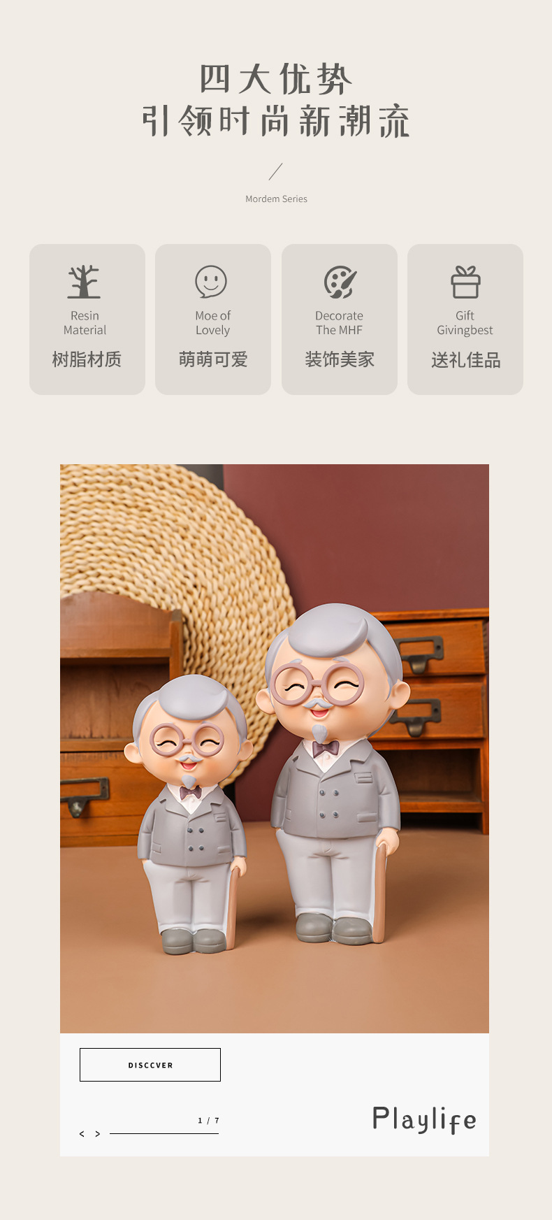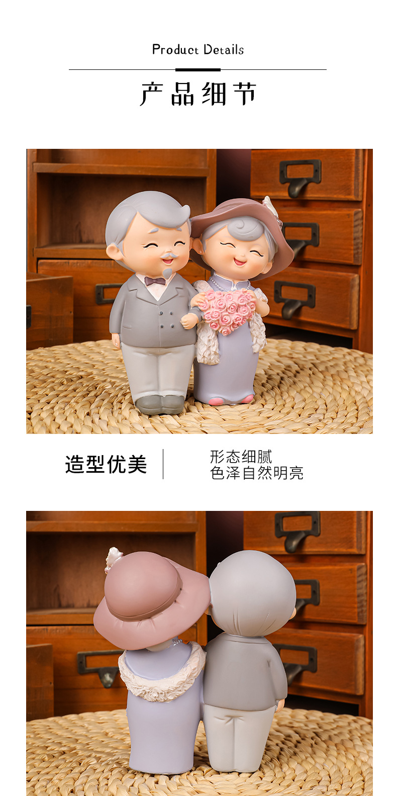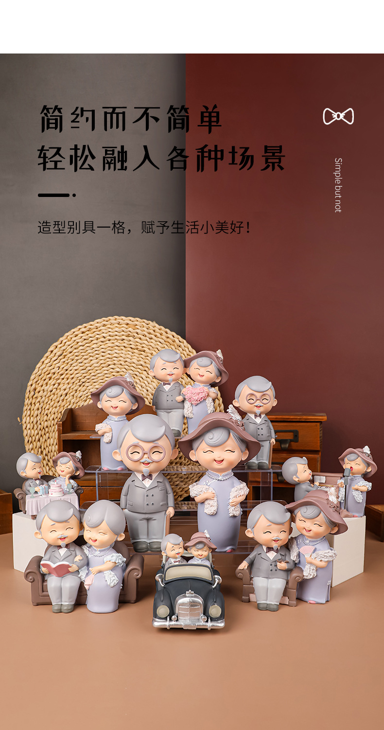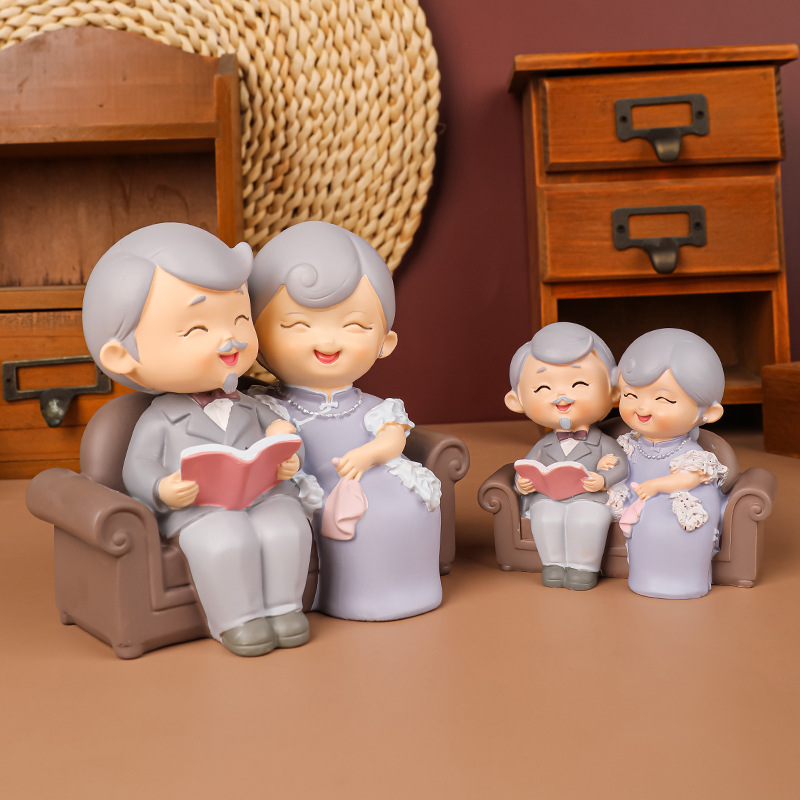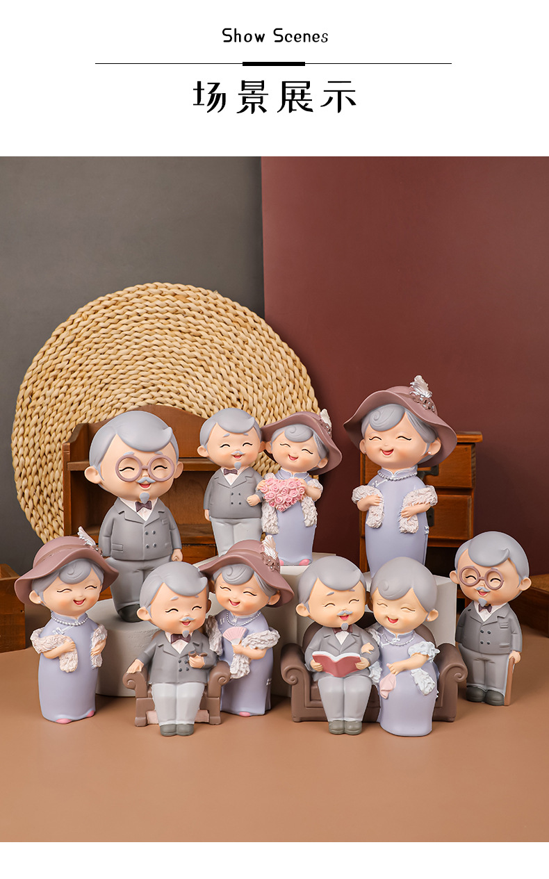 民国往事创意可爱老头老太烘焙蛋糕摆件桌面装饰品摆件送老人礼物