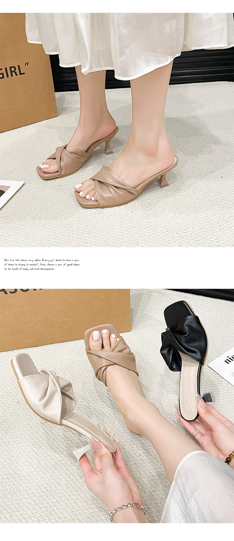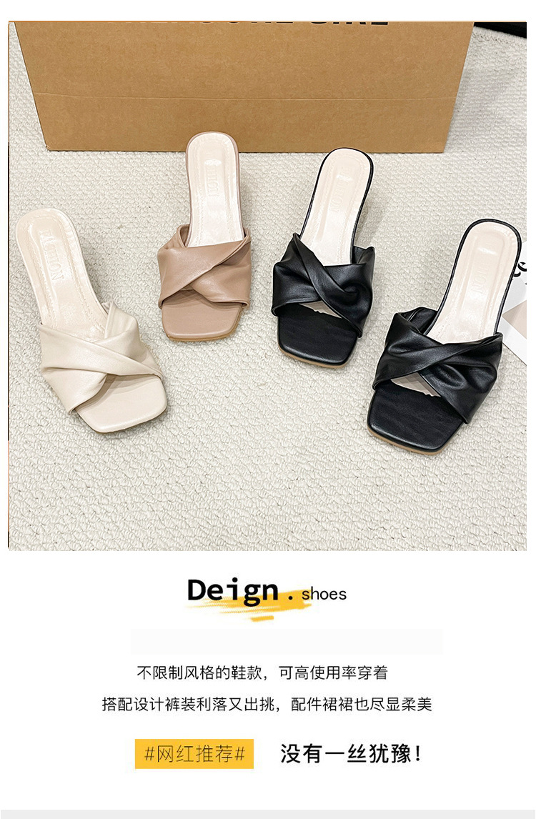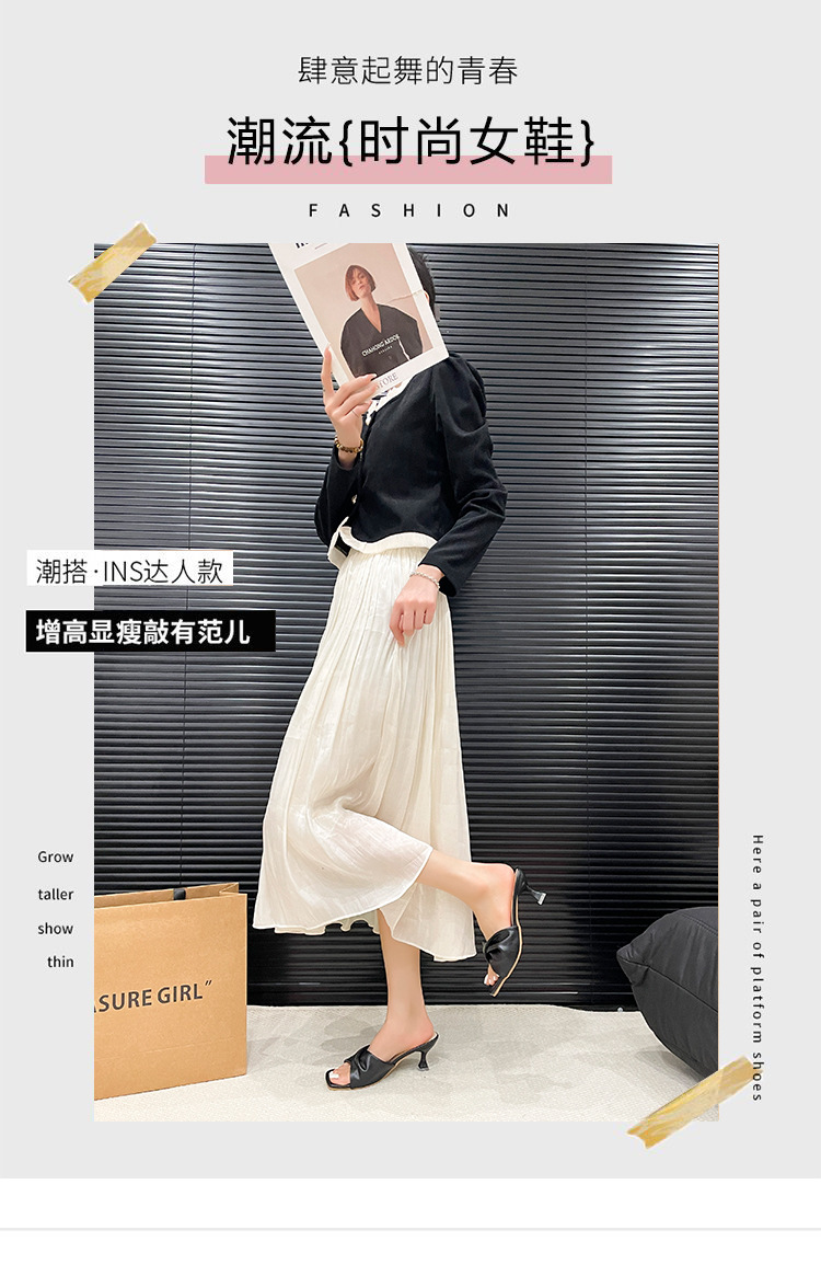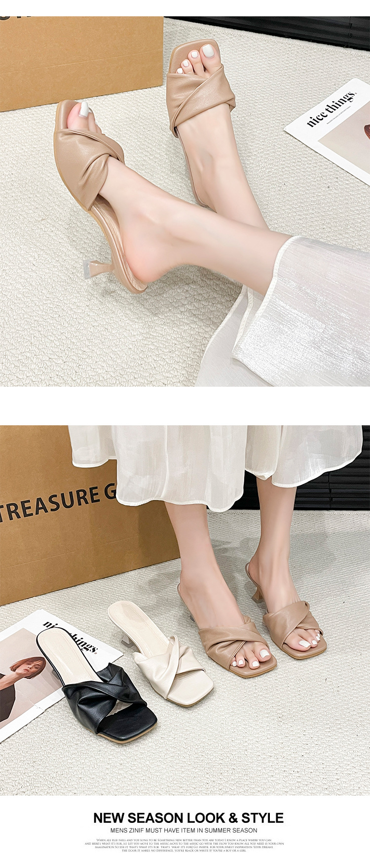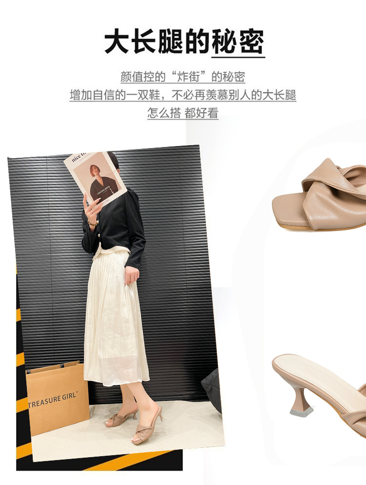 法式小众凉拖鞋女夏季外穿2025新款时尚百搭方头露趾一字高跟凉鞋