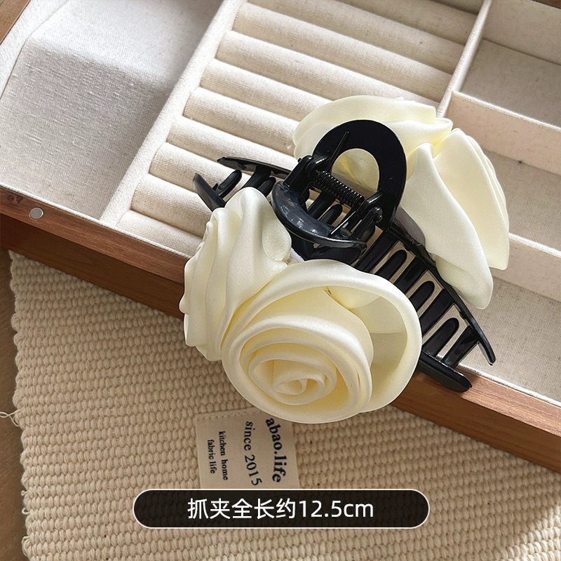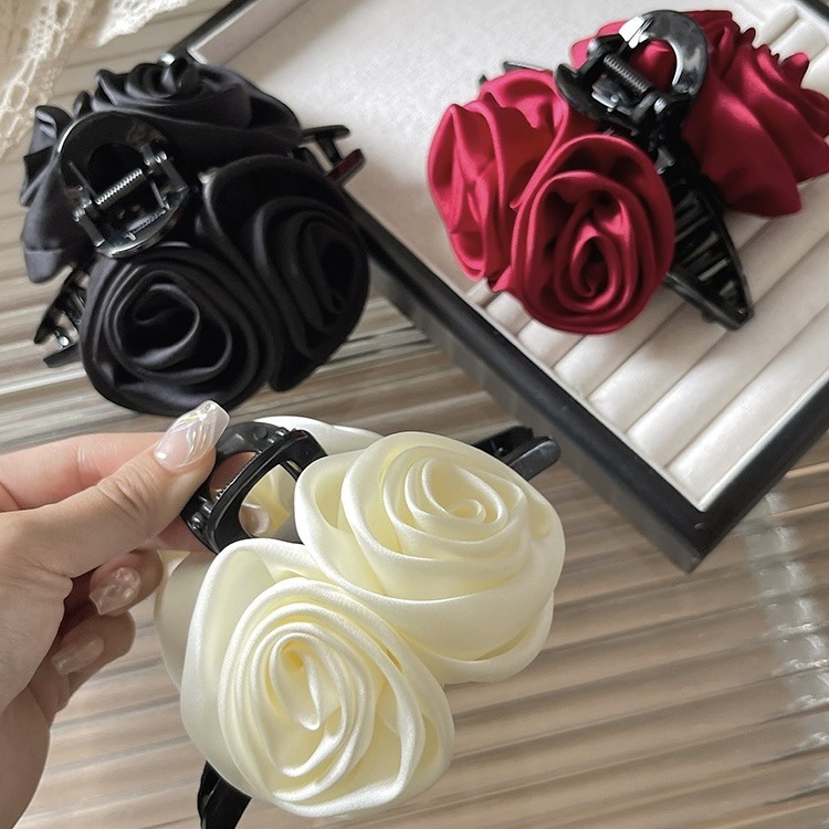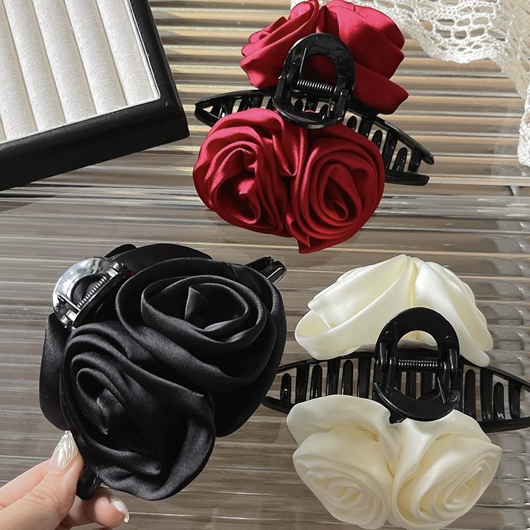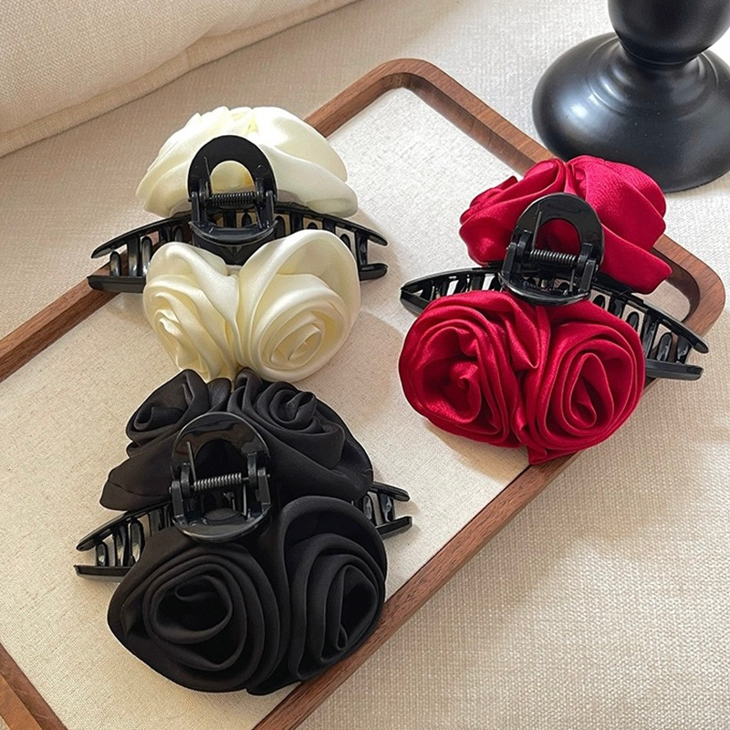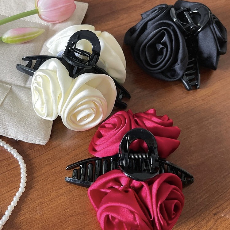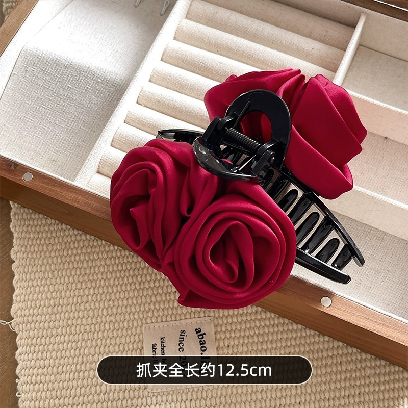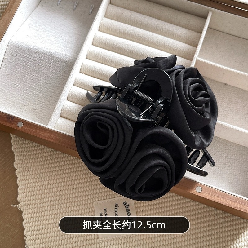 法式缎面玫瑰花发夹抓夹盘发鲨鱼夹头饰