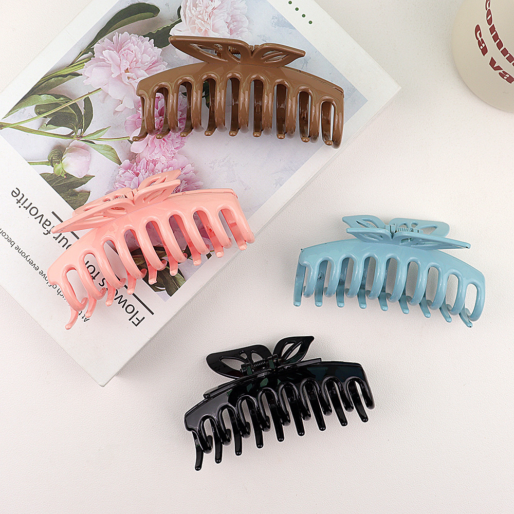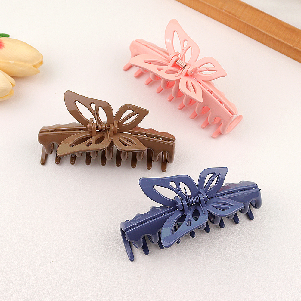 跨境新款彩色蝴蝶大发夹亮面抓夹鲨鱼夹龙骨盘发