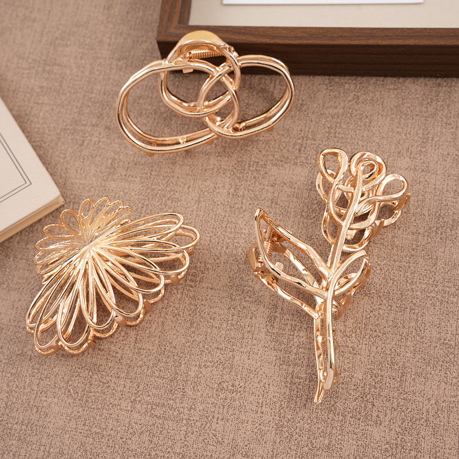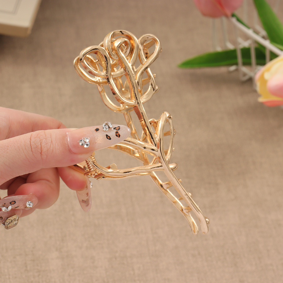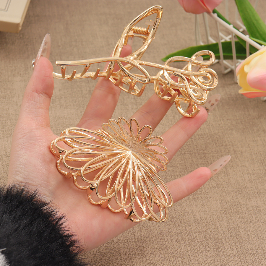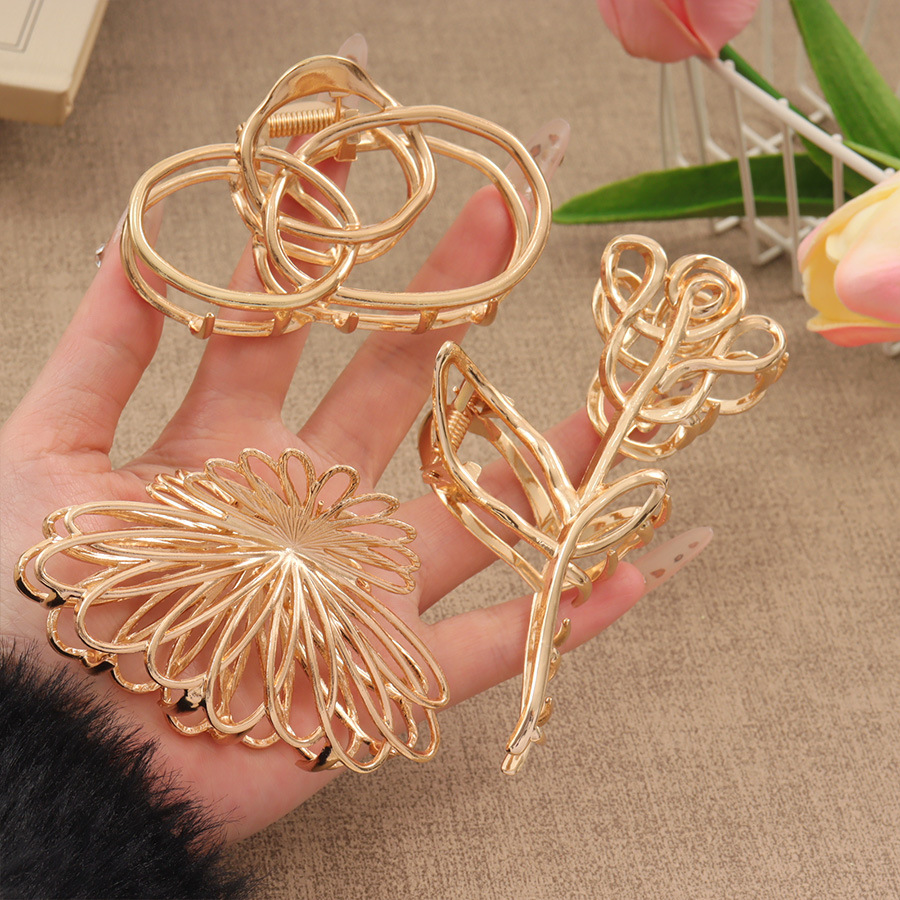 2025新韩版花朵抓夹复古锌合金发夹郁金香发抓扇贝鲨鱼夹