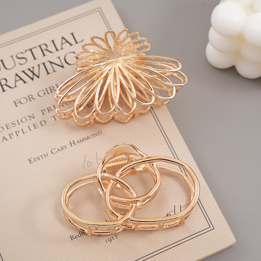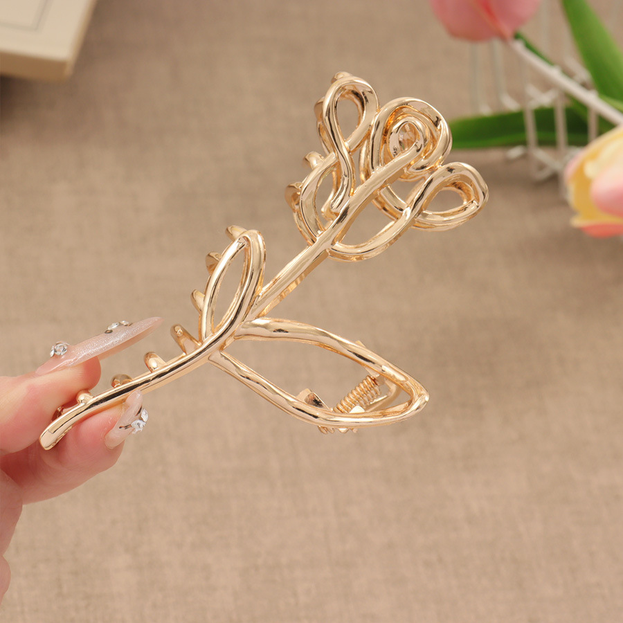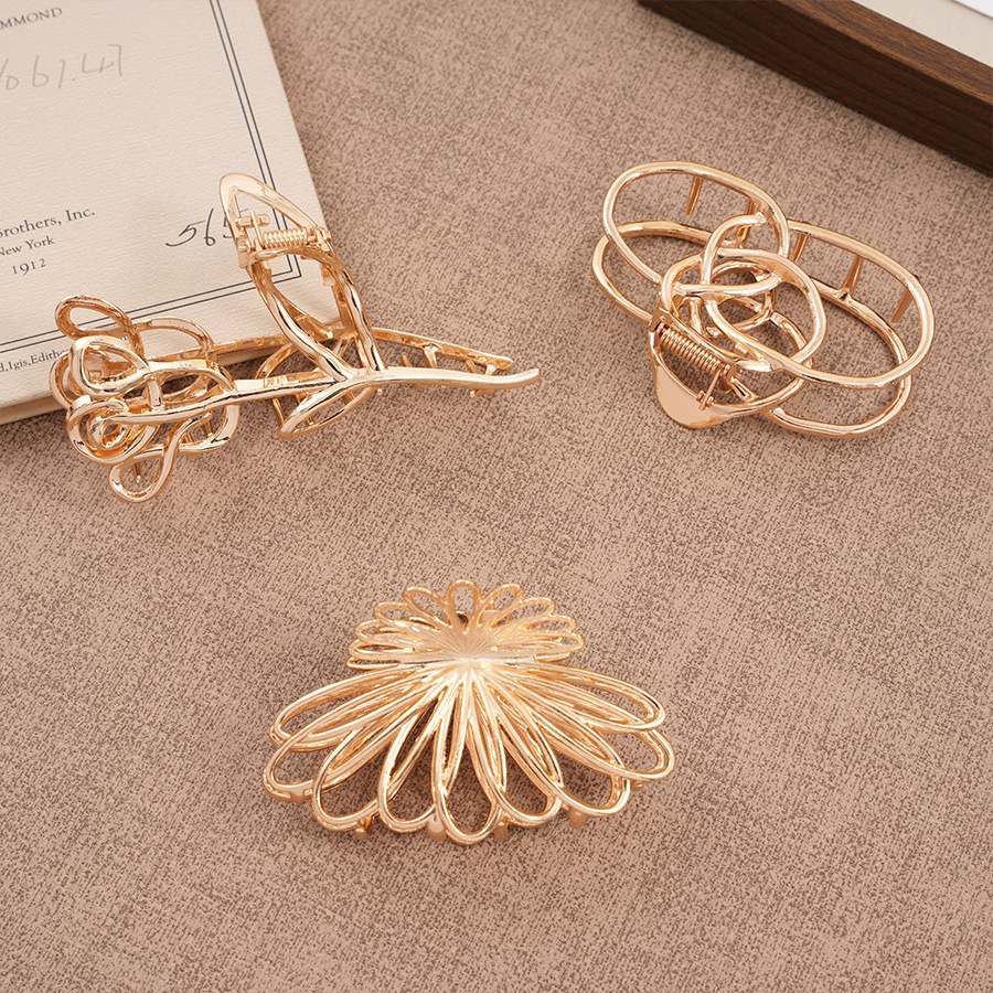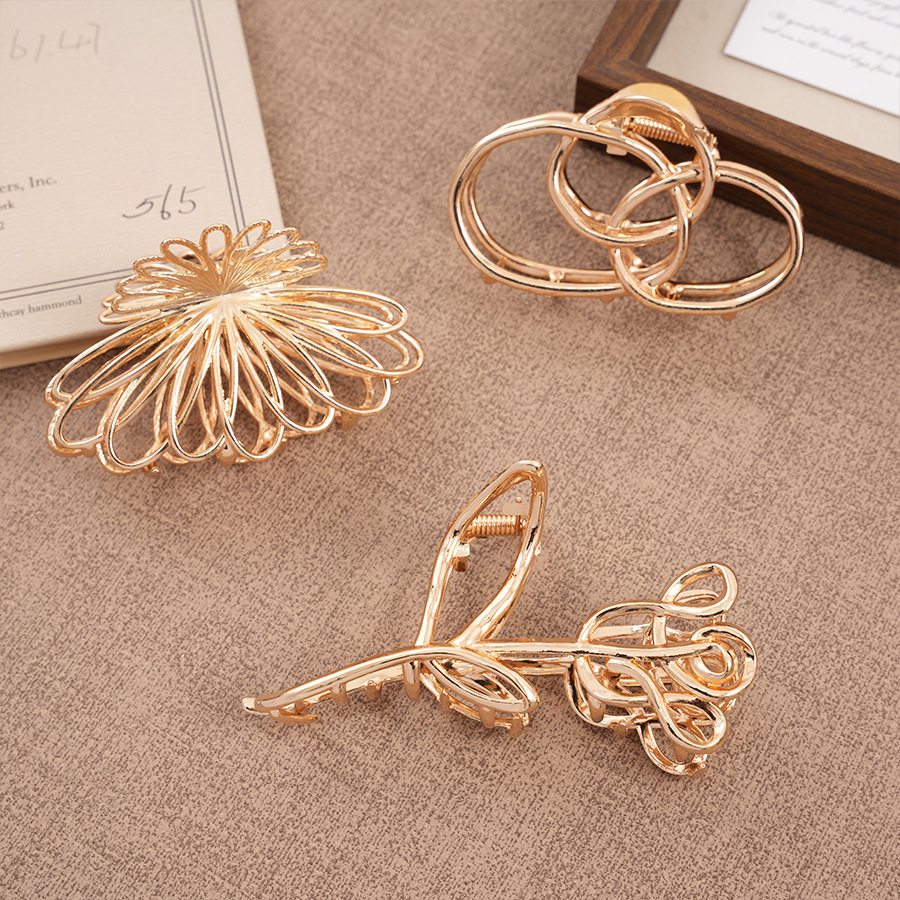 2025新韩版花朵抓夹复古锌合金发夹郁金香发抓扇贝鲨鱼夹