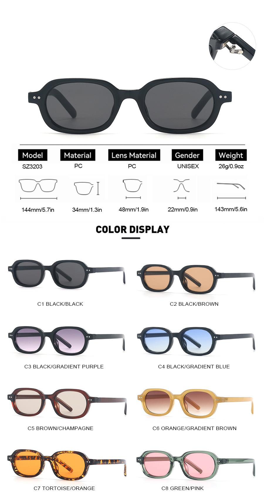 2025欧美太阳镜新款男女复古时尚防紫外线墨镜高级感椭圆形小框